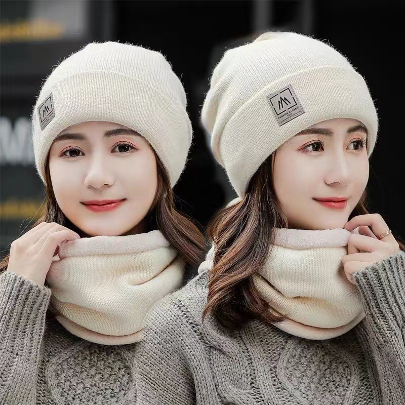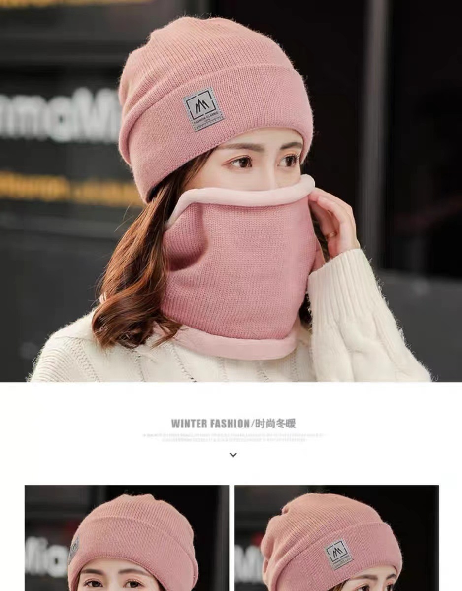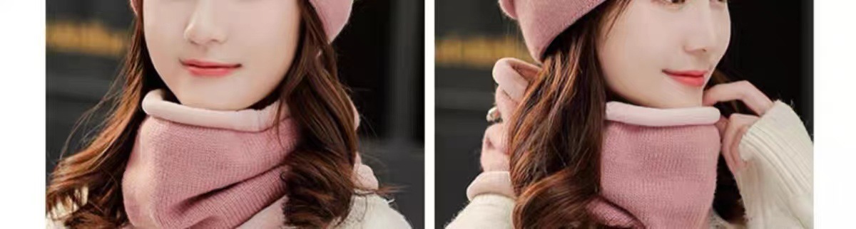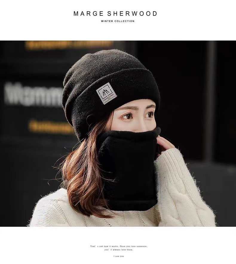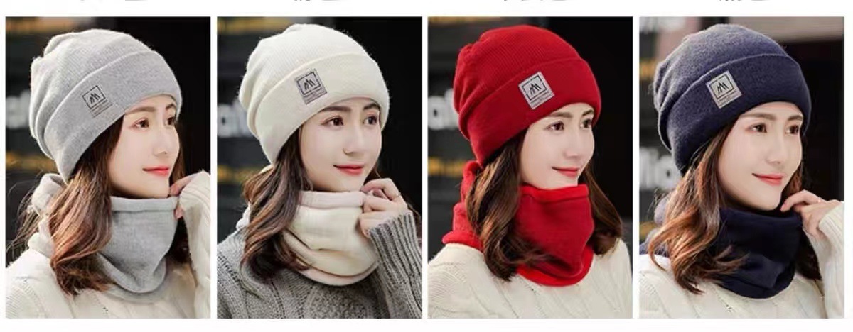 「帽子围脖两件套!数色可选」秋冬季毛线帽加绒保暖套装帽韩版防风护耳帽新款一体针织帽女配饰