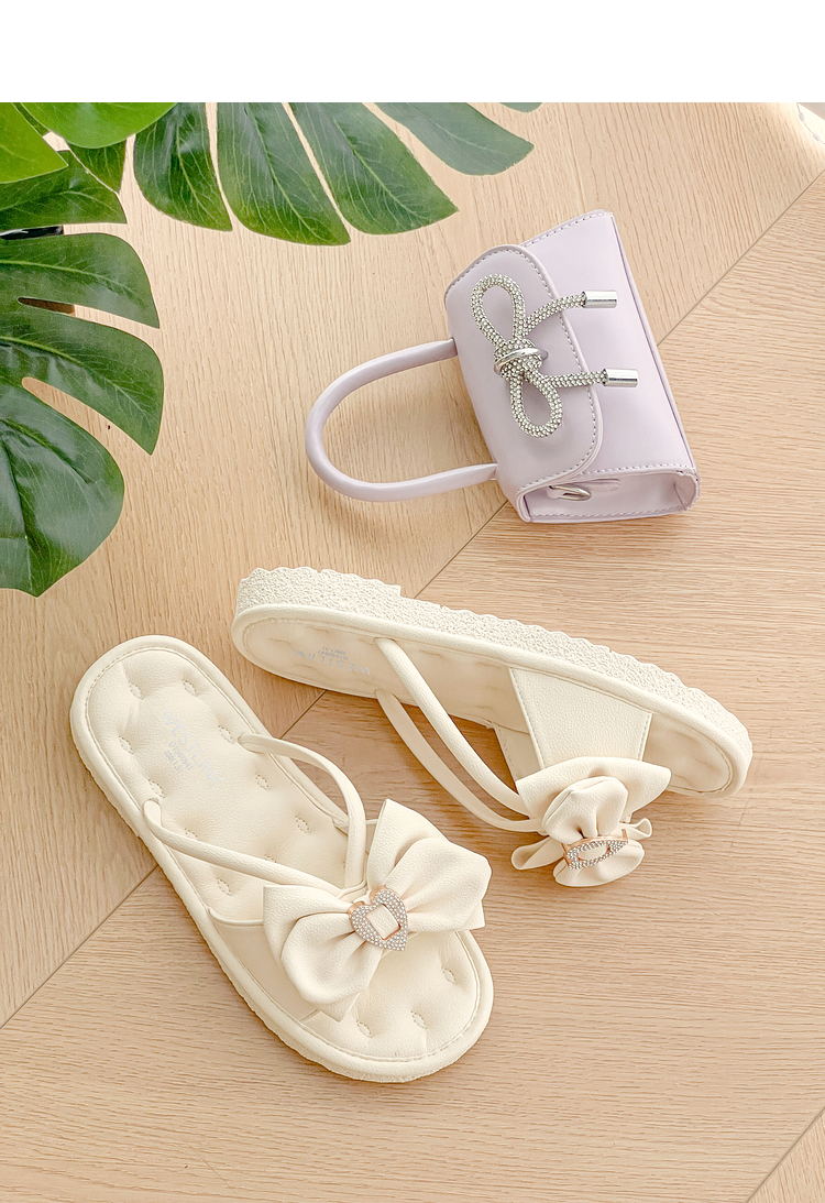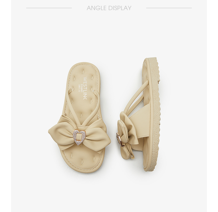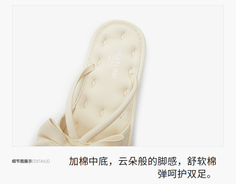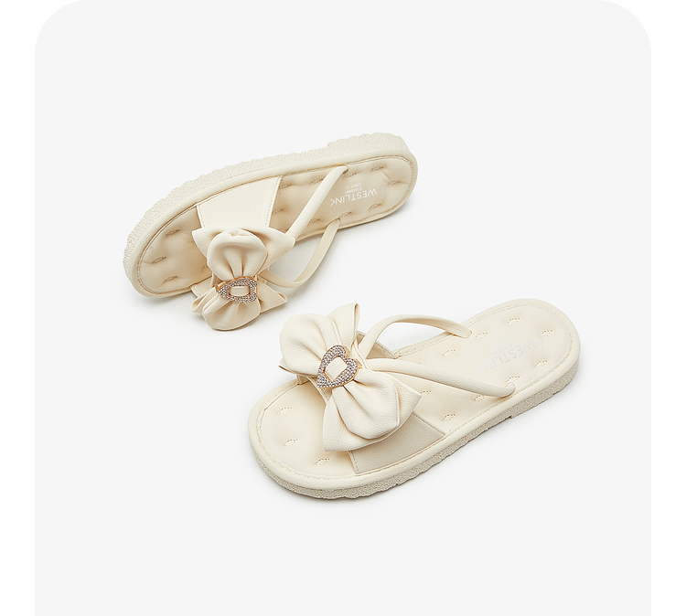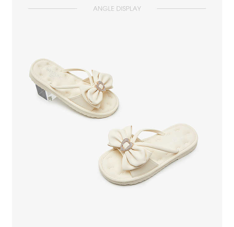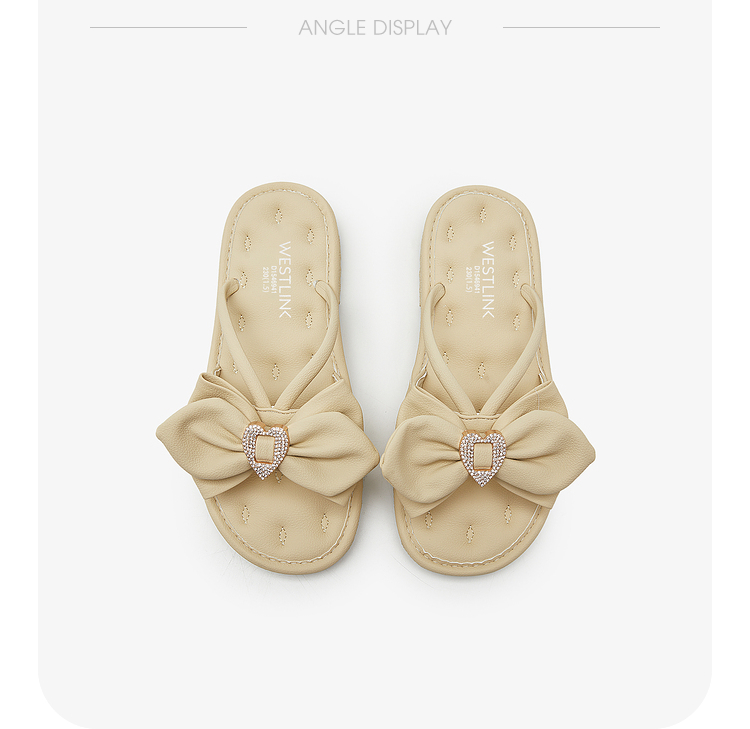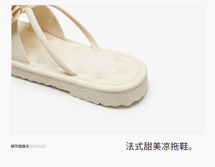 西遇法式小凉拖鞋女新款夏季水钻蝴蝶结配裙子鞋平底外穿拖鞋D1546941