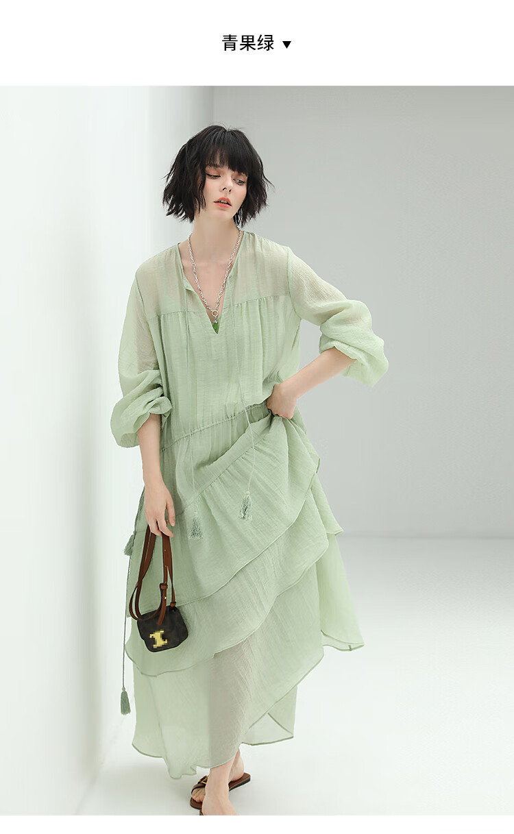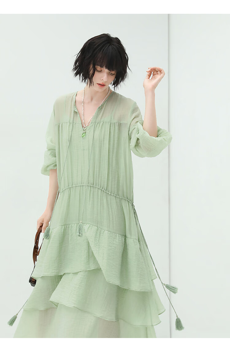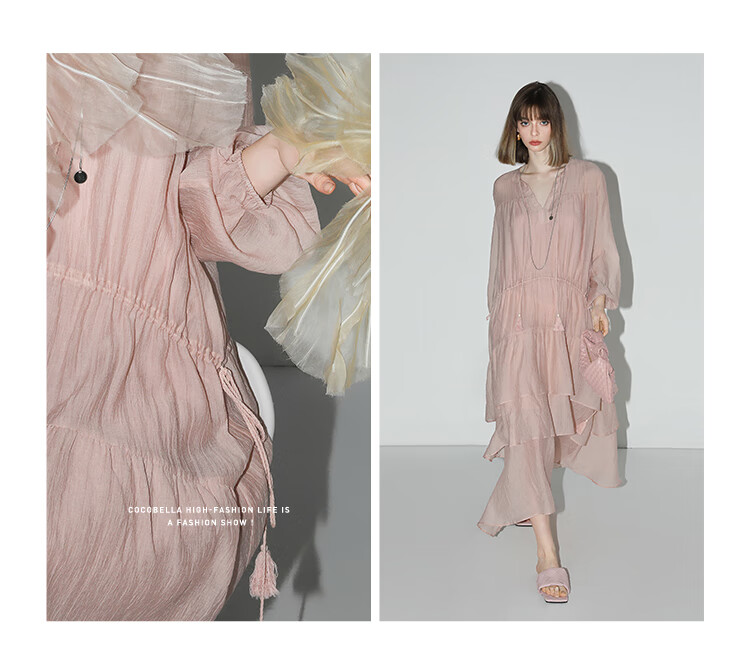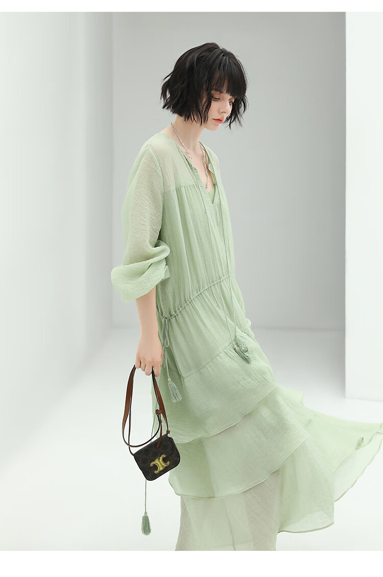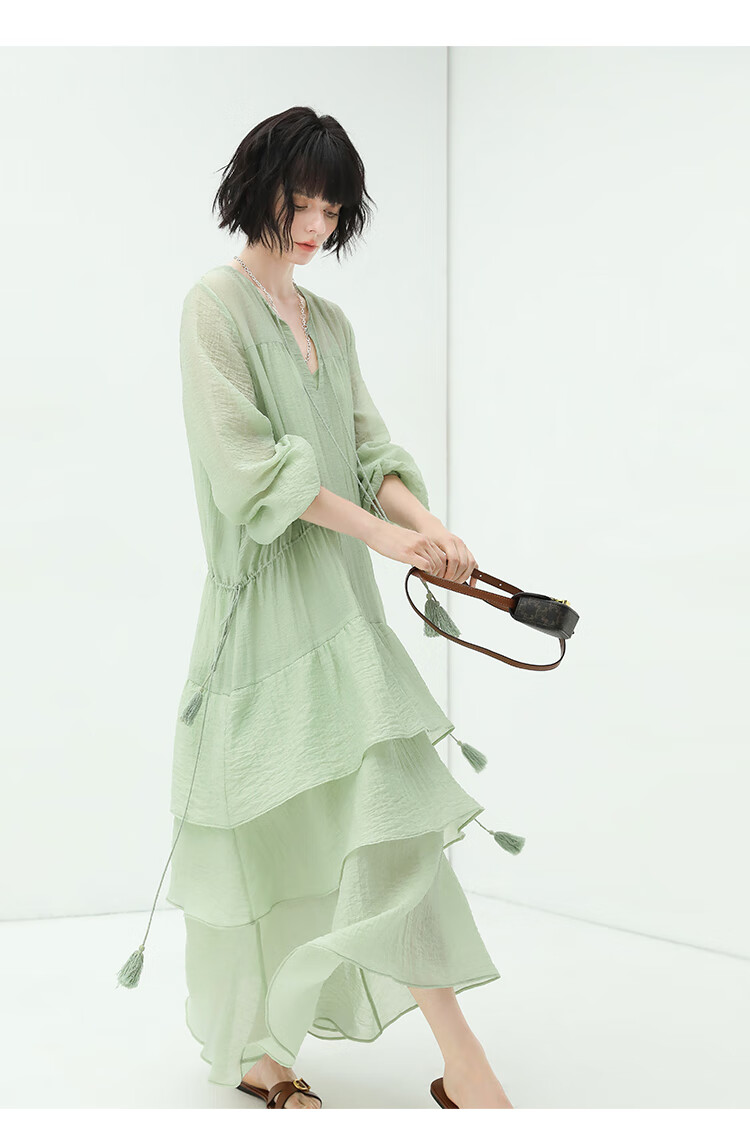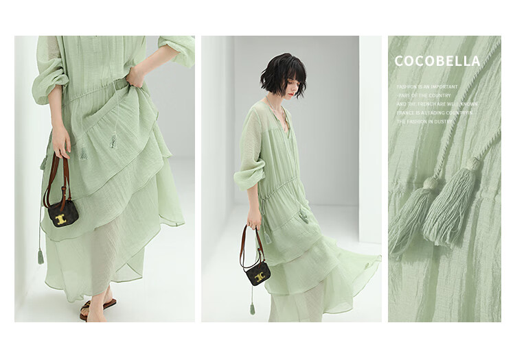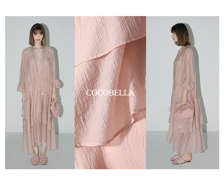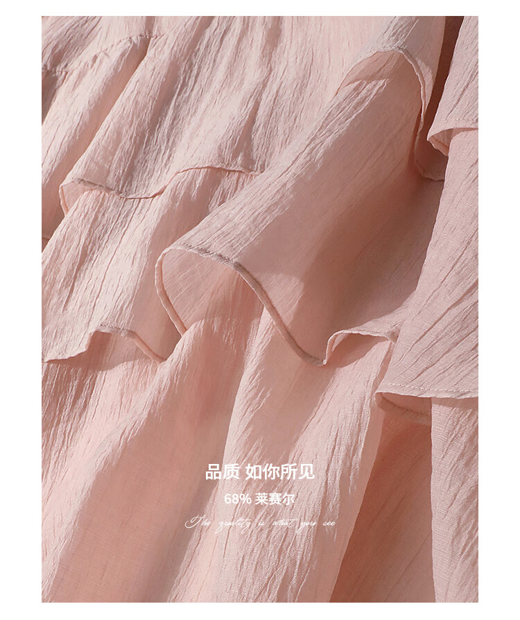 COCOBELLA流苏飘带层叠荷叶大摆莱赛尔连衣裙配吊带裙FR7028