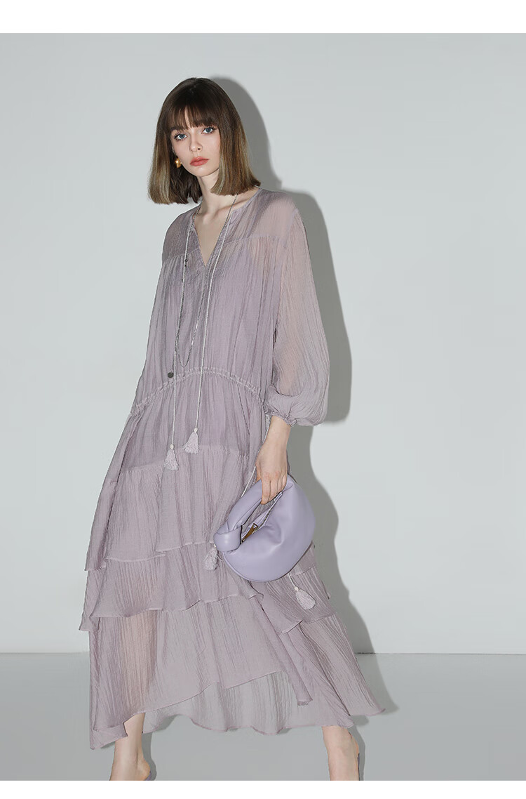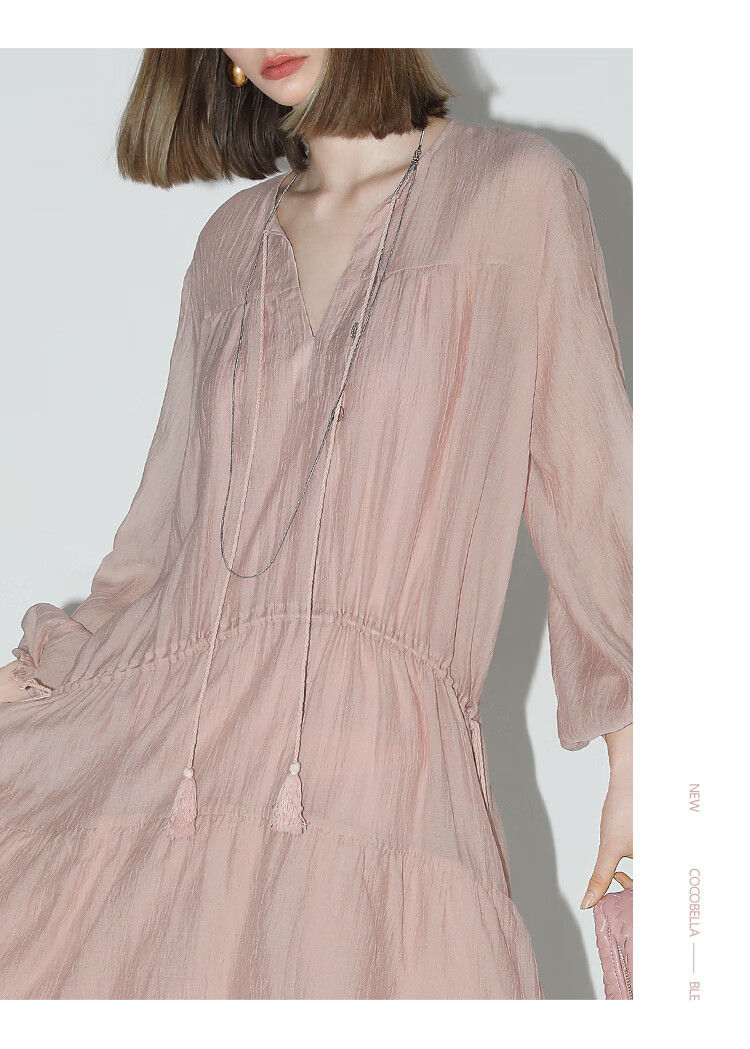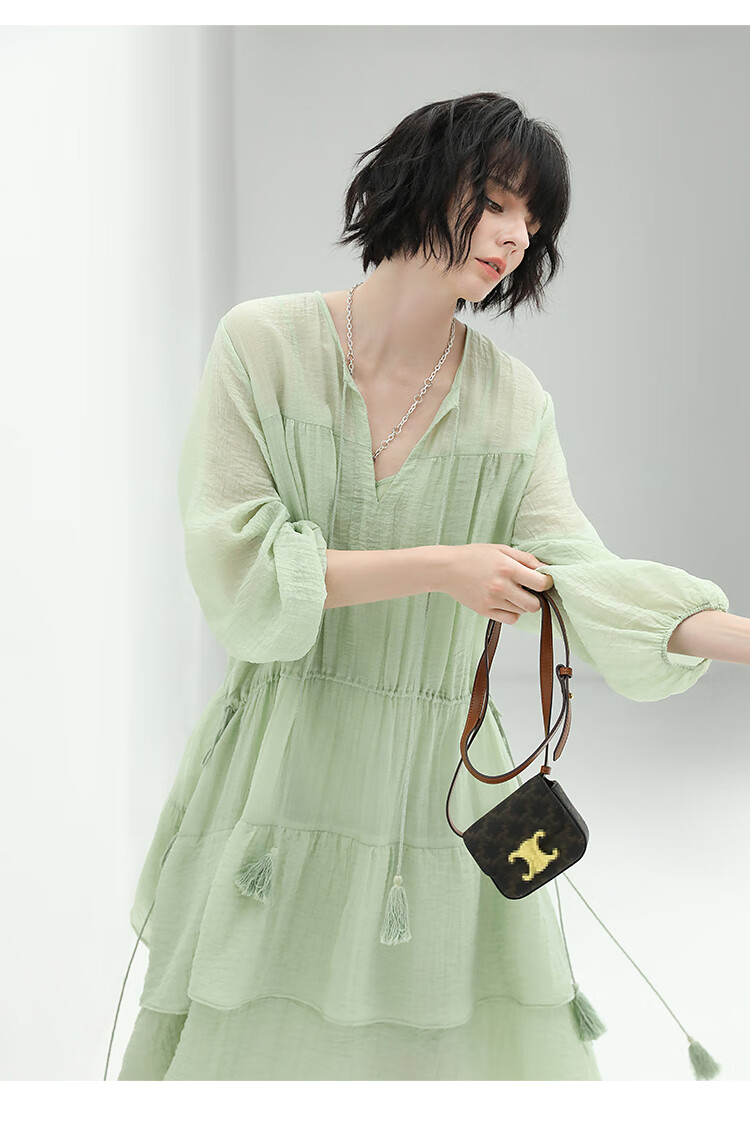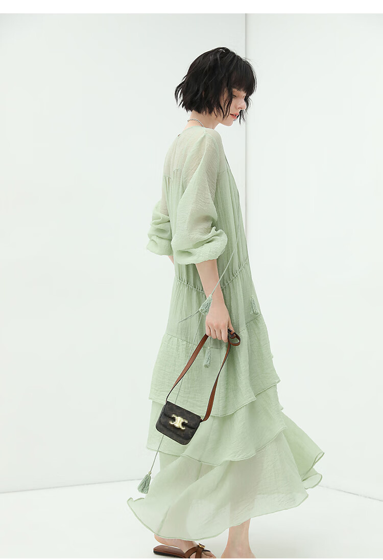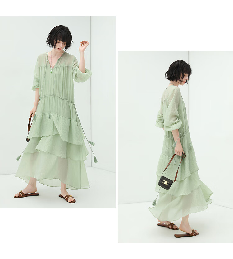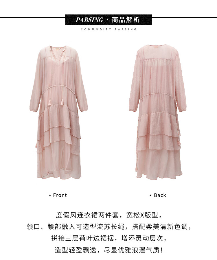 COCOBELLA流苏飘带层叠荷叶大摆莱赛尔连衣裙配吊带裙FR7028