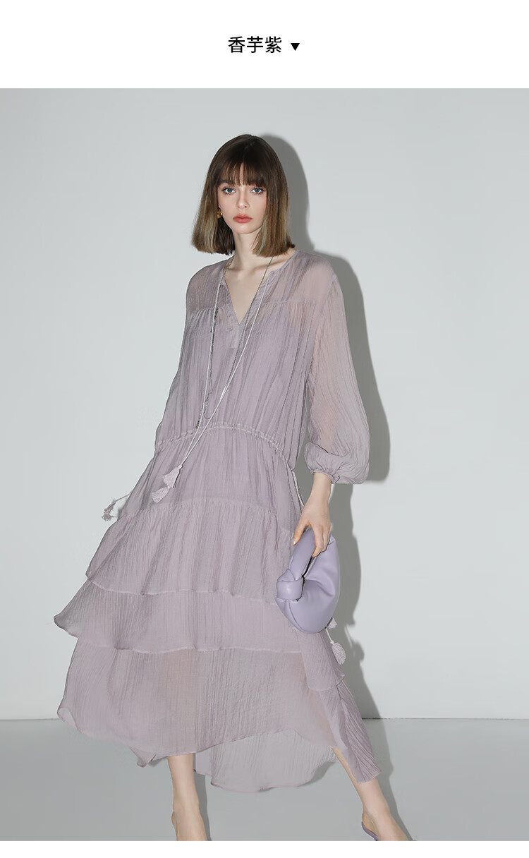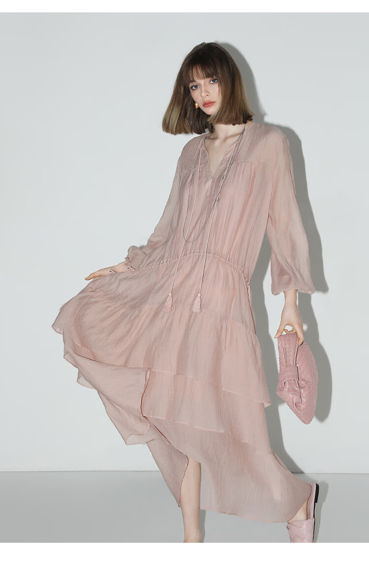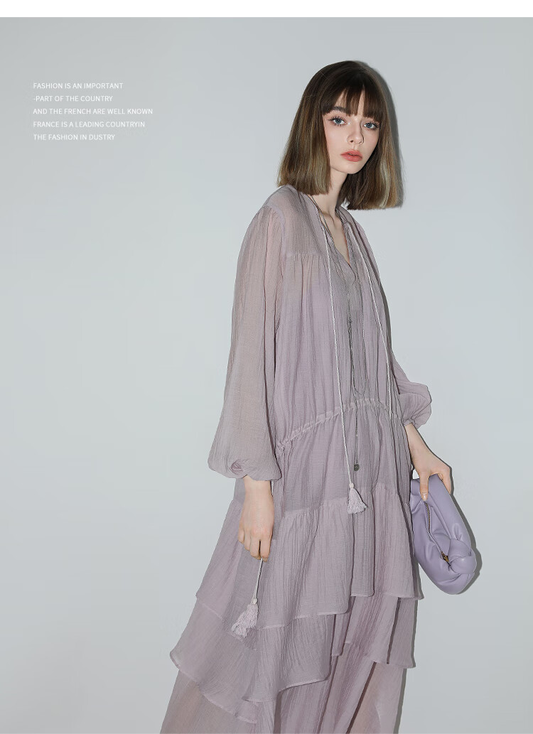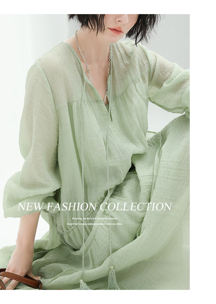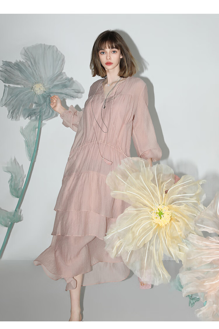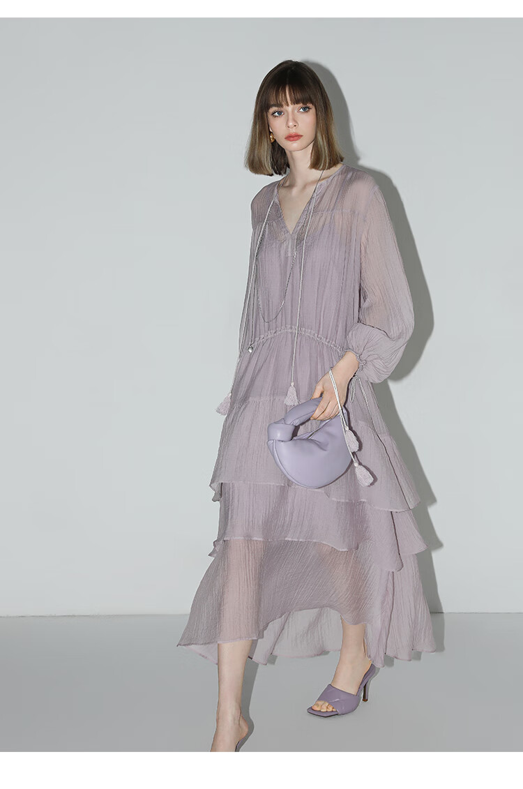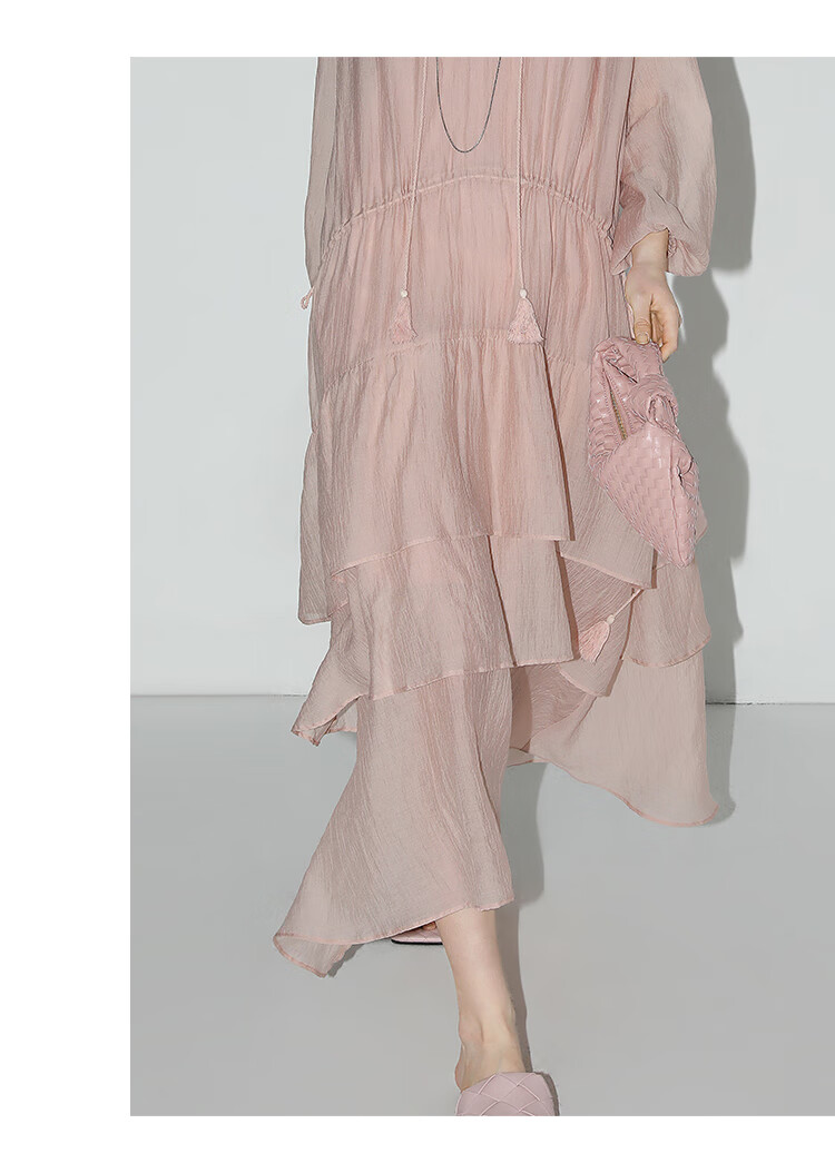 COCOBELLA流苏飘带层叠荷叶大摆莱赛尔连衣裙配吊带裙FR7028