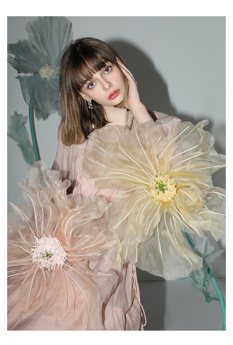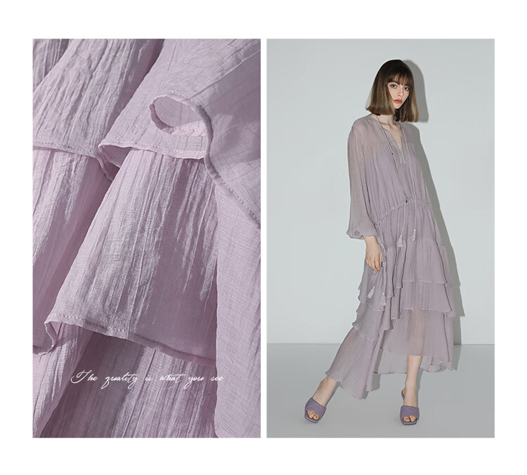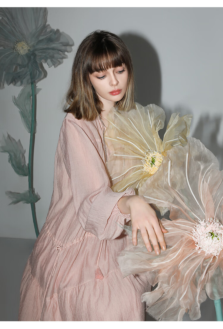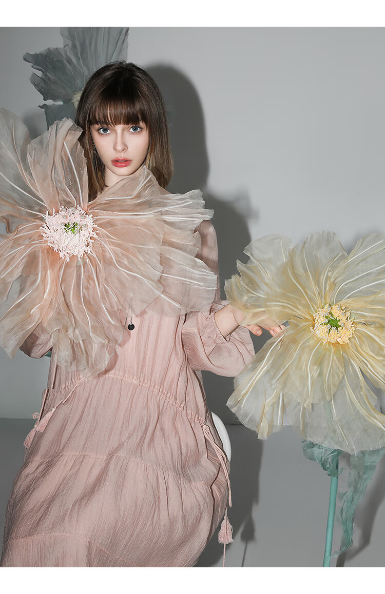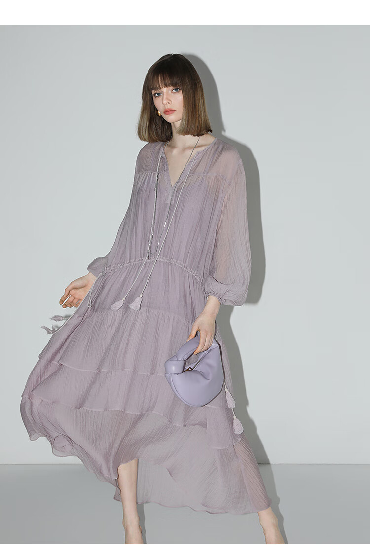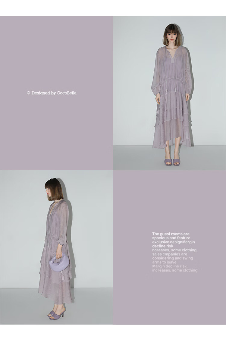 COCOBELLA流苏飘带层叠荷叶大摆莱赛尔连衣裙配吊带裙FR7028