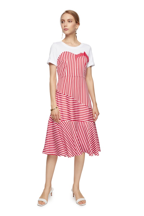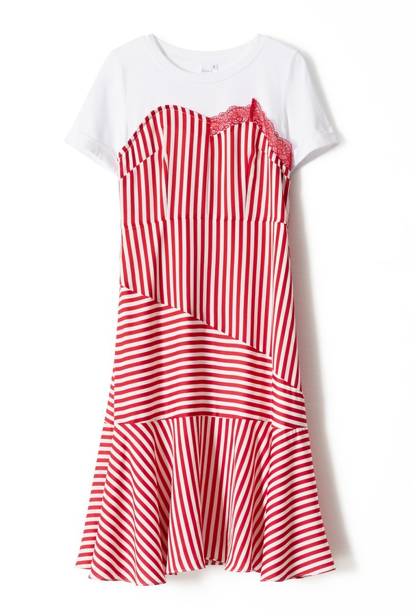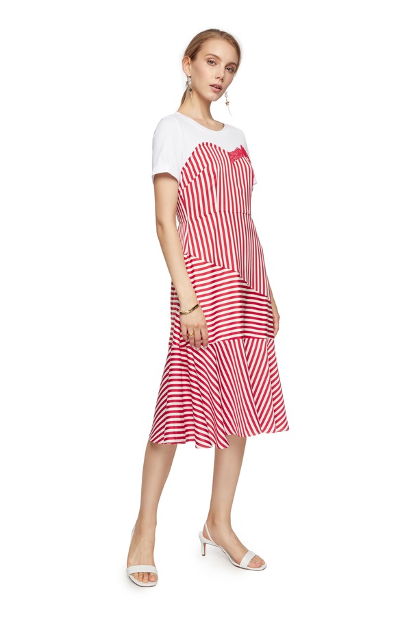 DOTACOKO 红白条纹拼接连衣裙 6768