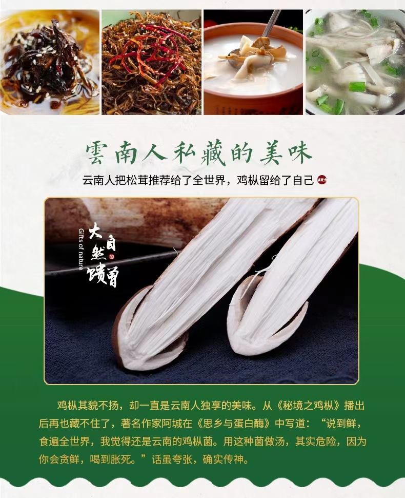产品特点:纯天然野生菌,味道鲜美,营养价值高,每年5-11月份上市