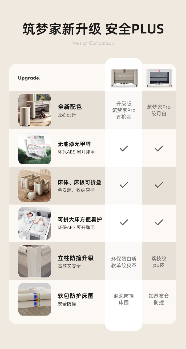 BeBeBus筑梦家 婴儿床拼接大床多功能可移动无油漆可折叠