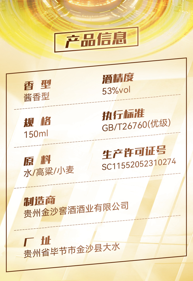 【金沙回沙 小酱】53度金沙小酱酒150ml1*24 光瓶酒 白酒 酱香型 金沙酱酒