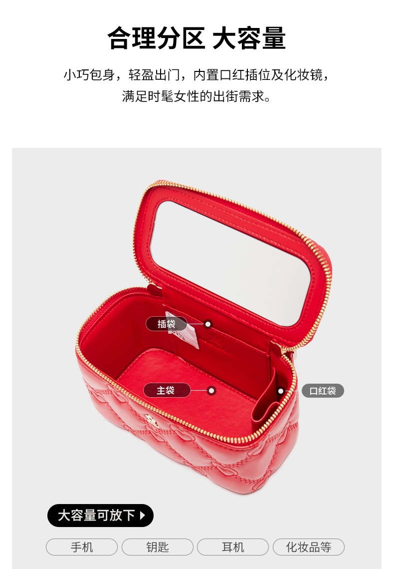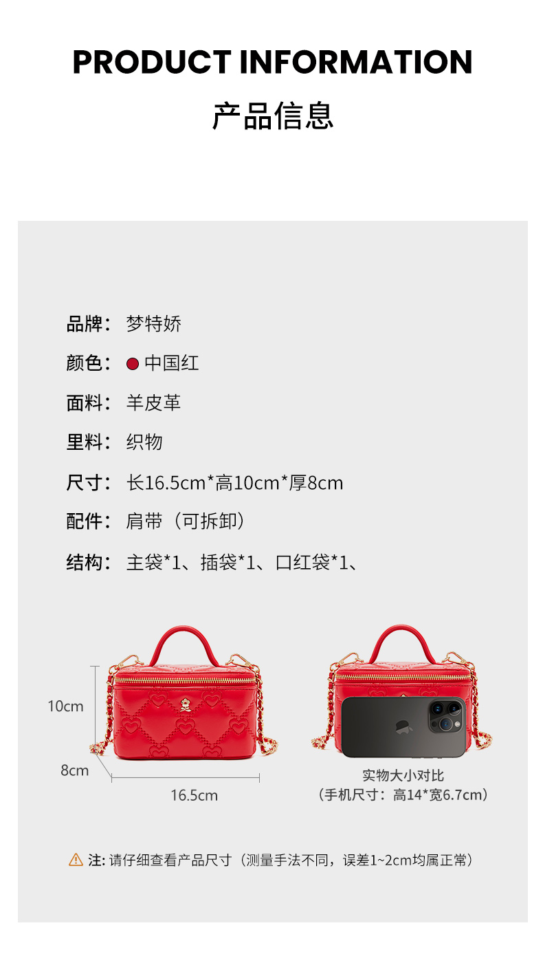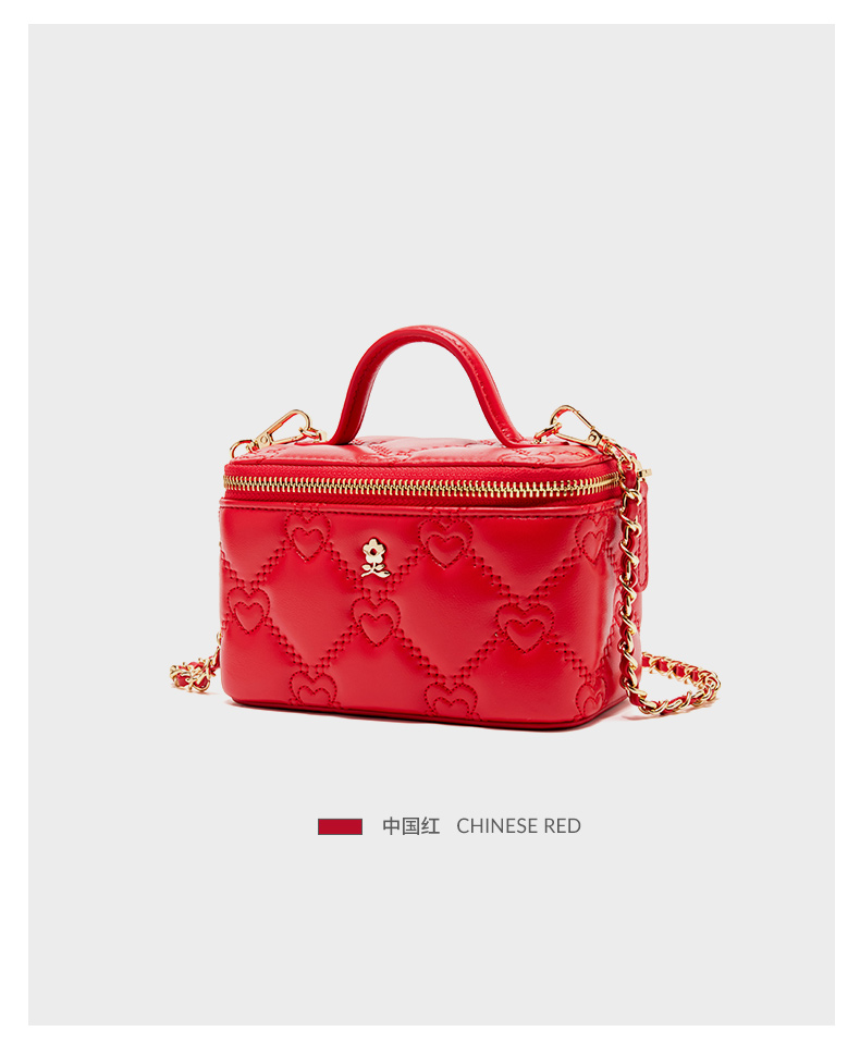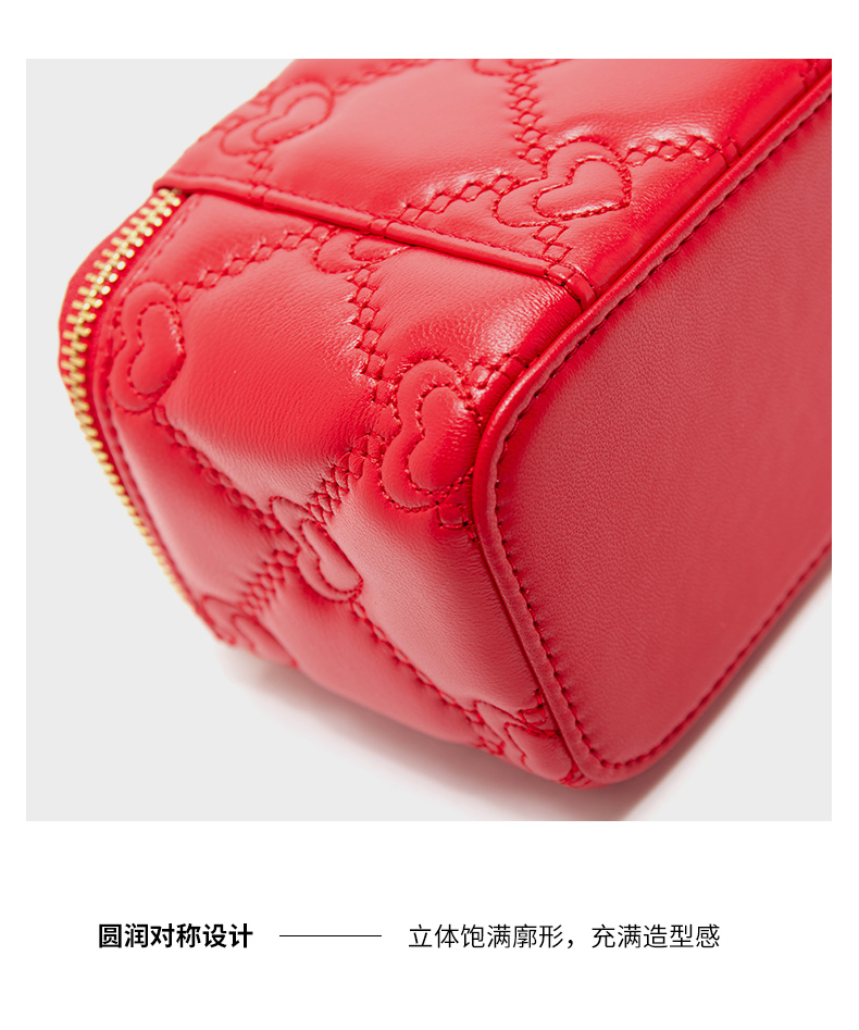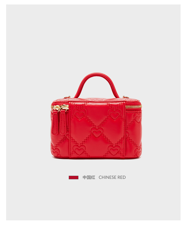 【蛇年中国红礼品系列】梦特娇新款心心相印盒子化妆包小挎包