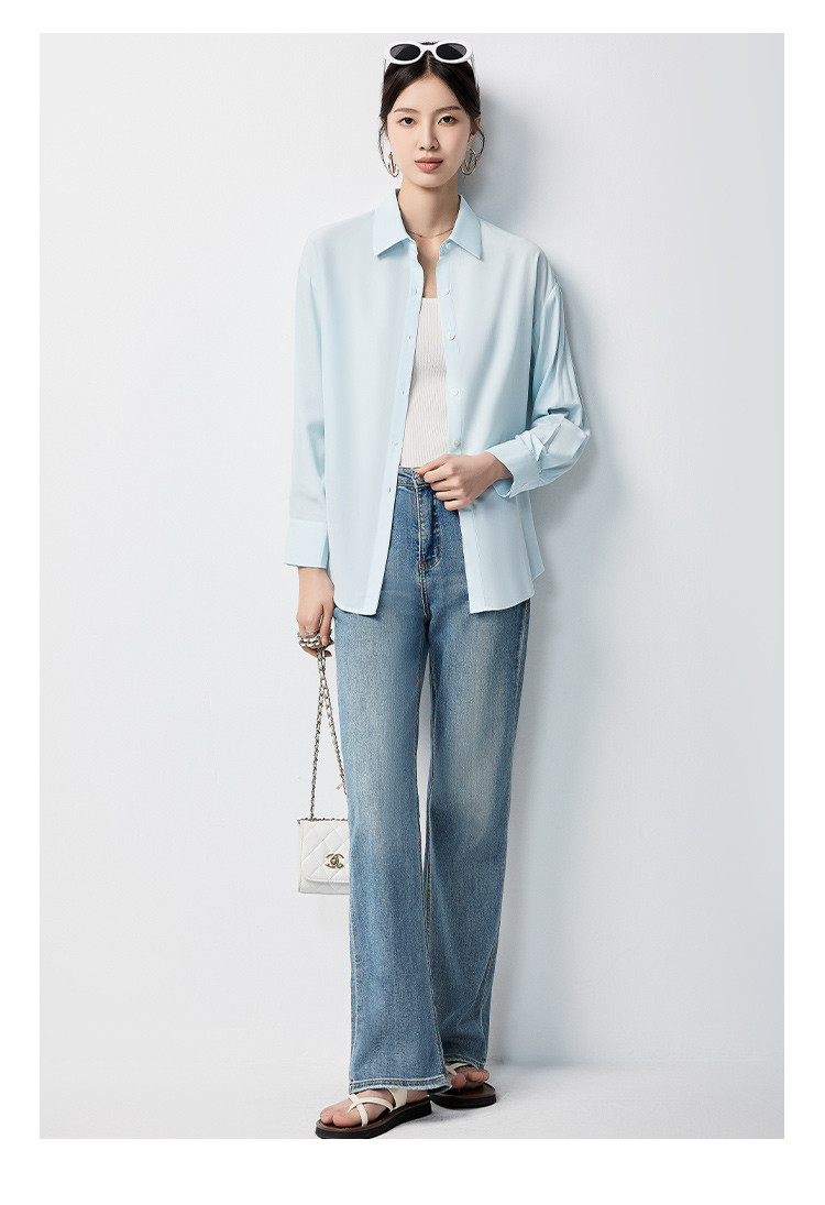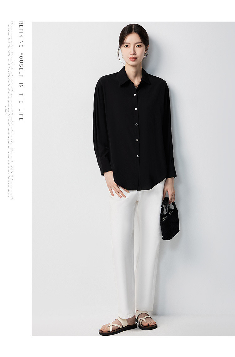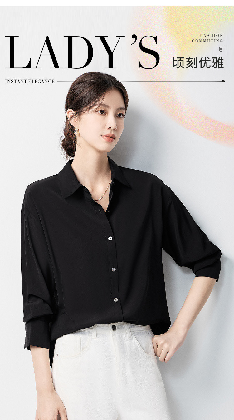 罗蒙女士长袖衬衫简约休闲百搭时尚气质优雅通勤长袖衬衣女