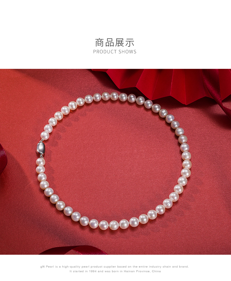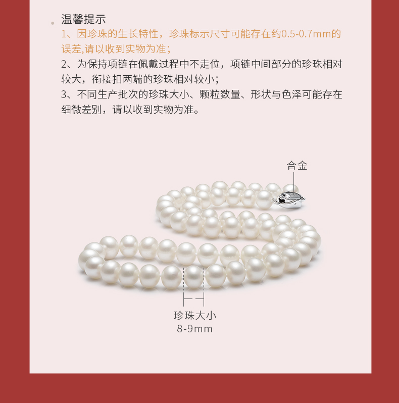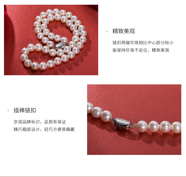 京润珍珠 依情 淡水珍珠全珠项链 7.3-8.3mm 馒头形白色(送丝巾)K