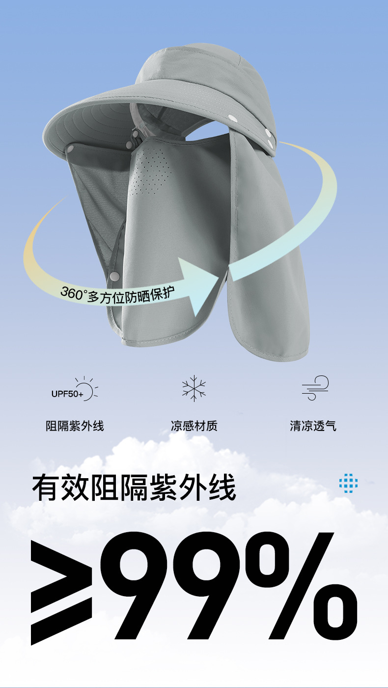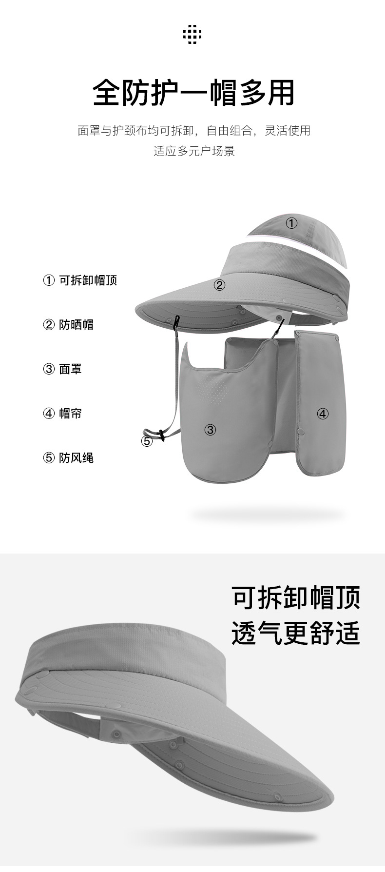夏季遮阳帽男女士户外钓鱼透气渔夫帽护颈可拆卸大帽檐空顶防晒帽