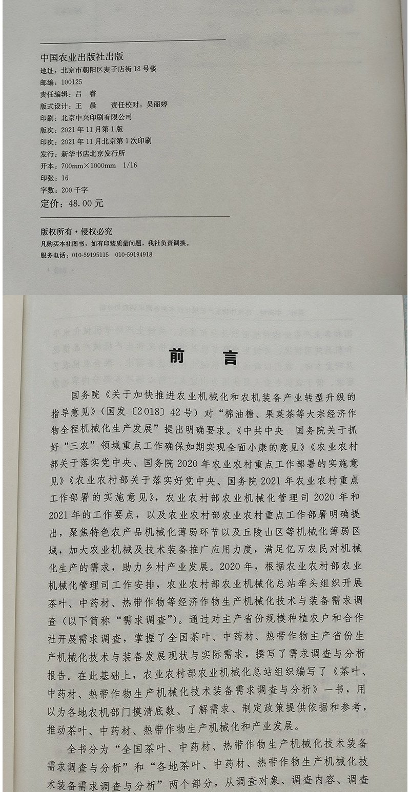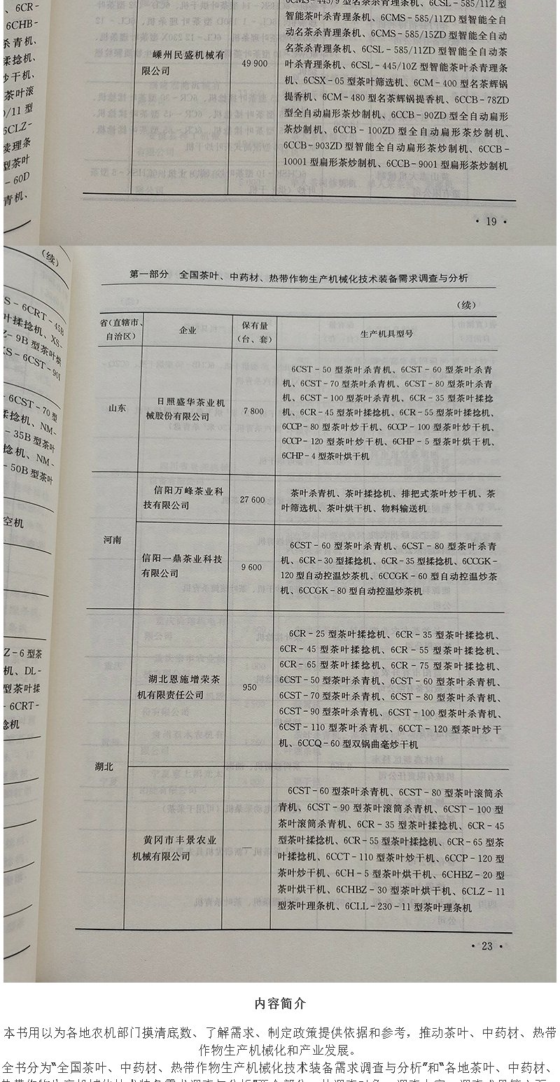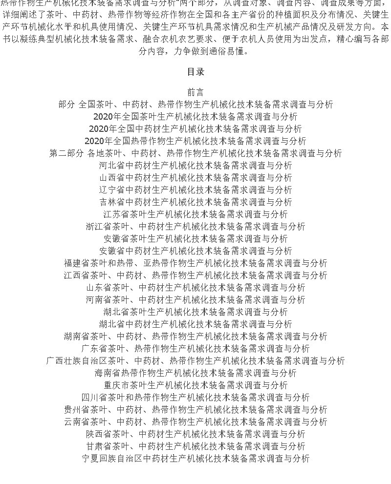 茶叶、中药材、热带作物生产机械化技术装备需求调查与分析【官方正版,可开发票,下单时留开票信息和电子邮箱】