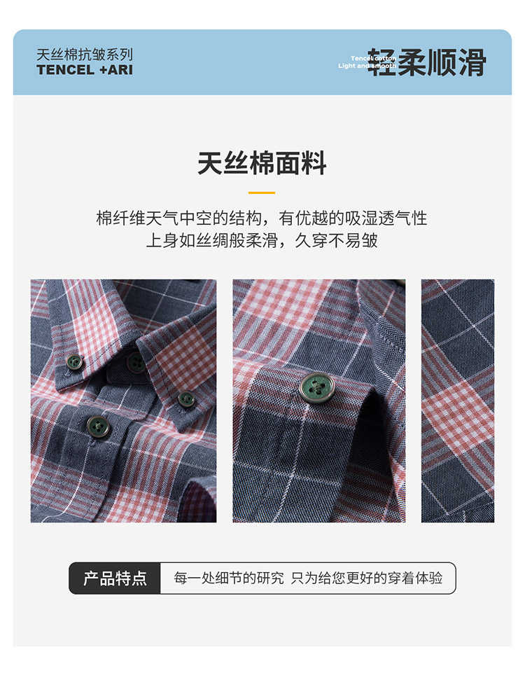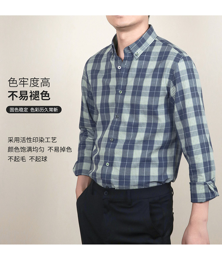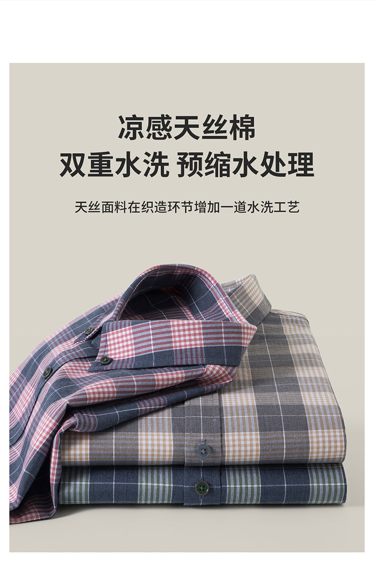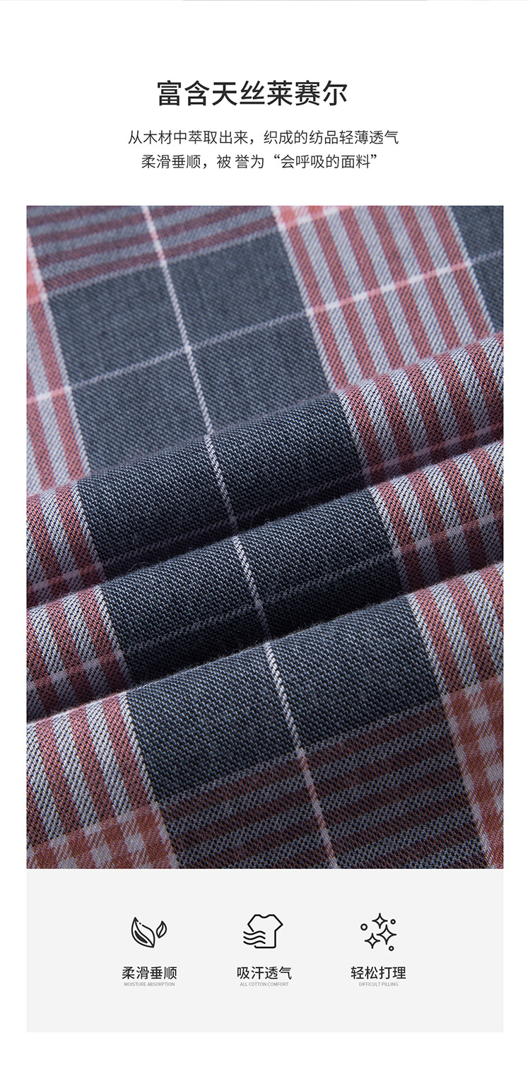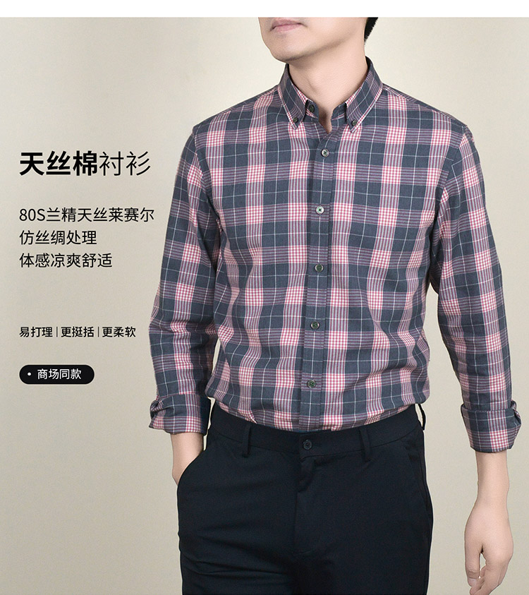 【莱赛尔棉】罗蒙春秋男士格子衬衫休闲通勤上班百搭长袖男舒适简约大方翻领男衬衣
