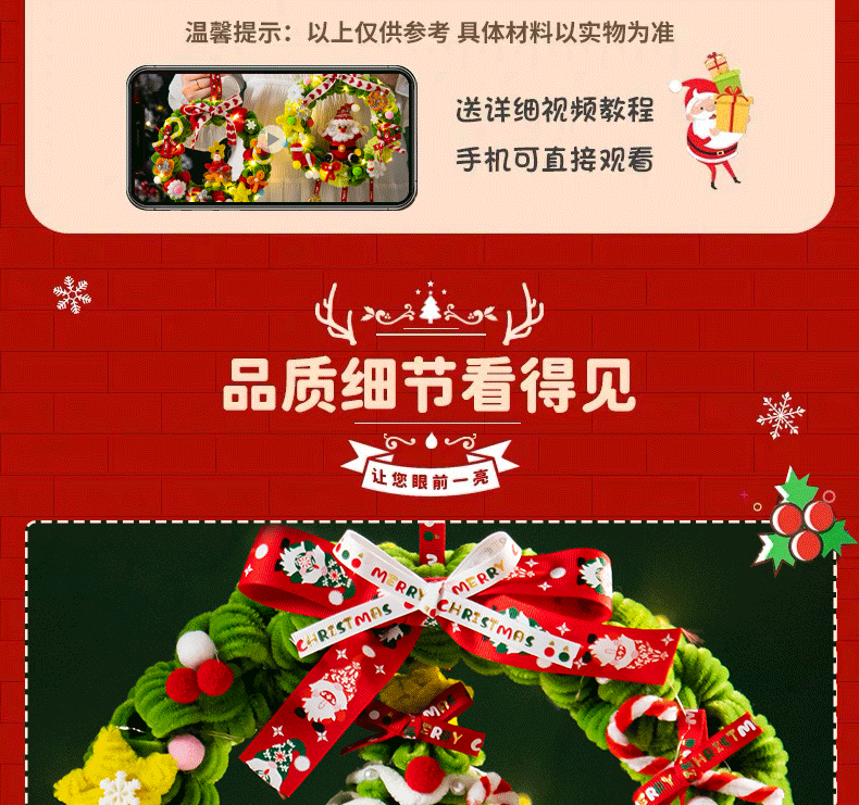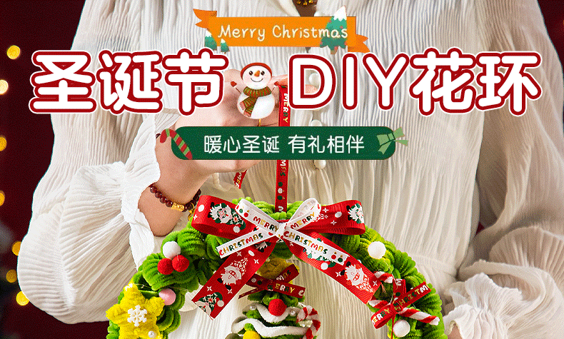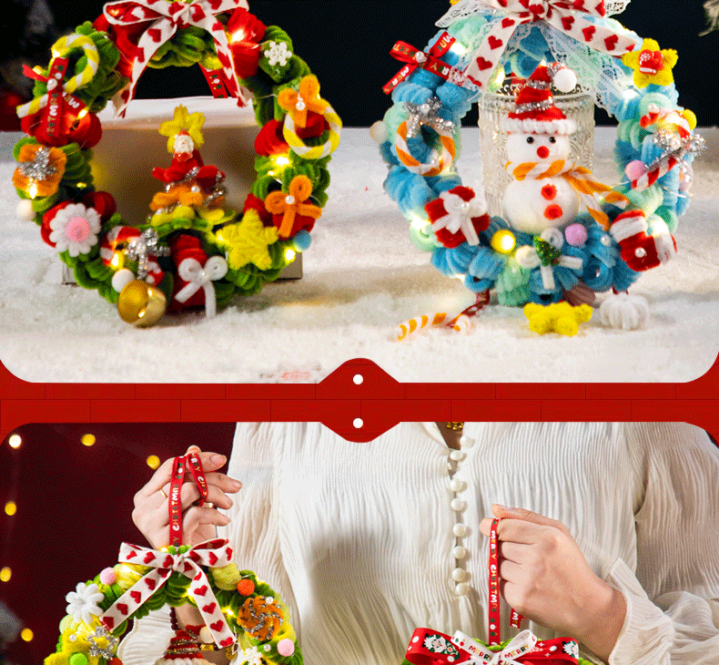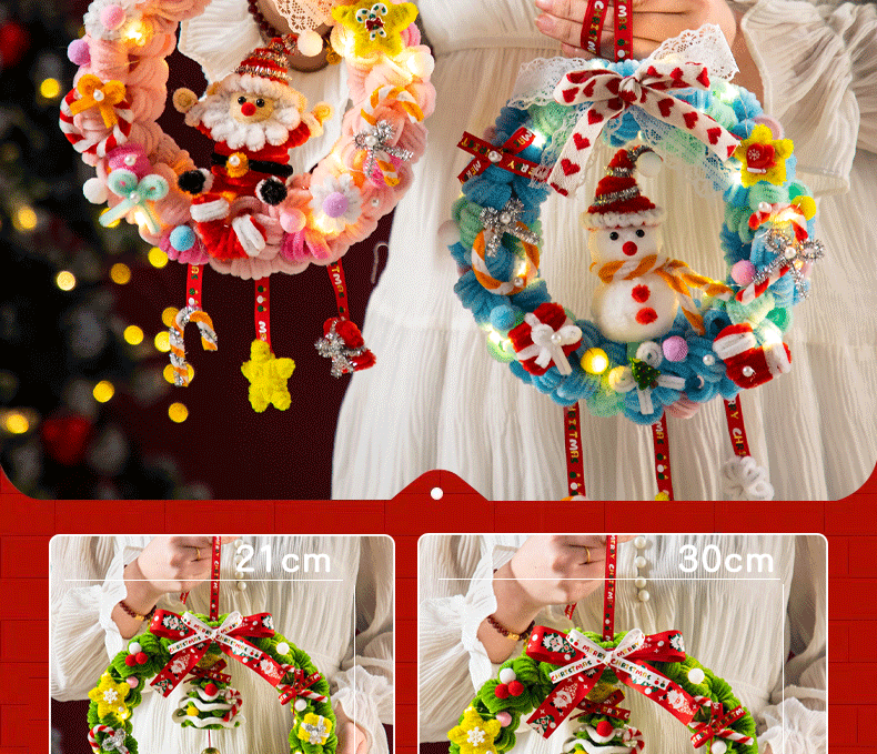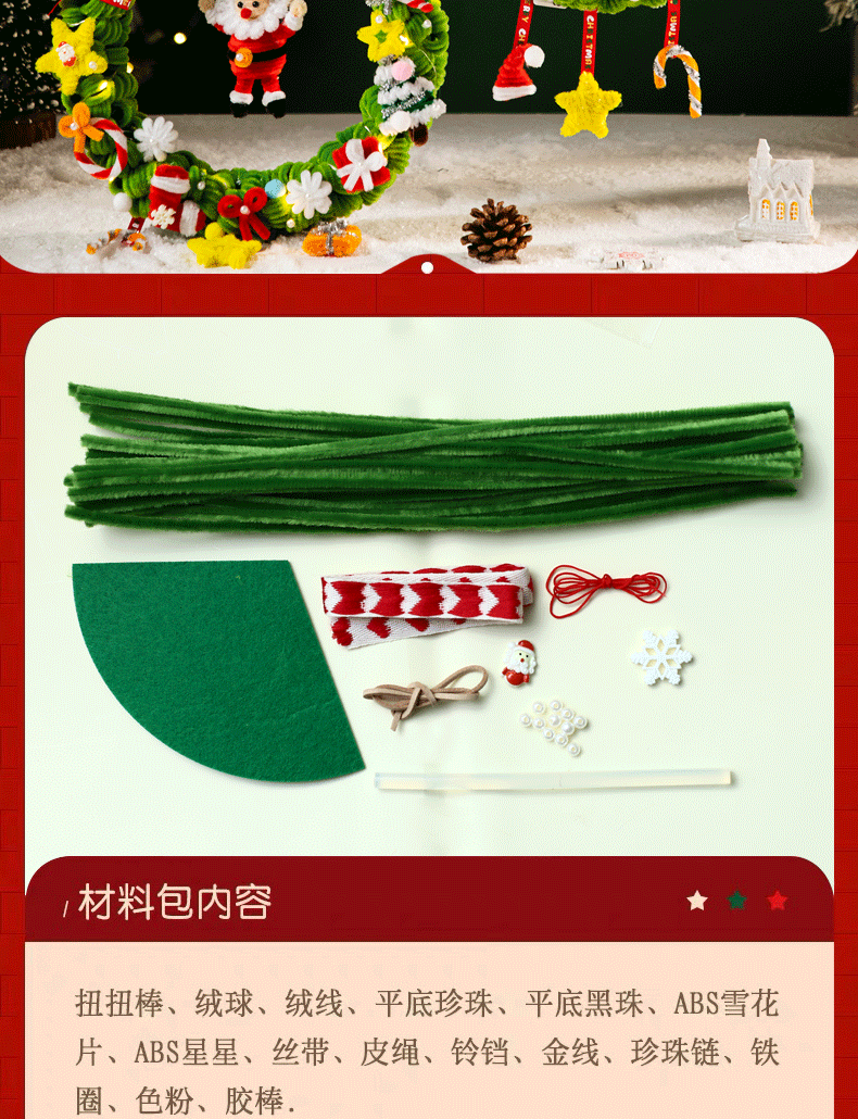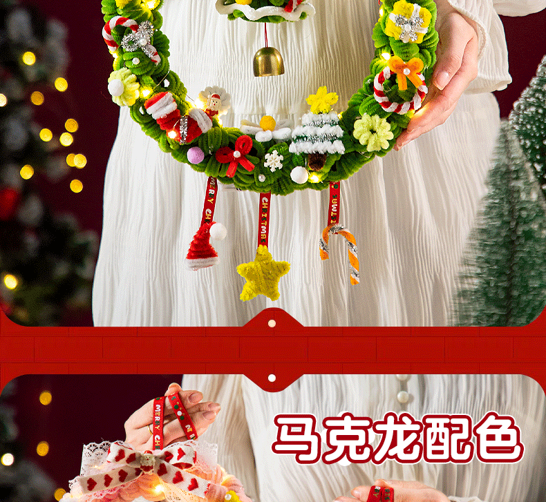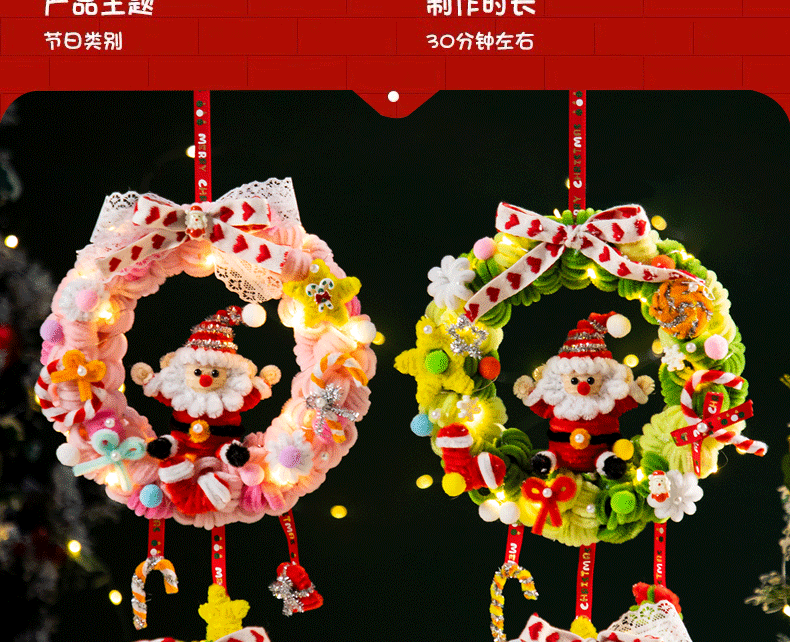 扭扭棒圣诞花环发光挂件装饰挂饰圣诞树手工diy材料包小礼物品