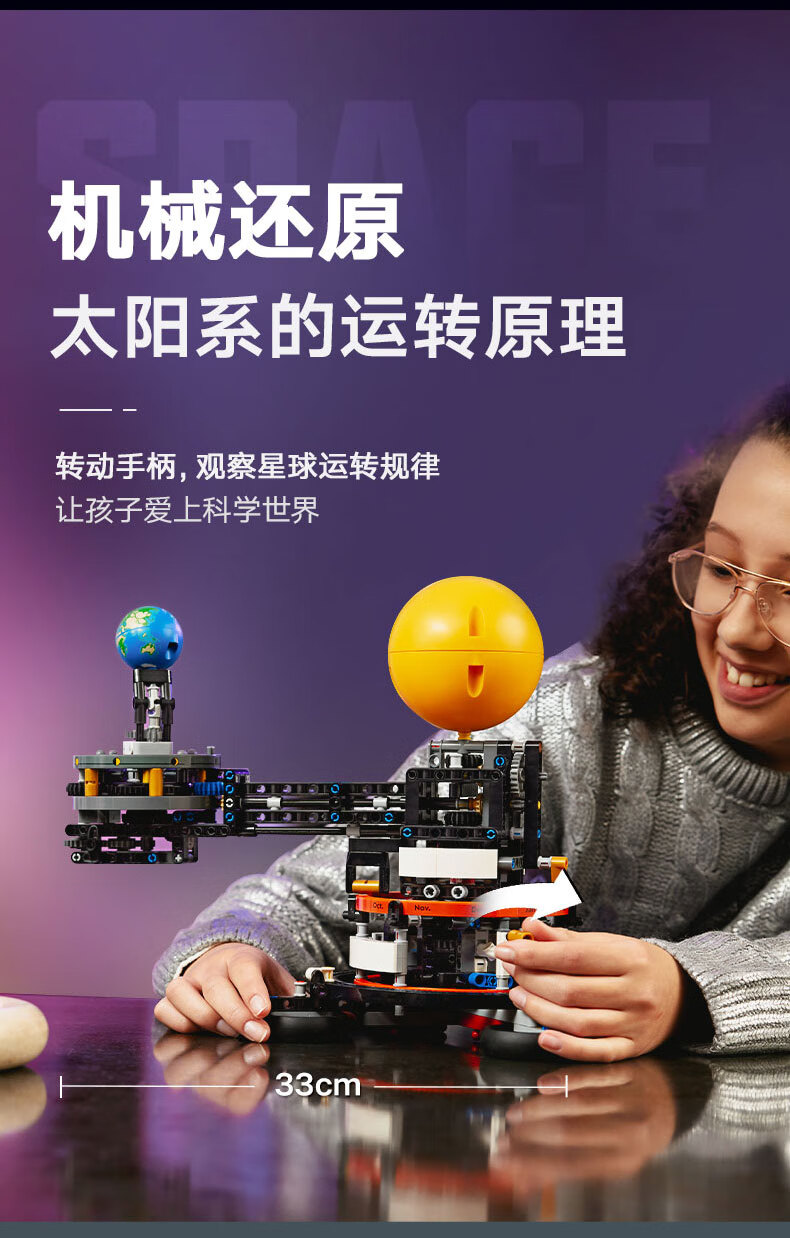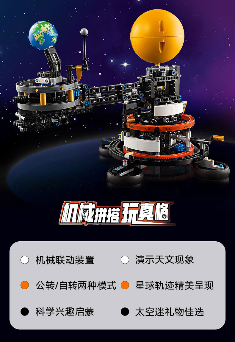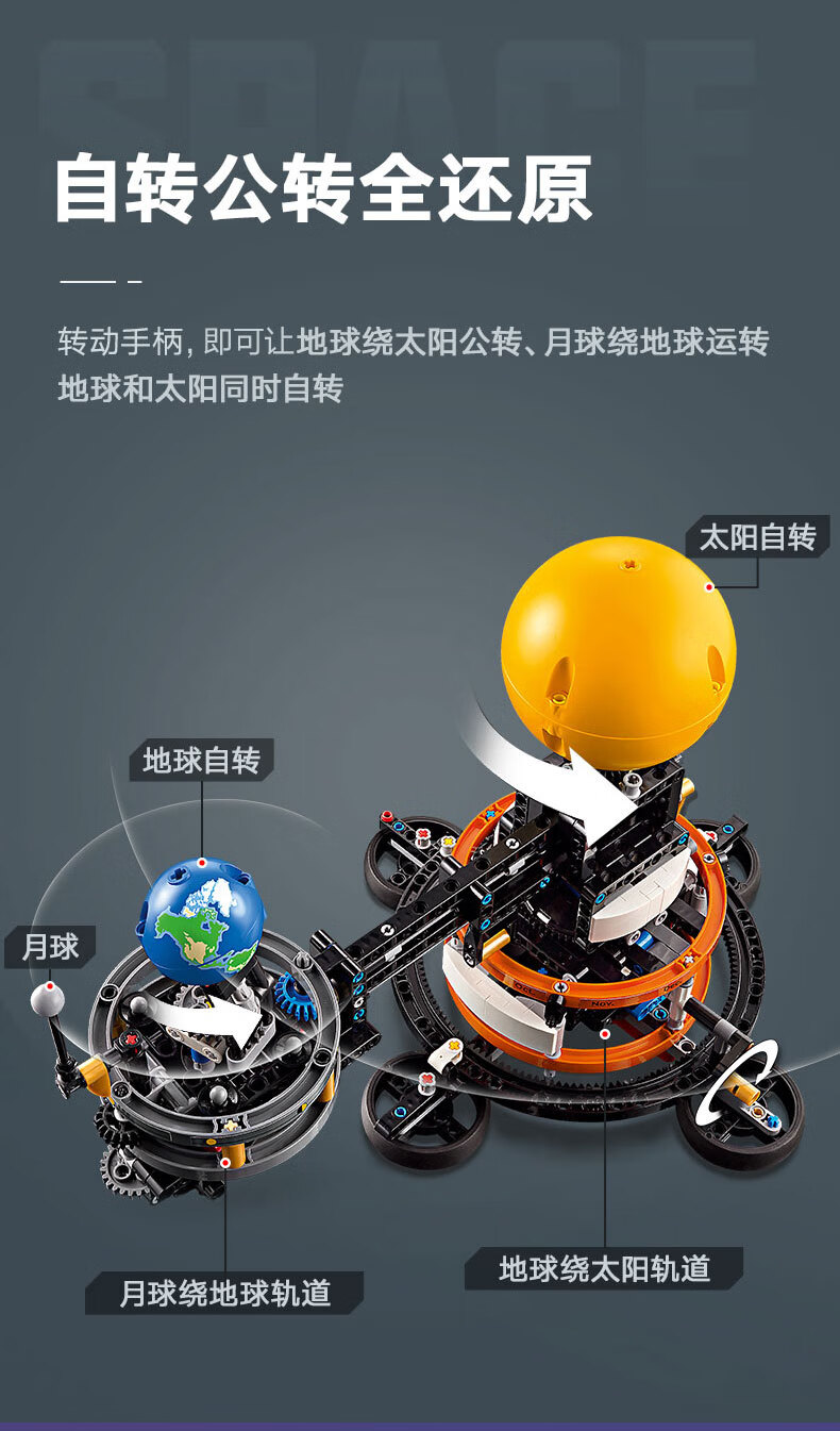 乐高积木L42179乐高机械组系列地球和月亮轨道运转模型