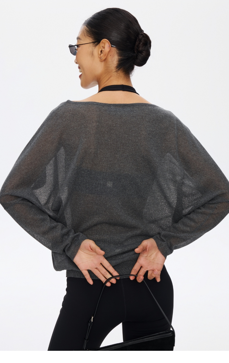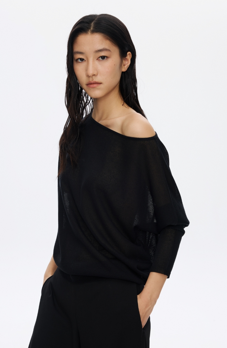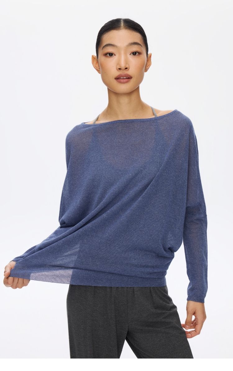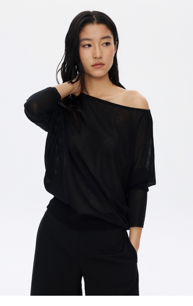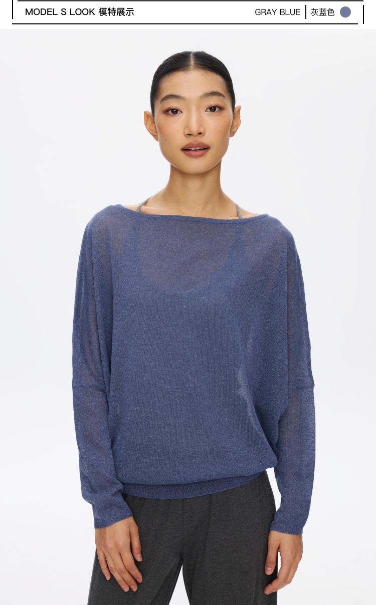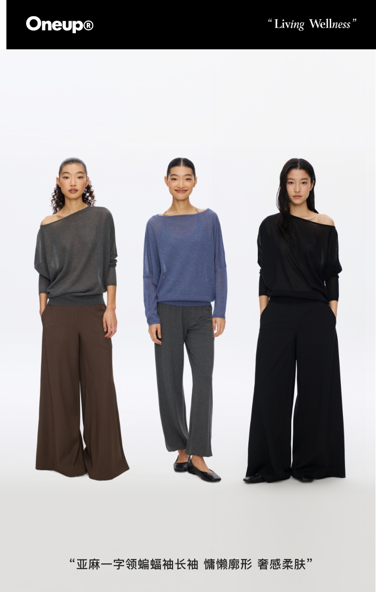 Oneup亚麻一字领蝙蝠袖长袖