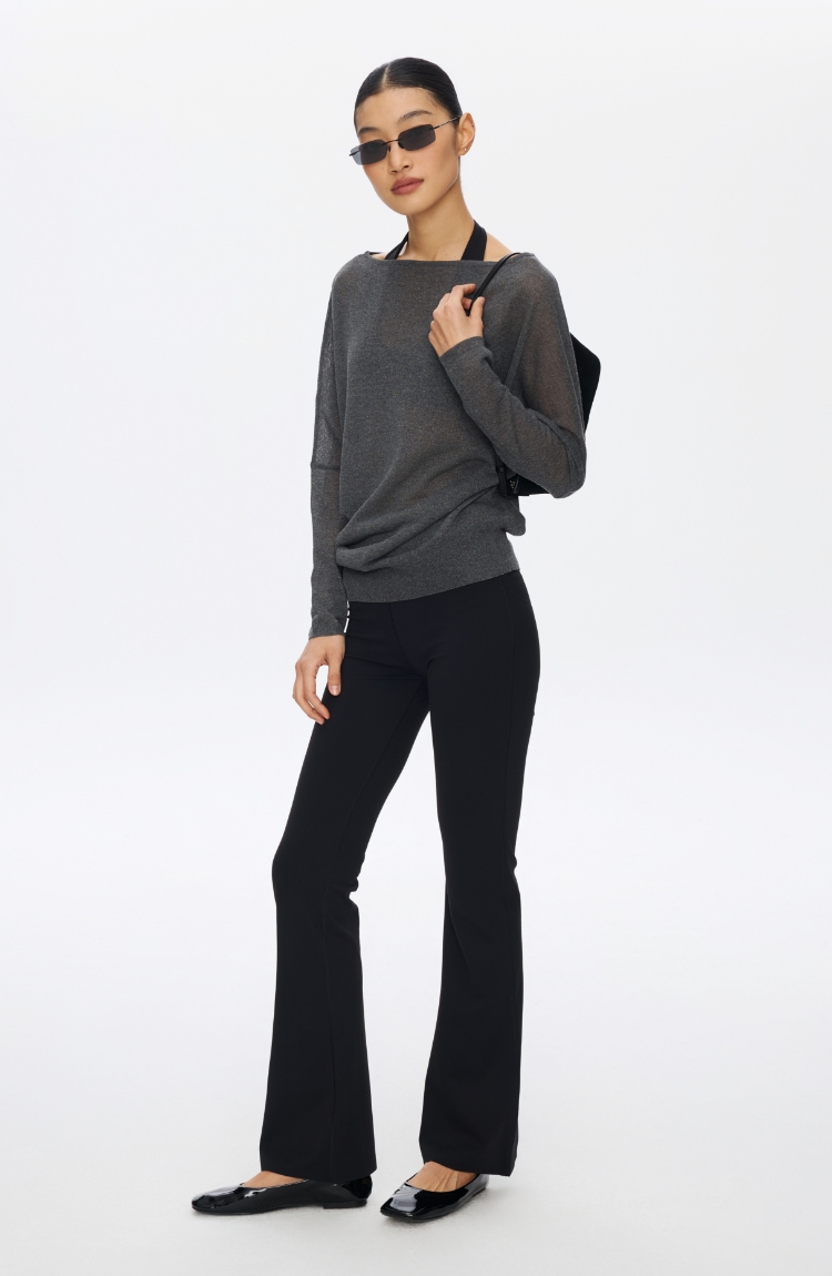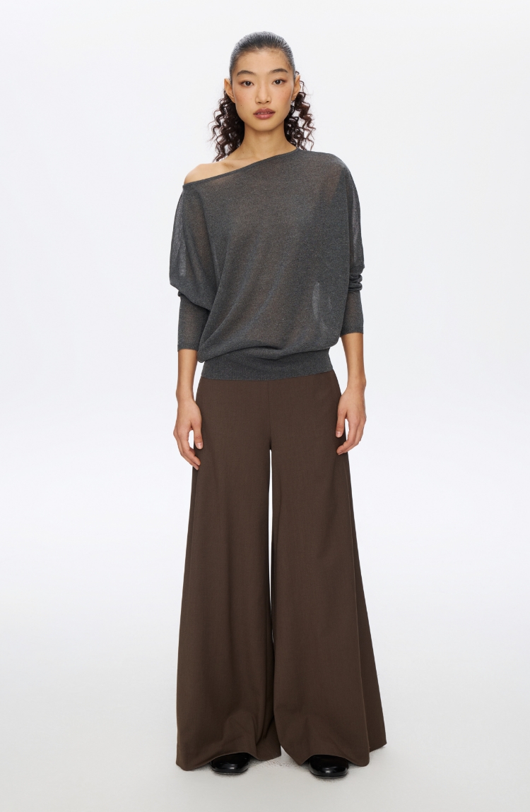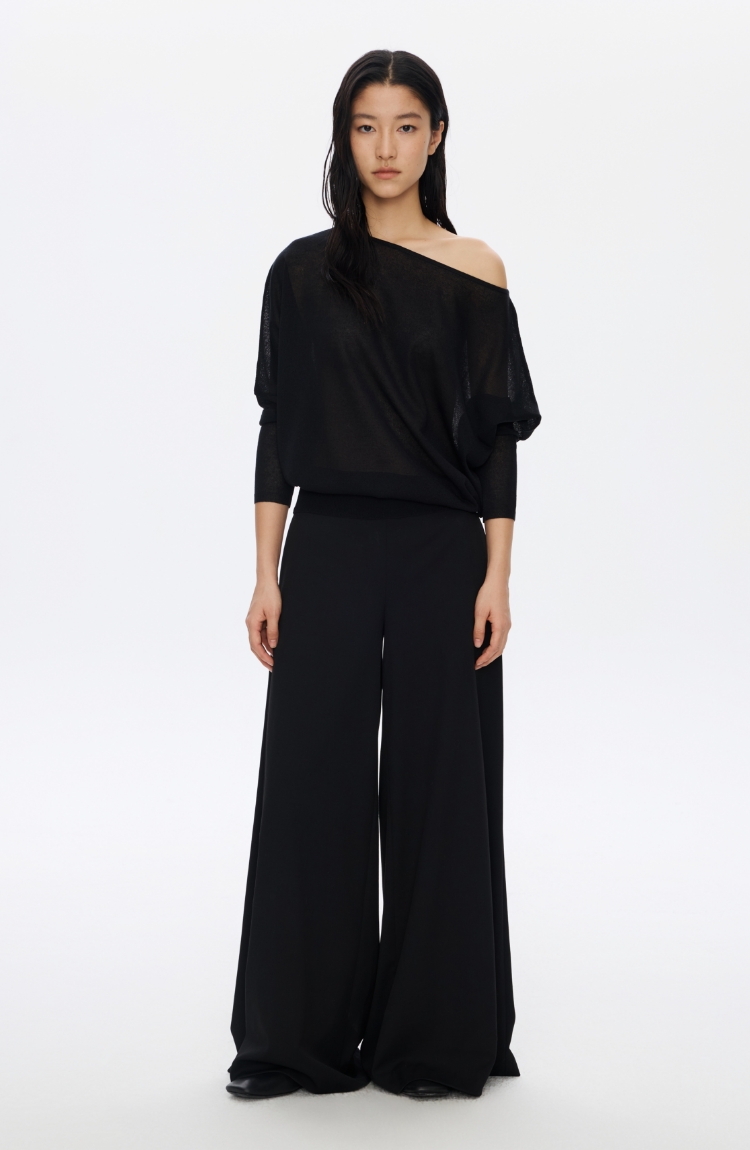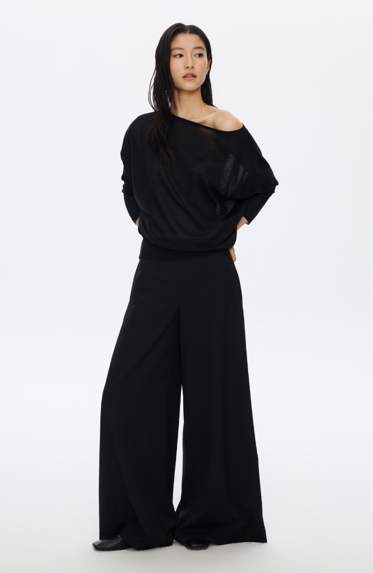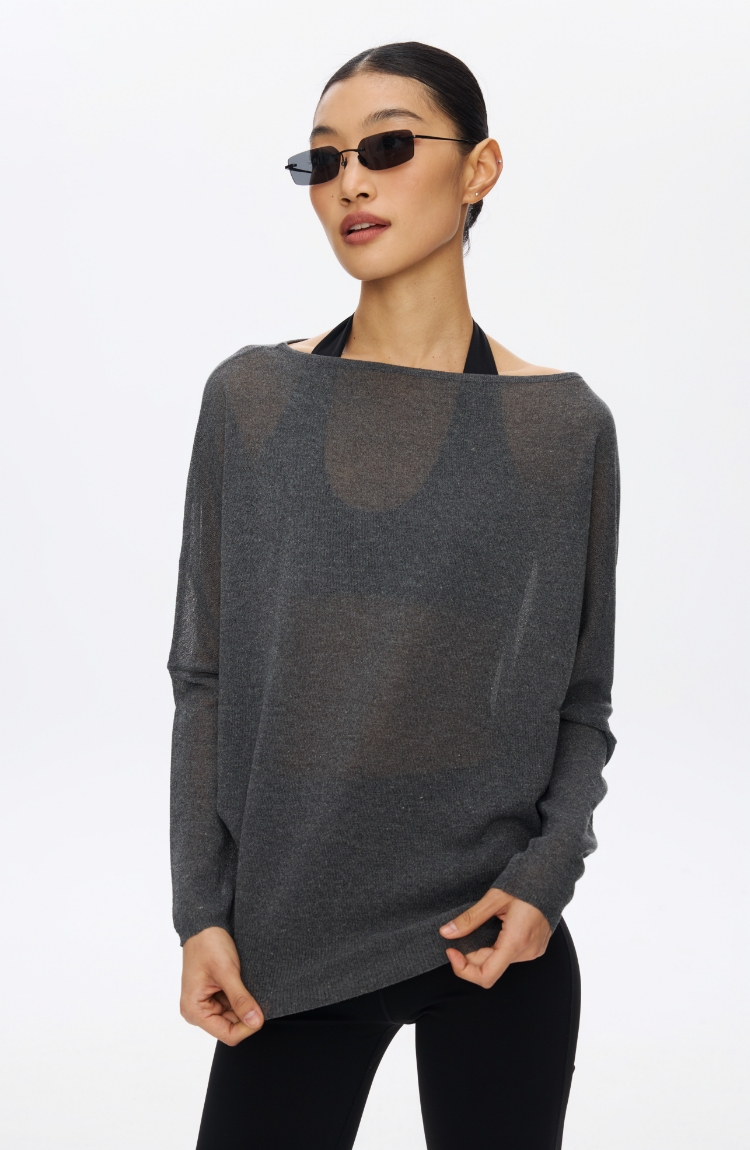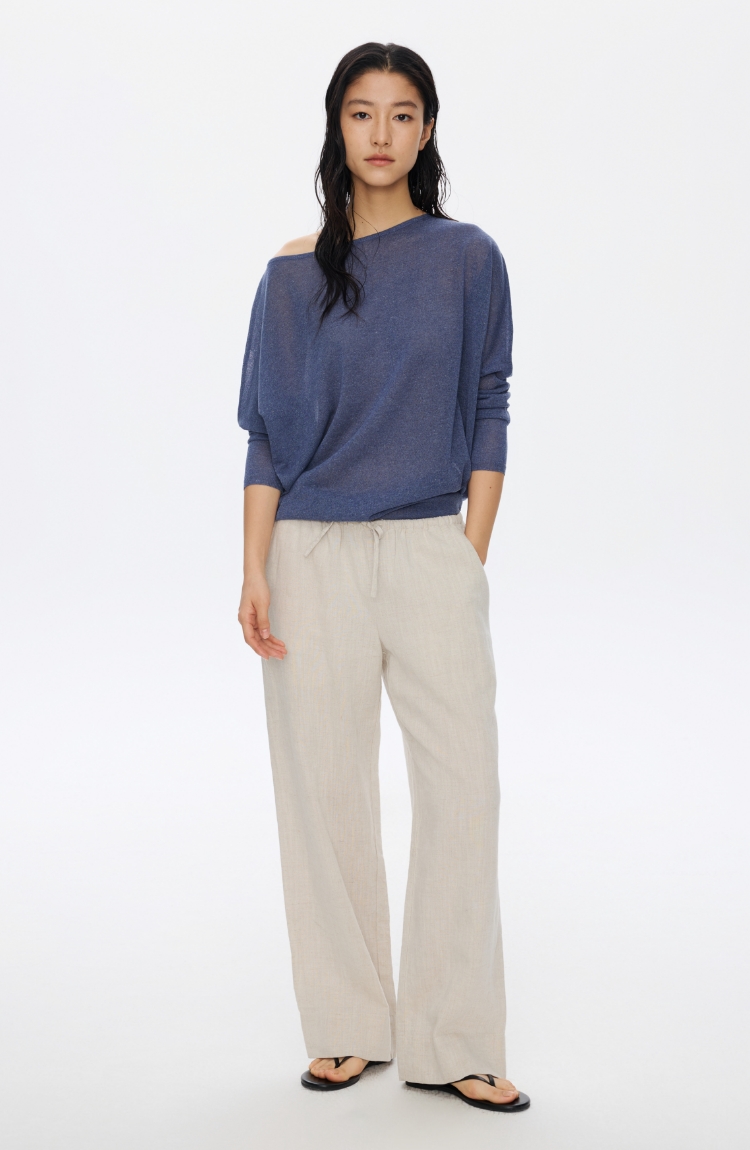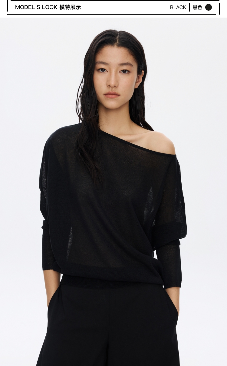 Oneup亚麻一字领蝙蝠袖长袖