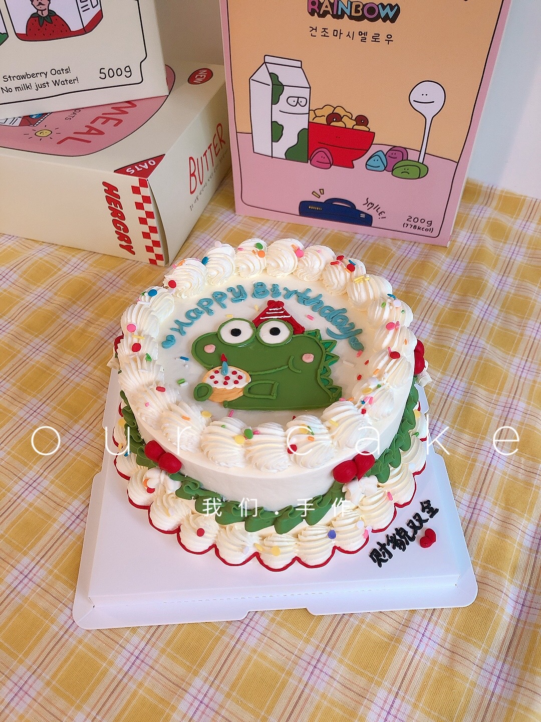 小恐龙手绘复古蛋糕-低糖处理无添加
