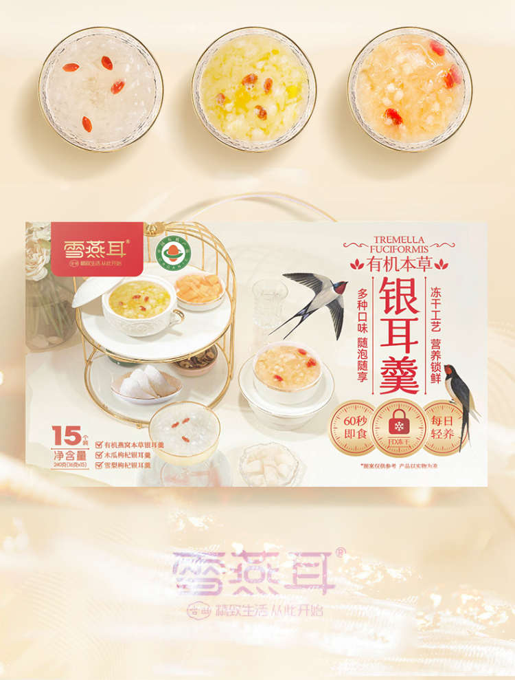 雪燕耳有机FD冻干燕窝本草银耳羹混合装冲泡即食免煮礼盒装