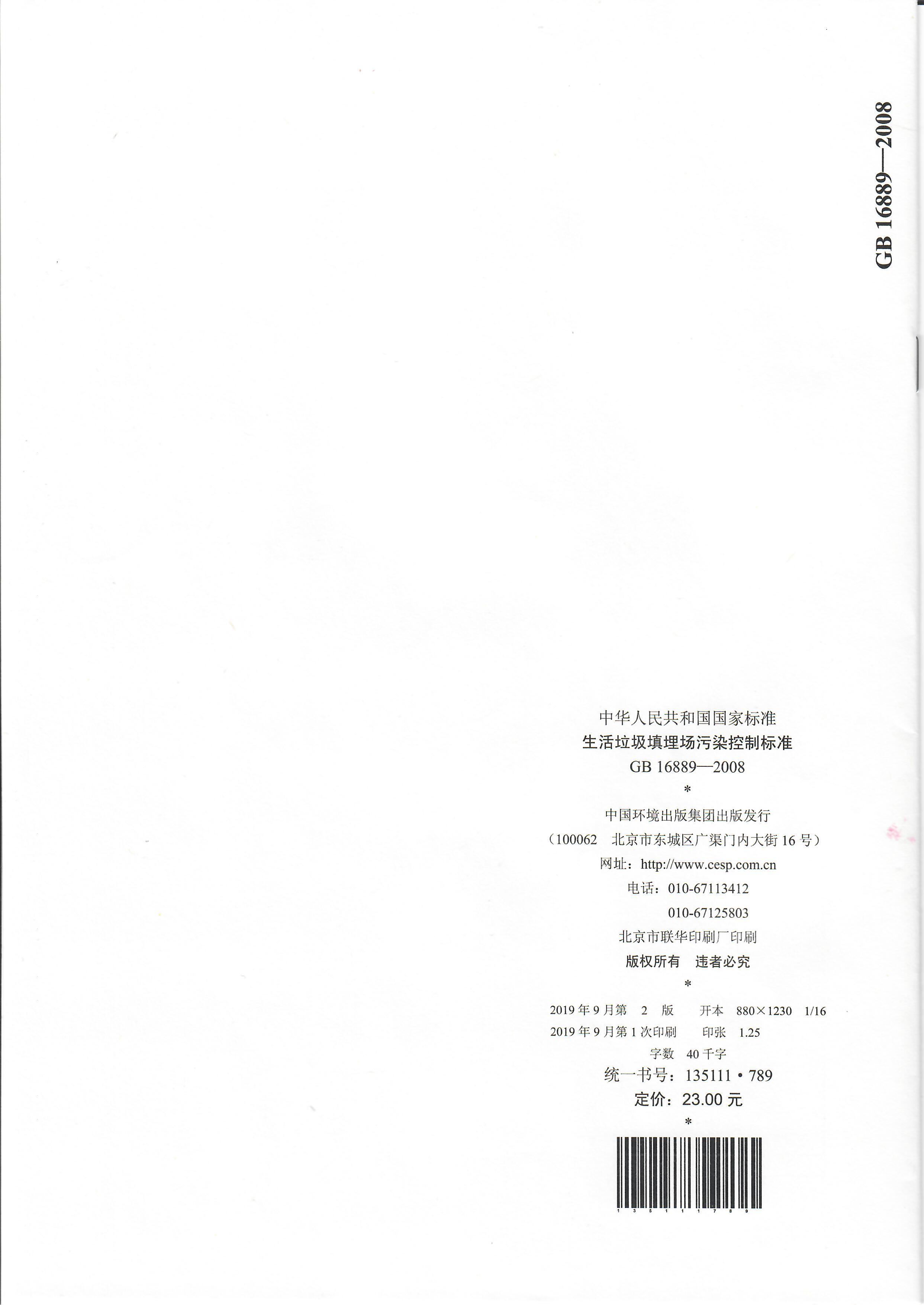 GB16889-2008 生活垃圾填埋场污染控制标准