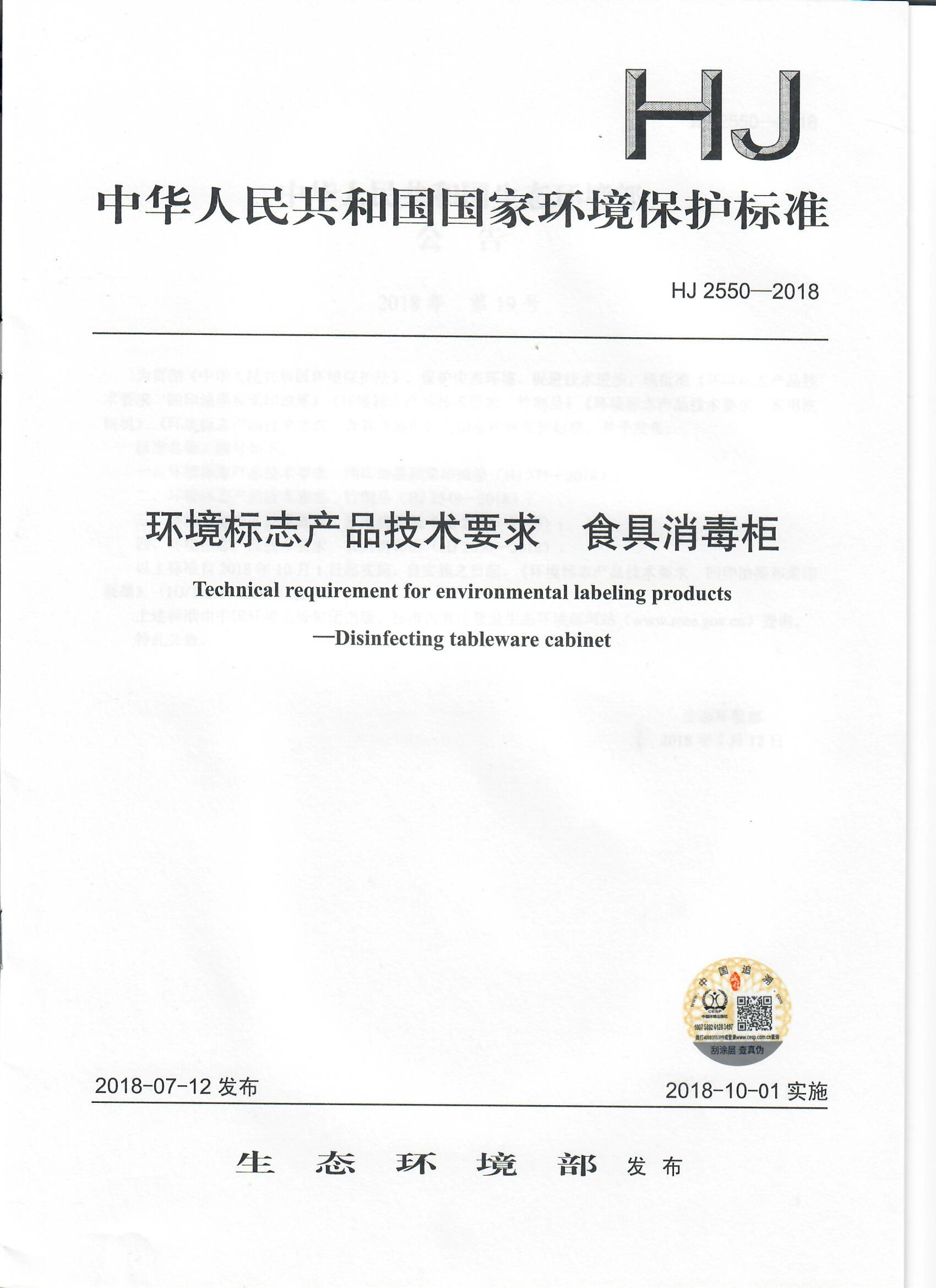 HJ 2550-2018 环境标志产品技术要求 食具消毒柜