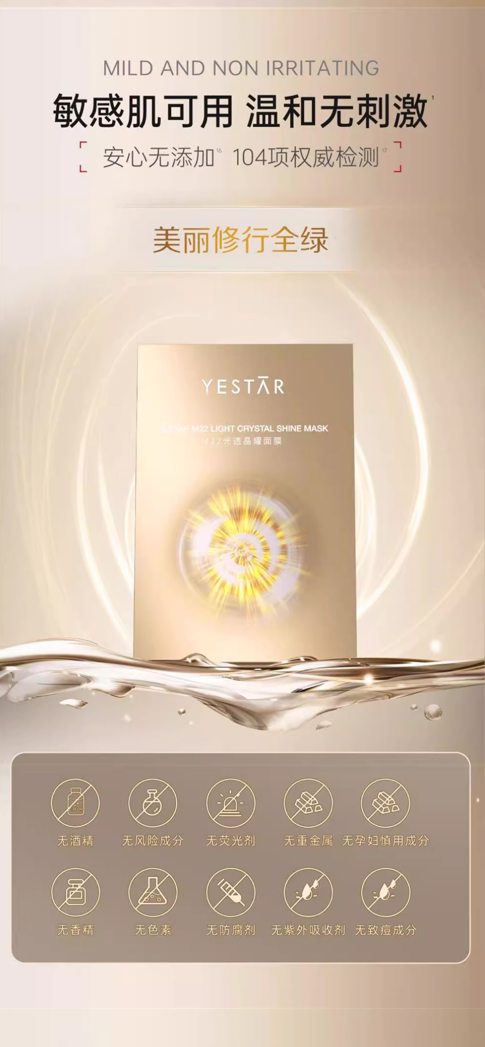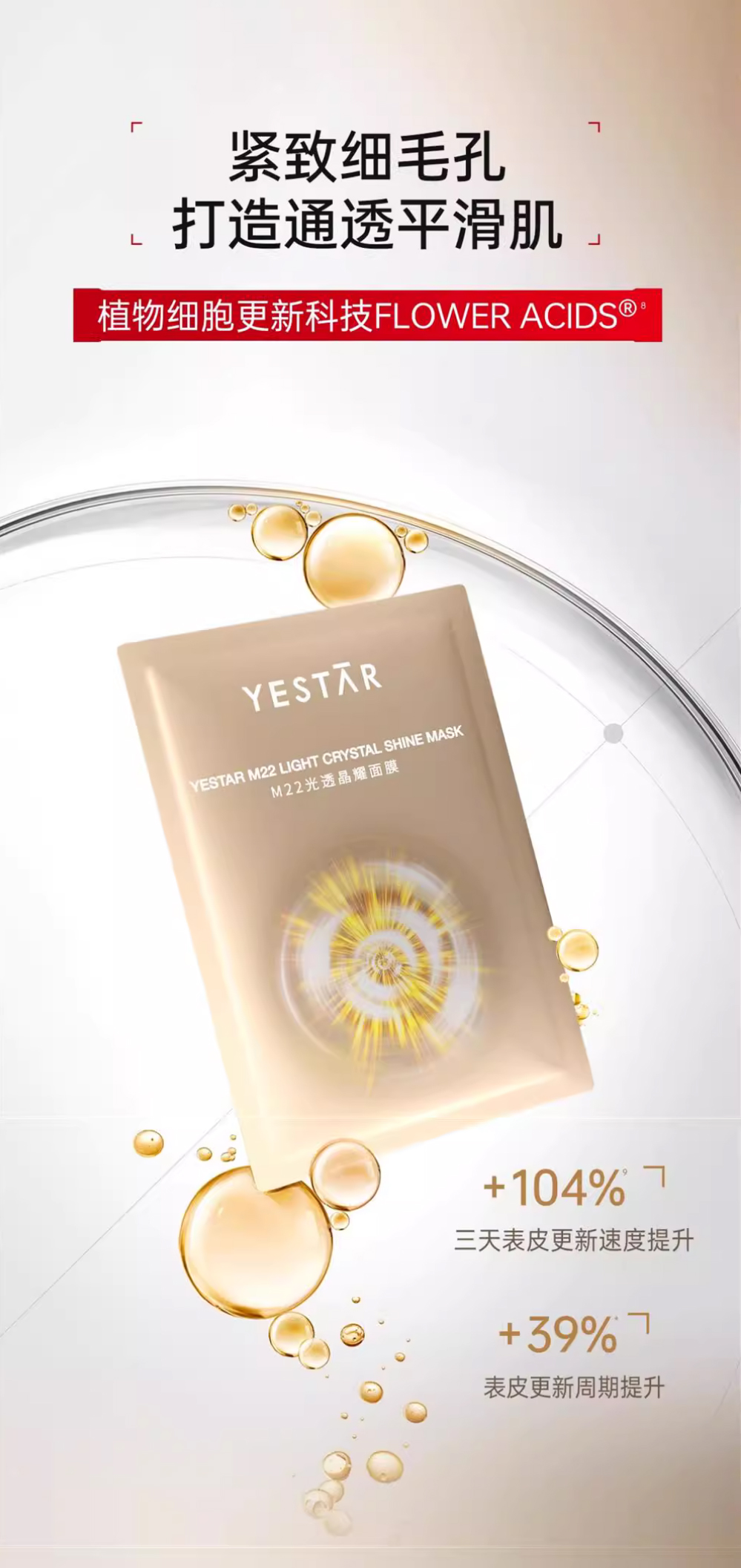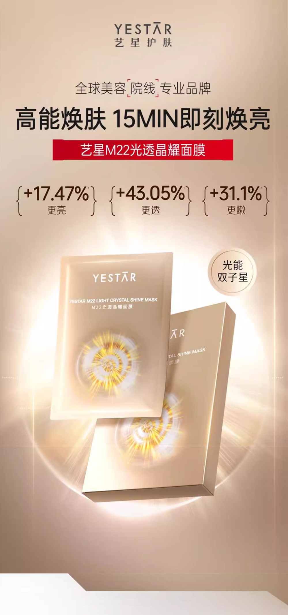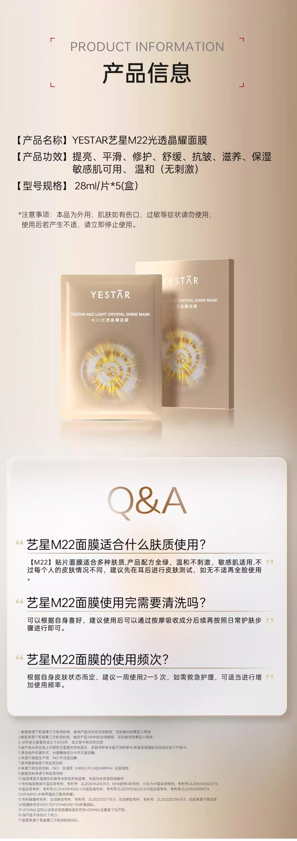 【品名】Yestar艺星M22光子光透晶耀面膜5片/盒