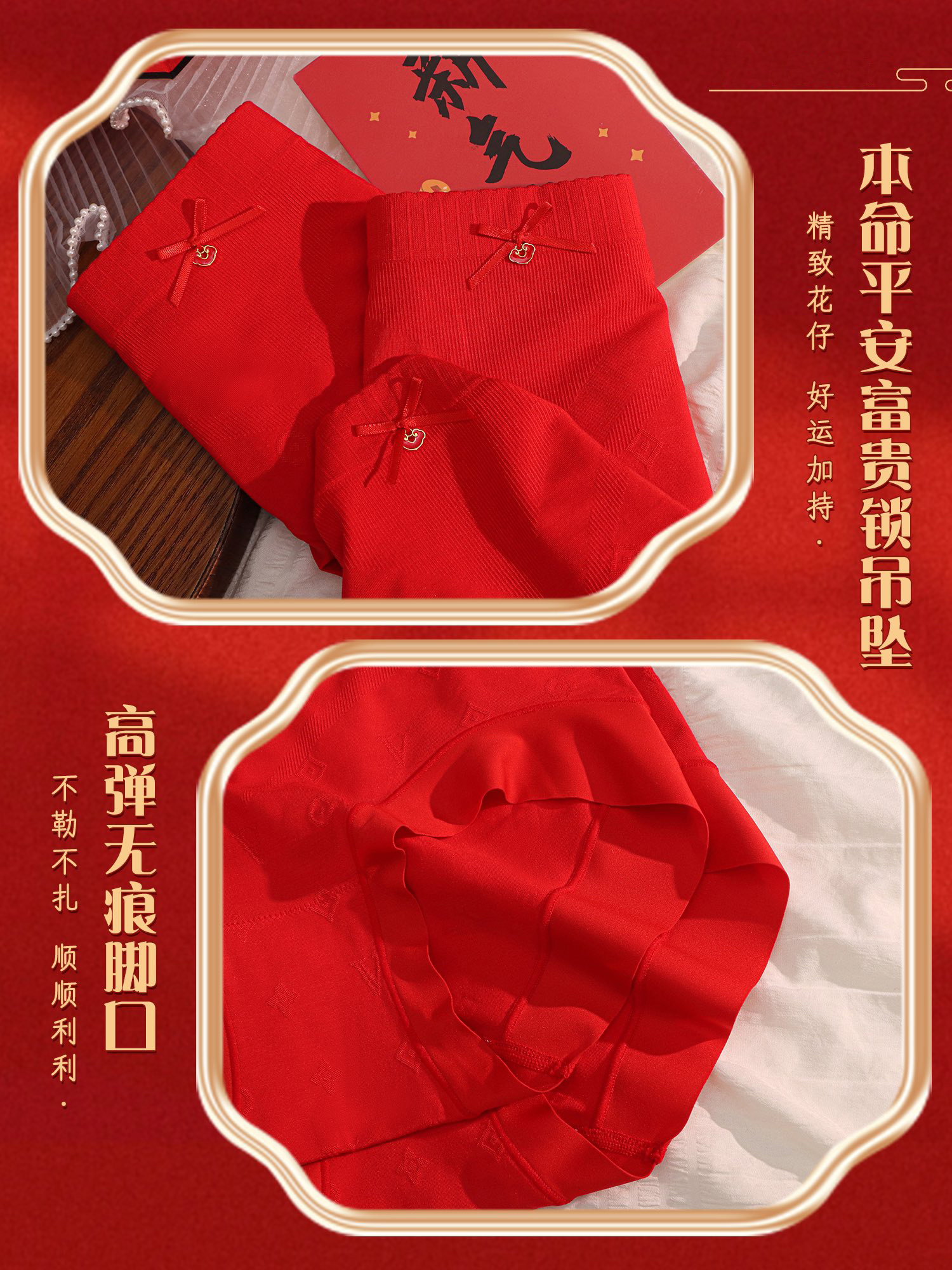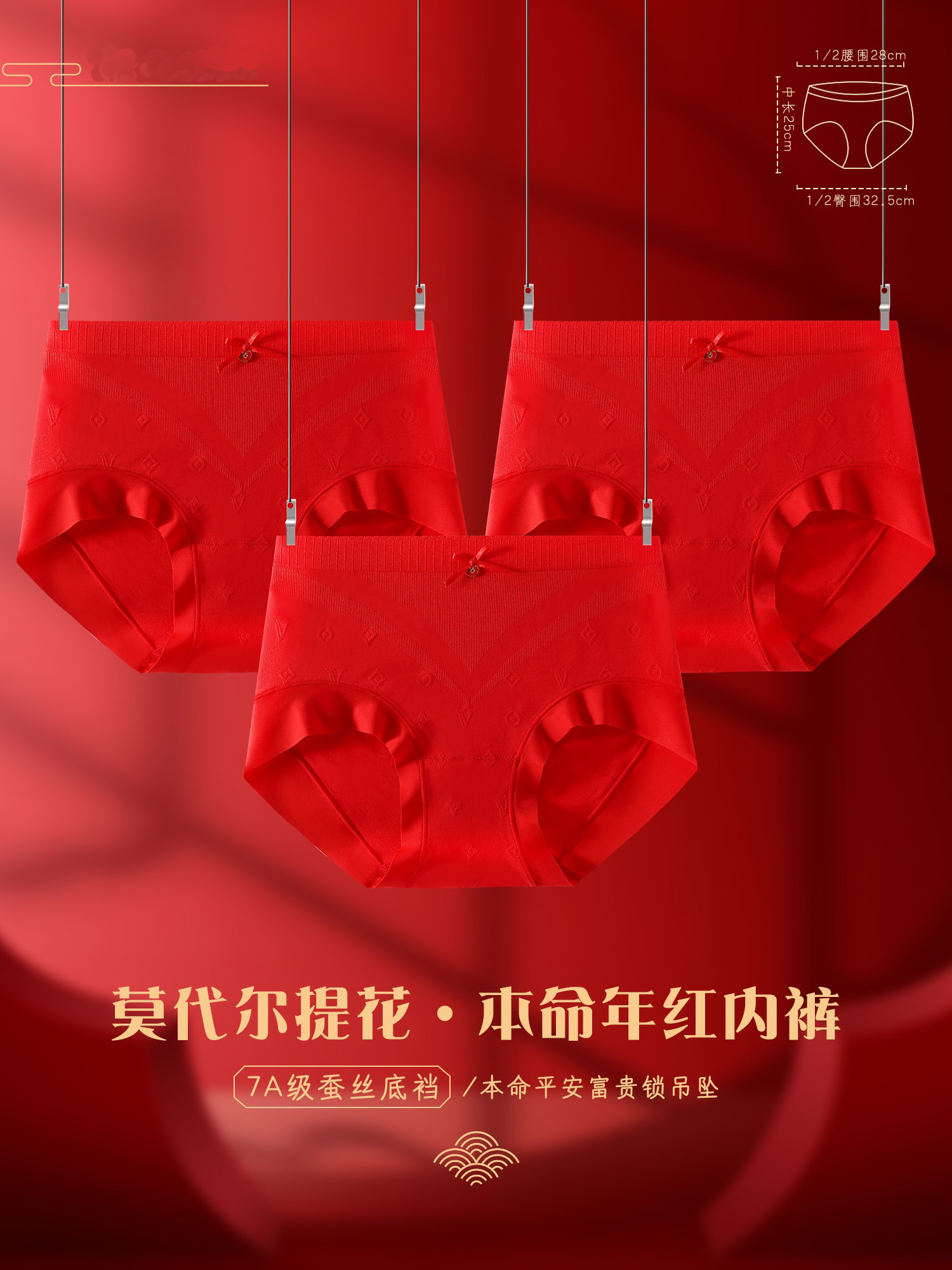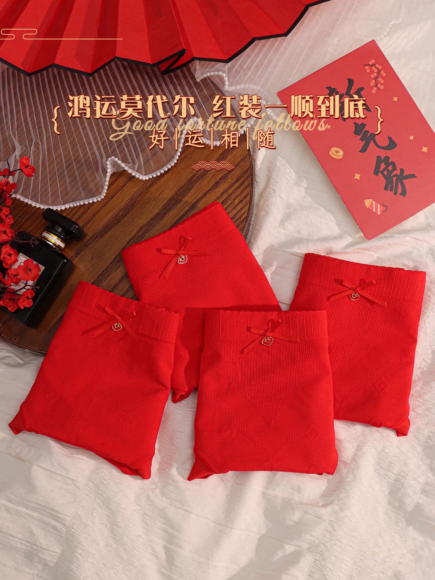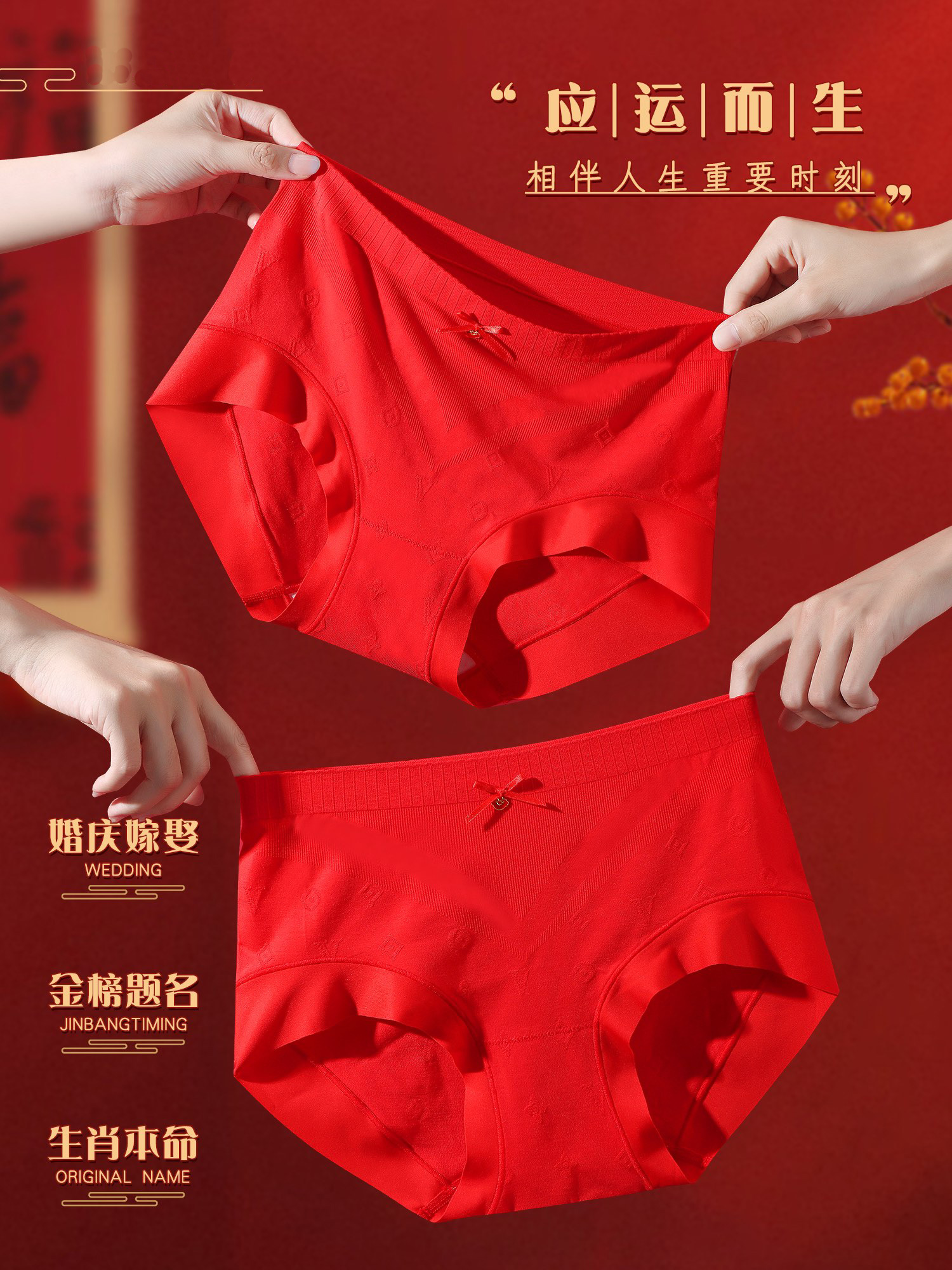 [3条装]女士本命年内裤好运正当红女士红色三角底裤中高腰【CSL24260】