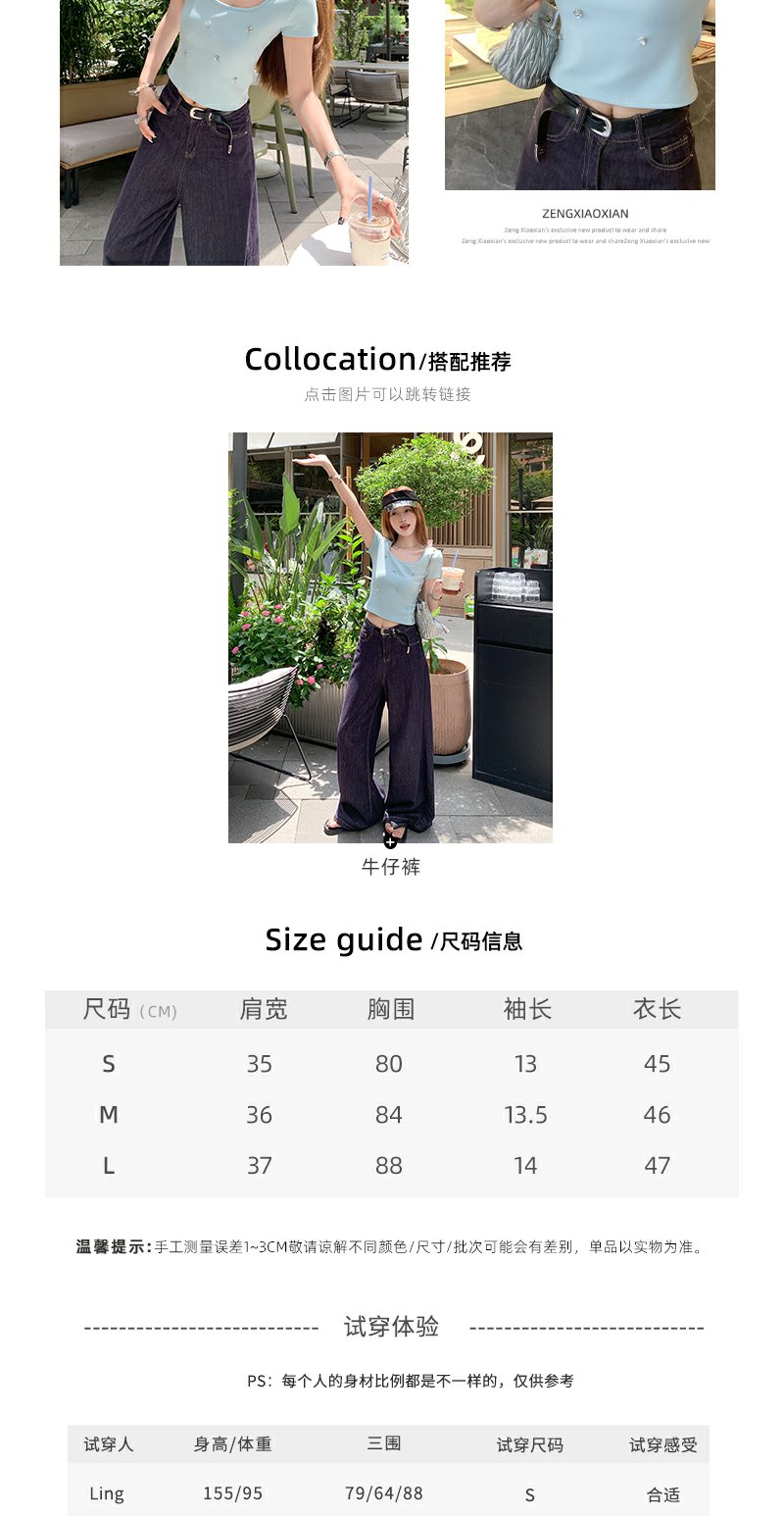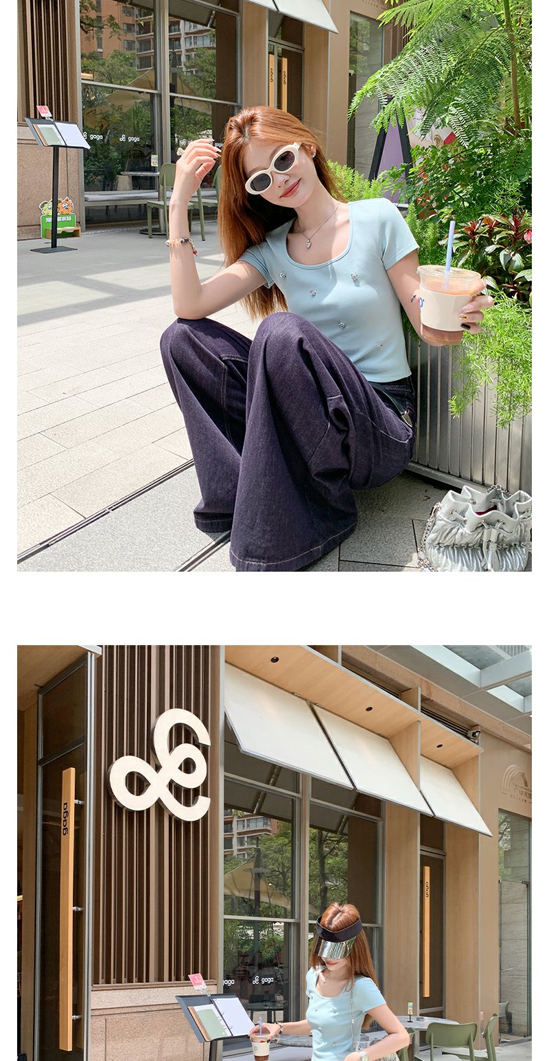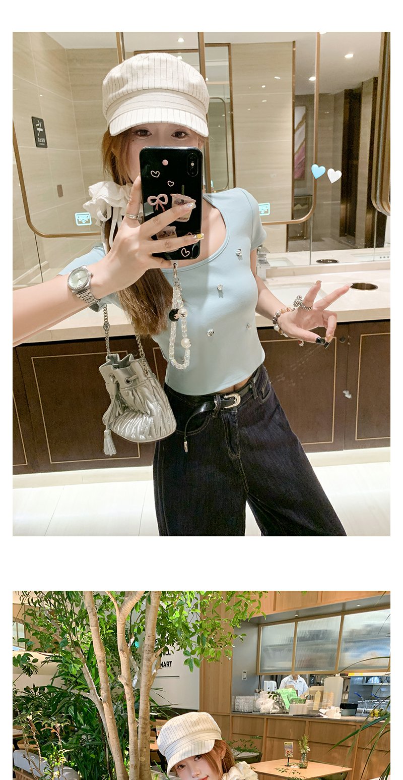 【99元任选2件】微信打折价!薄荷绿方领修身短款T