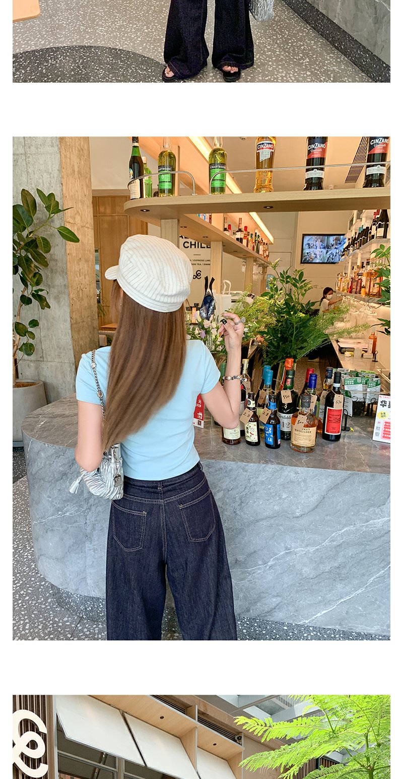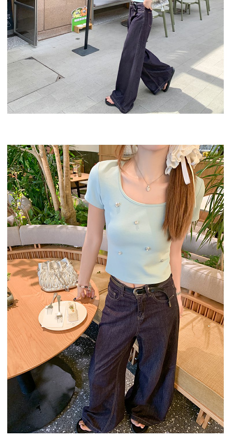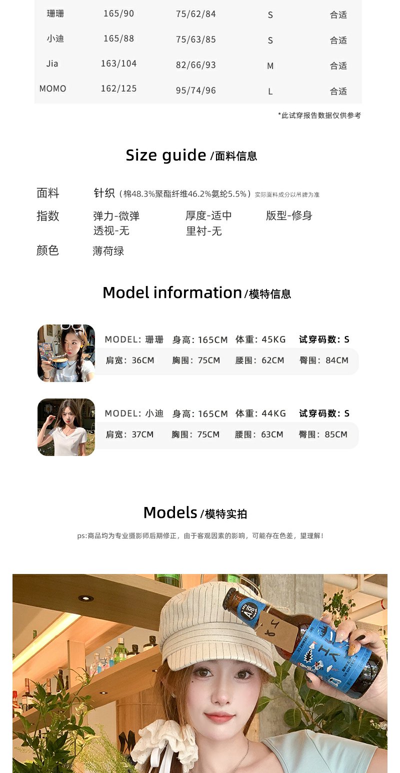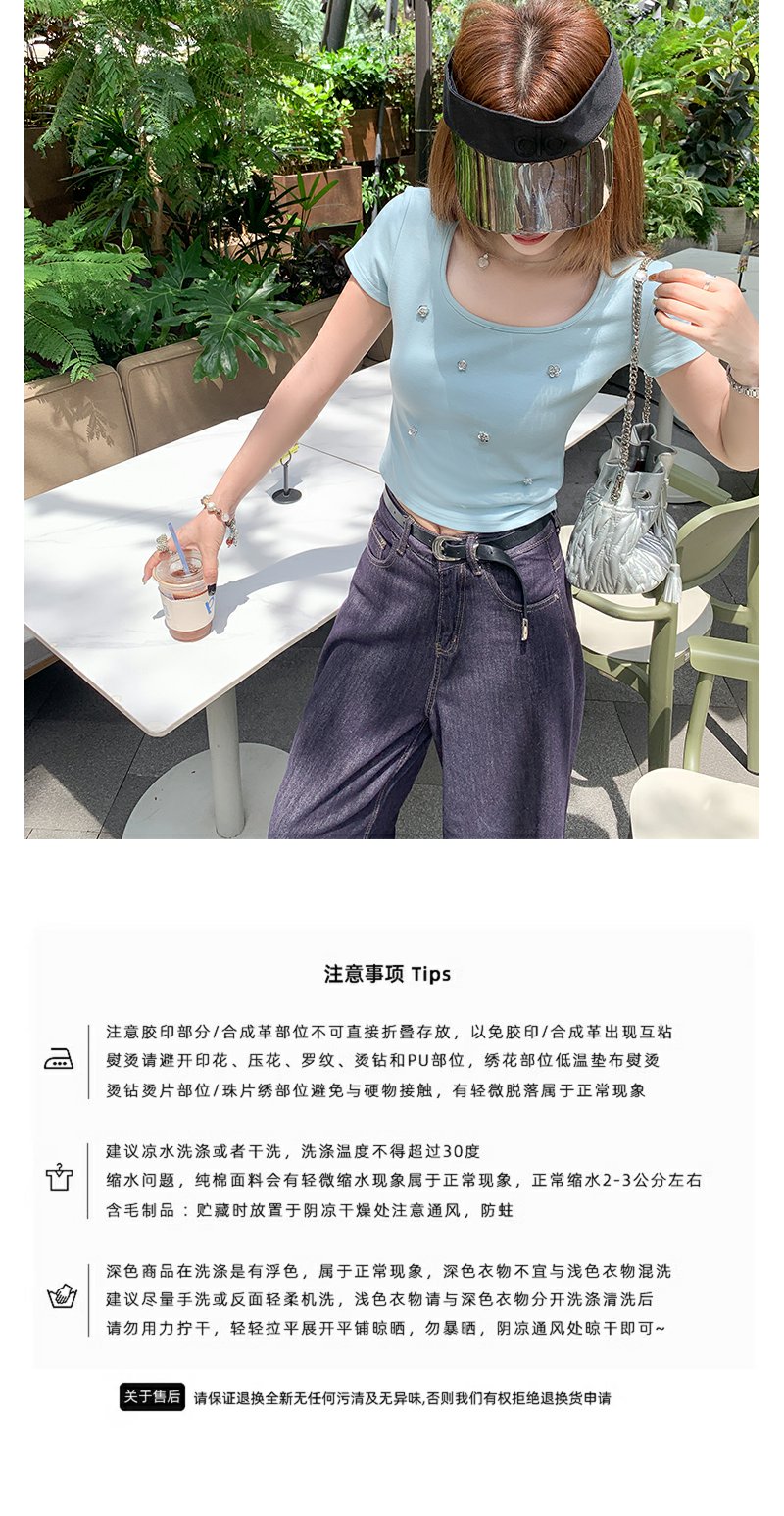 【99元任选2件】微信打折价!薄荷绿方领修身短款T