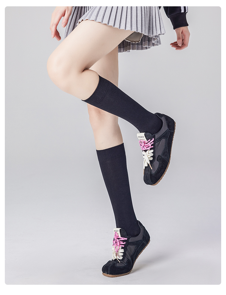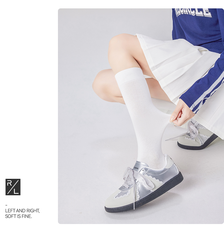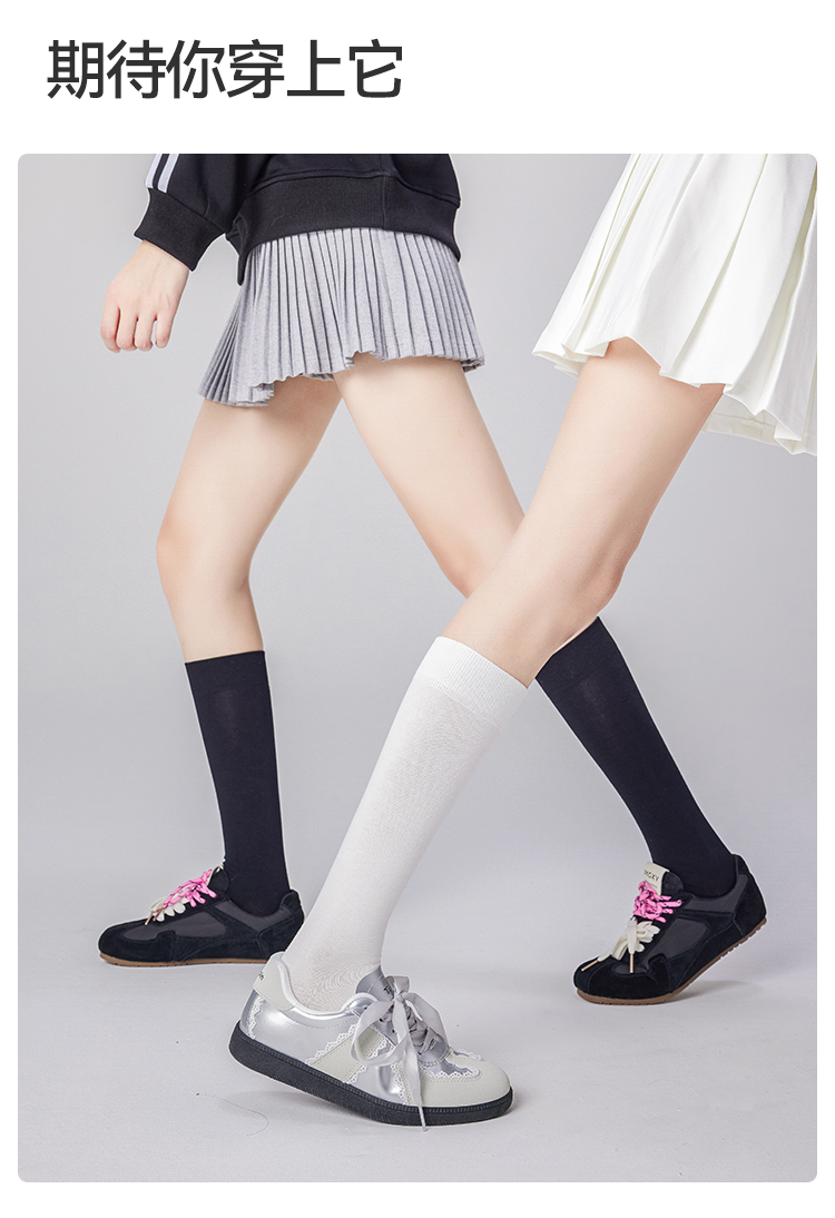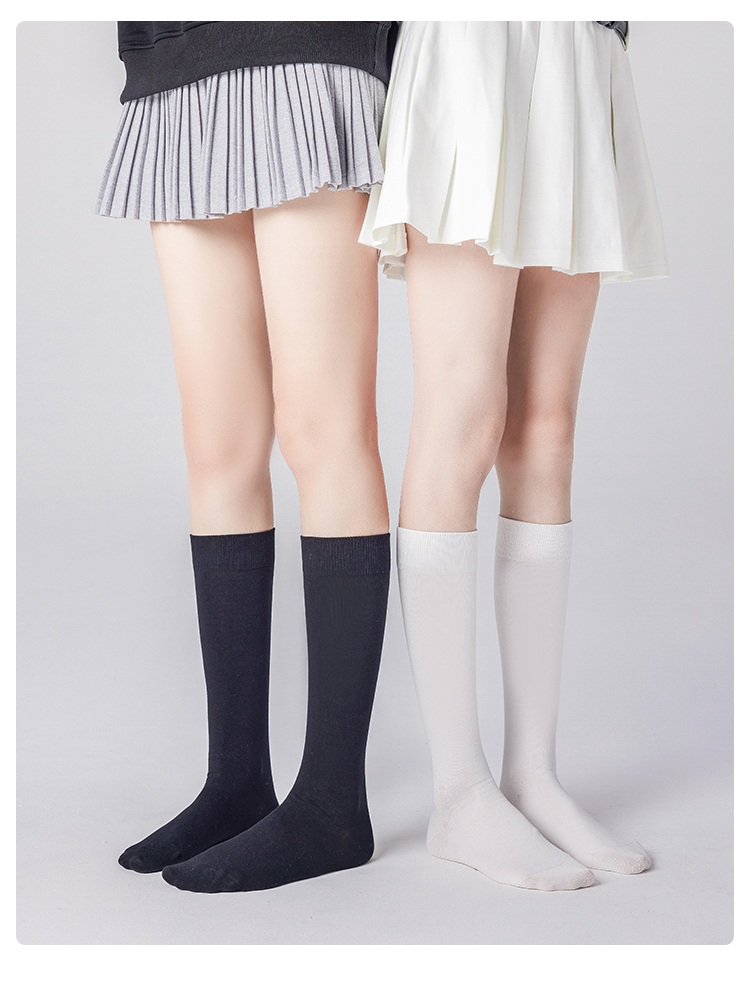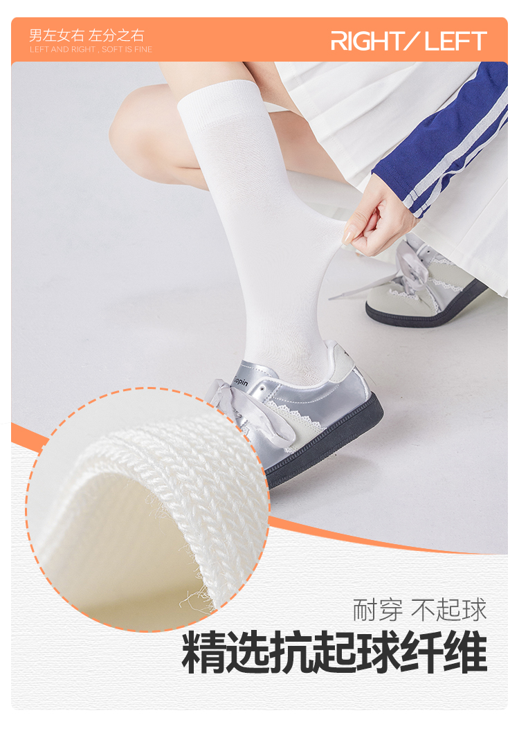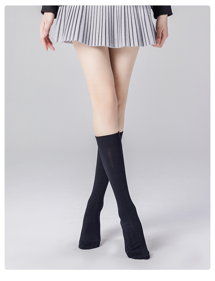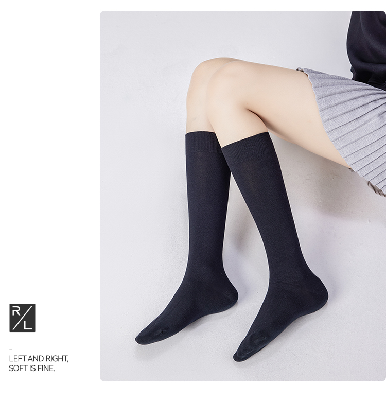 左分之右春夏纯色10A抗菌小腿袜女黑色显瘦JK白色中高筒长筒袜