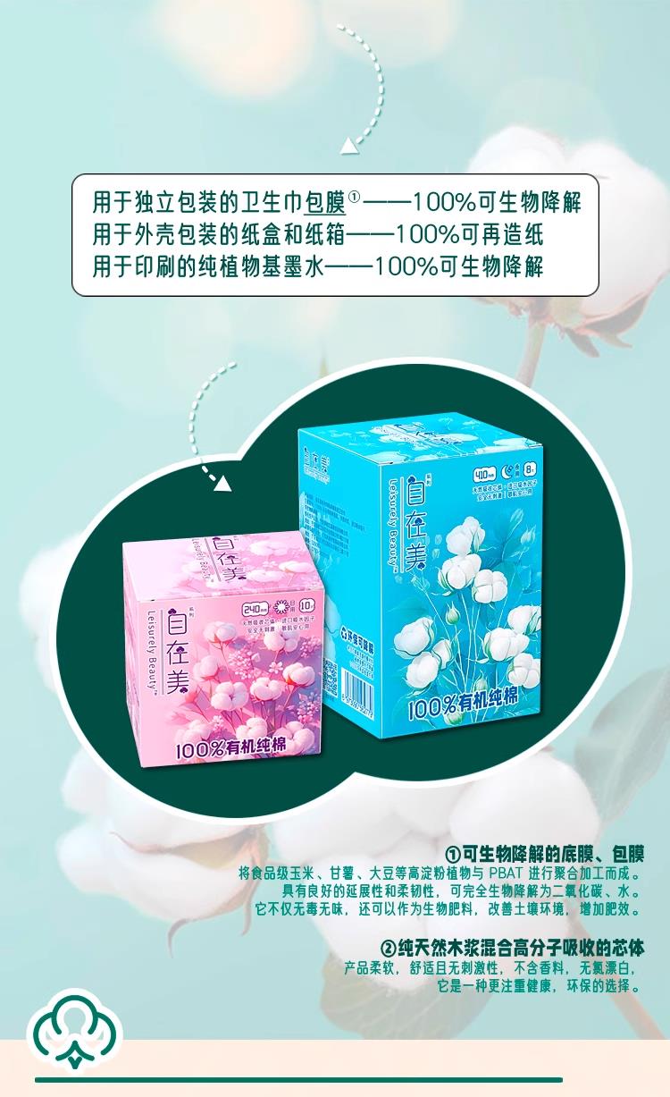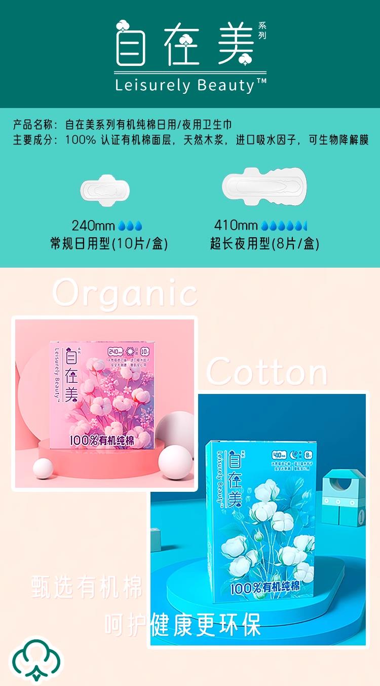 【特惠】Leisurely Beauty自在美系列卫生巾 日用(10片)/盒410mm夜用(8片)/盒有机棉花认证【京东快递送货上门】