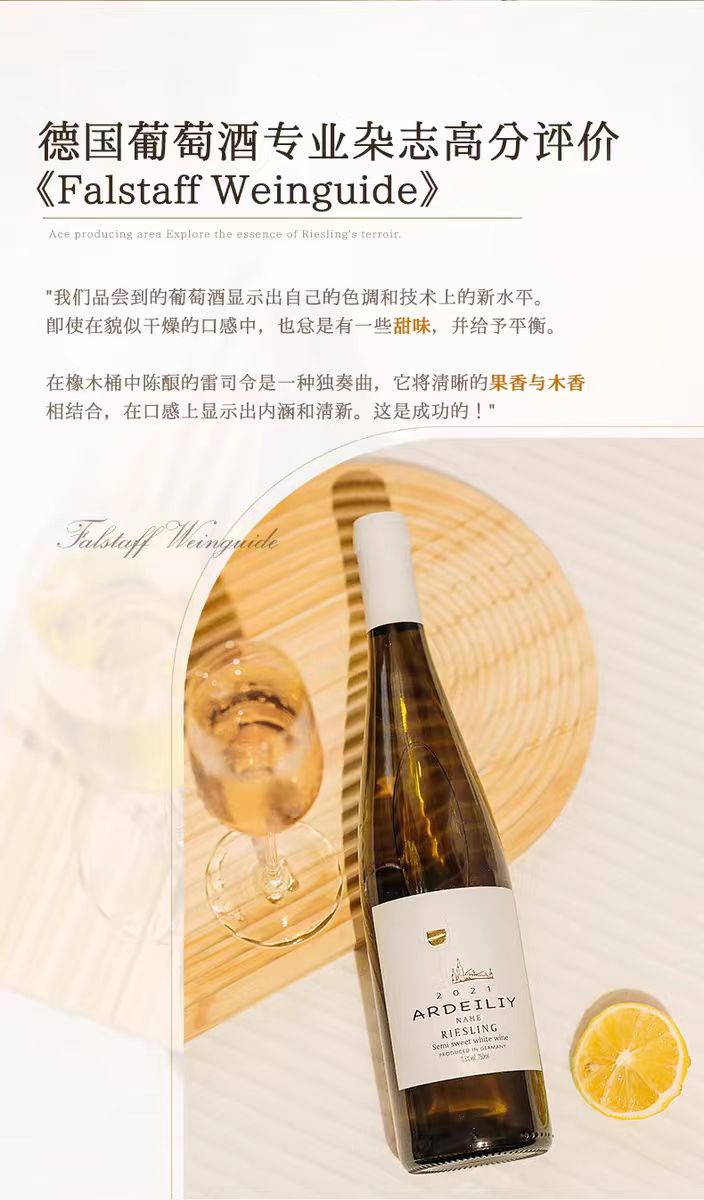 【Falstaff Weinguide专业杂志高分评价】安迪利雷司令半甜白葡萄酒 德国法定产区 11.5%vol
