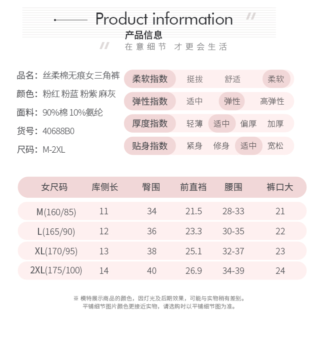 Threegun三枪 【丝柔棉】无痕女士三角内裤(1条装)-40688B011