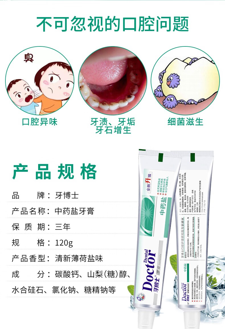 【礼迎泰康】牙博士中药盐牙膏120g每支*2