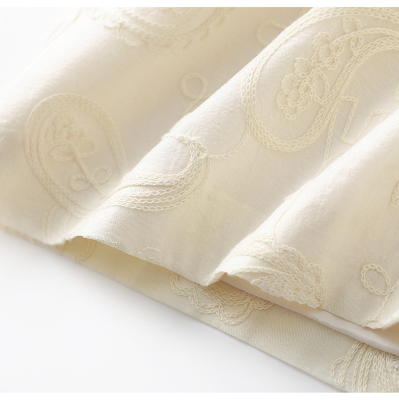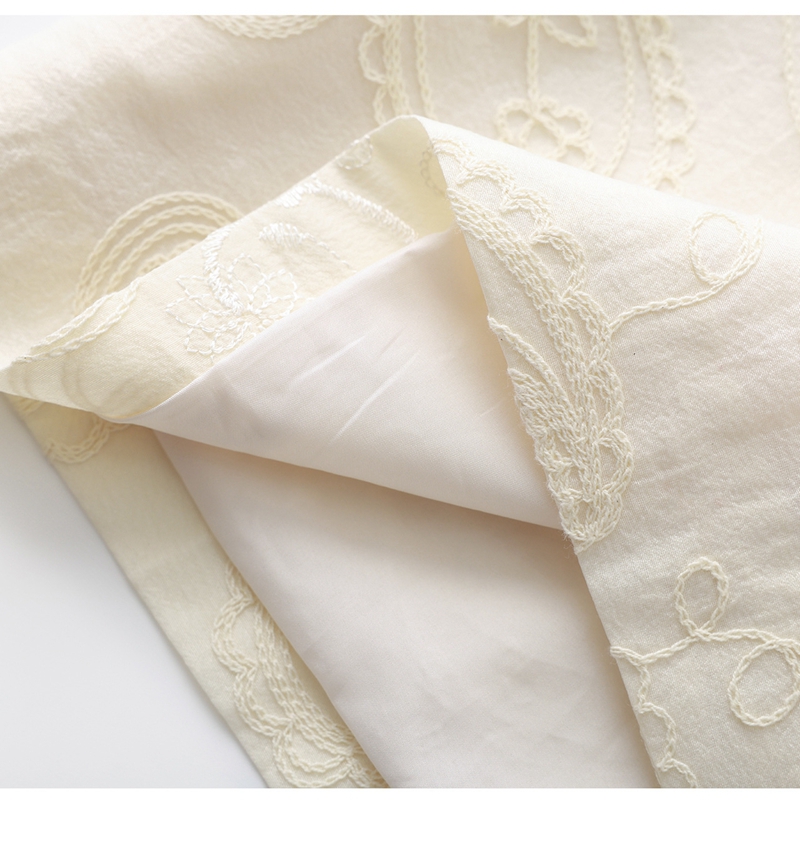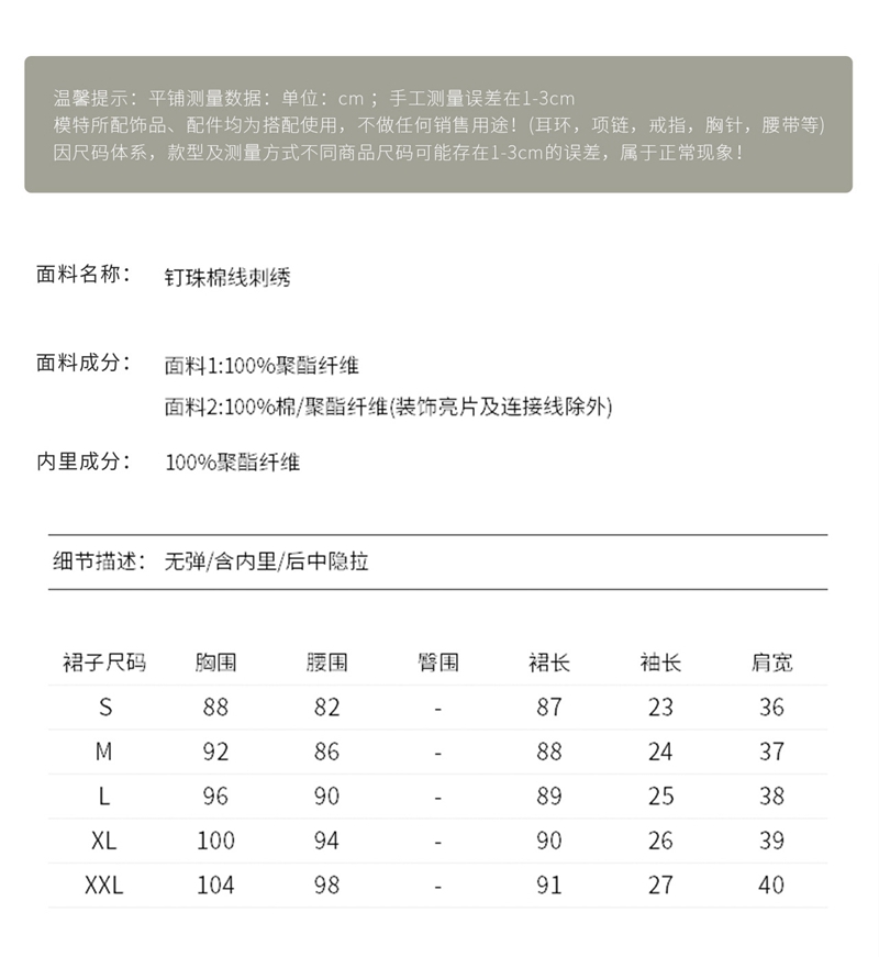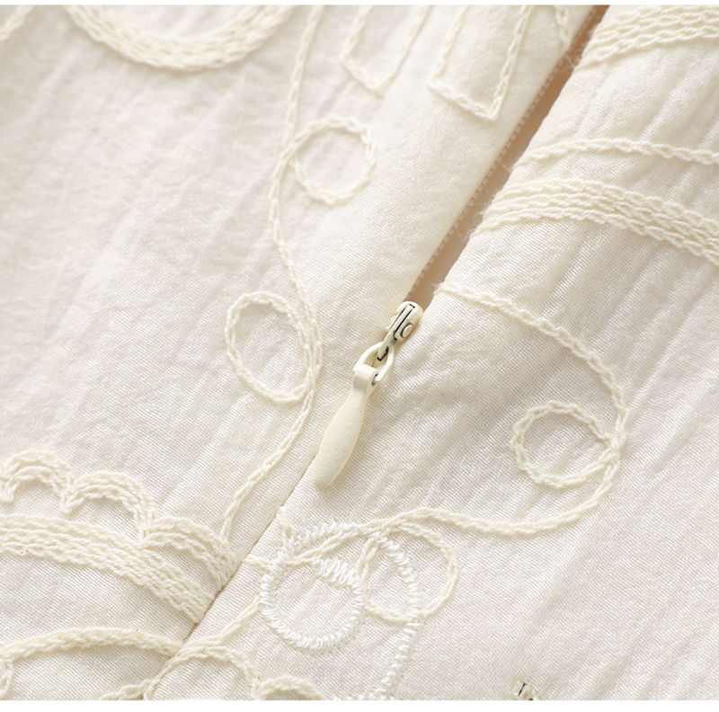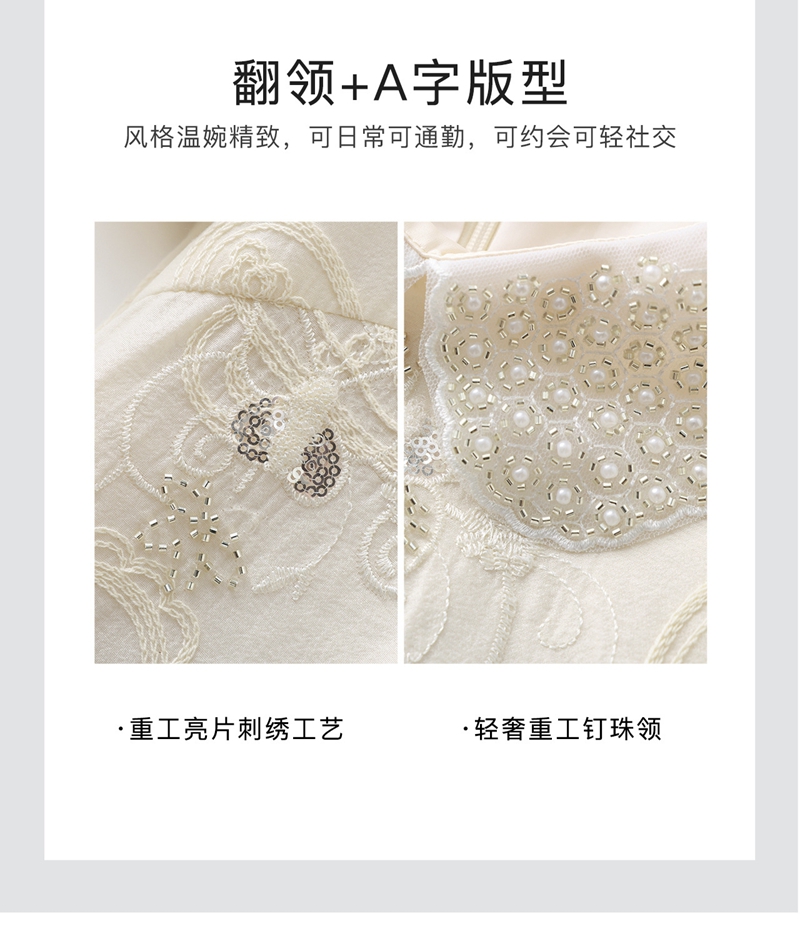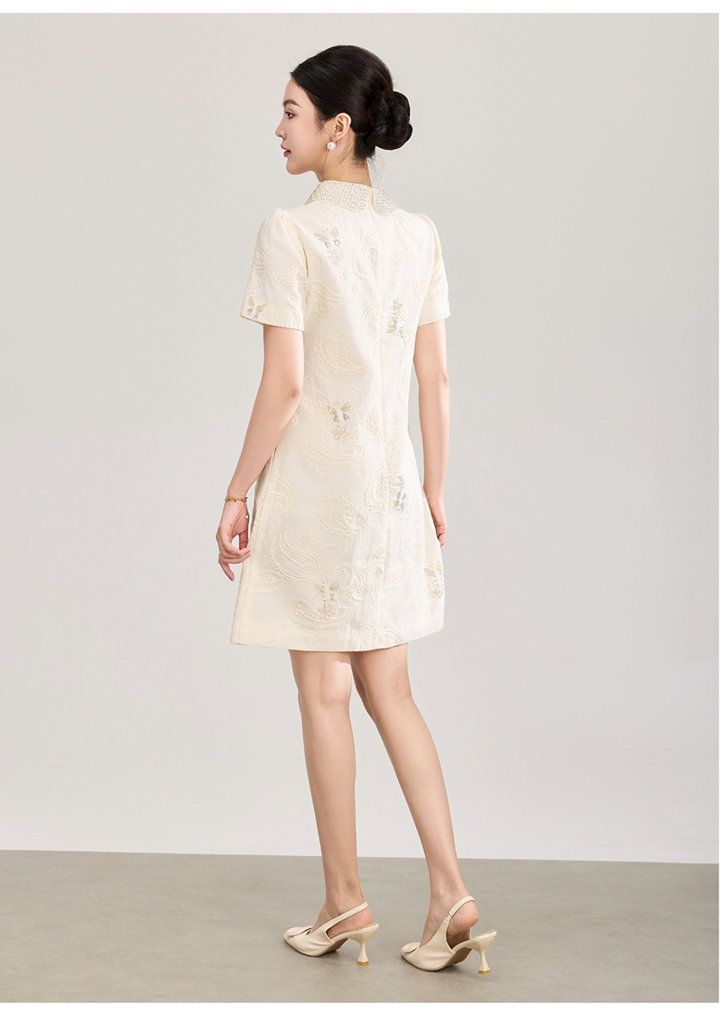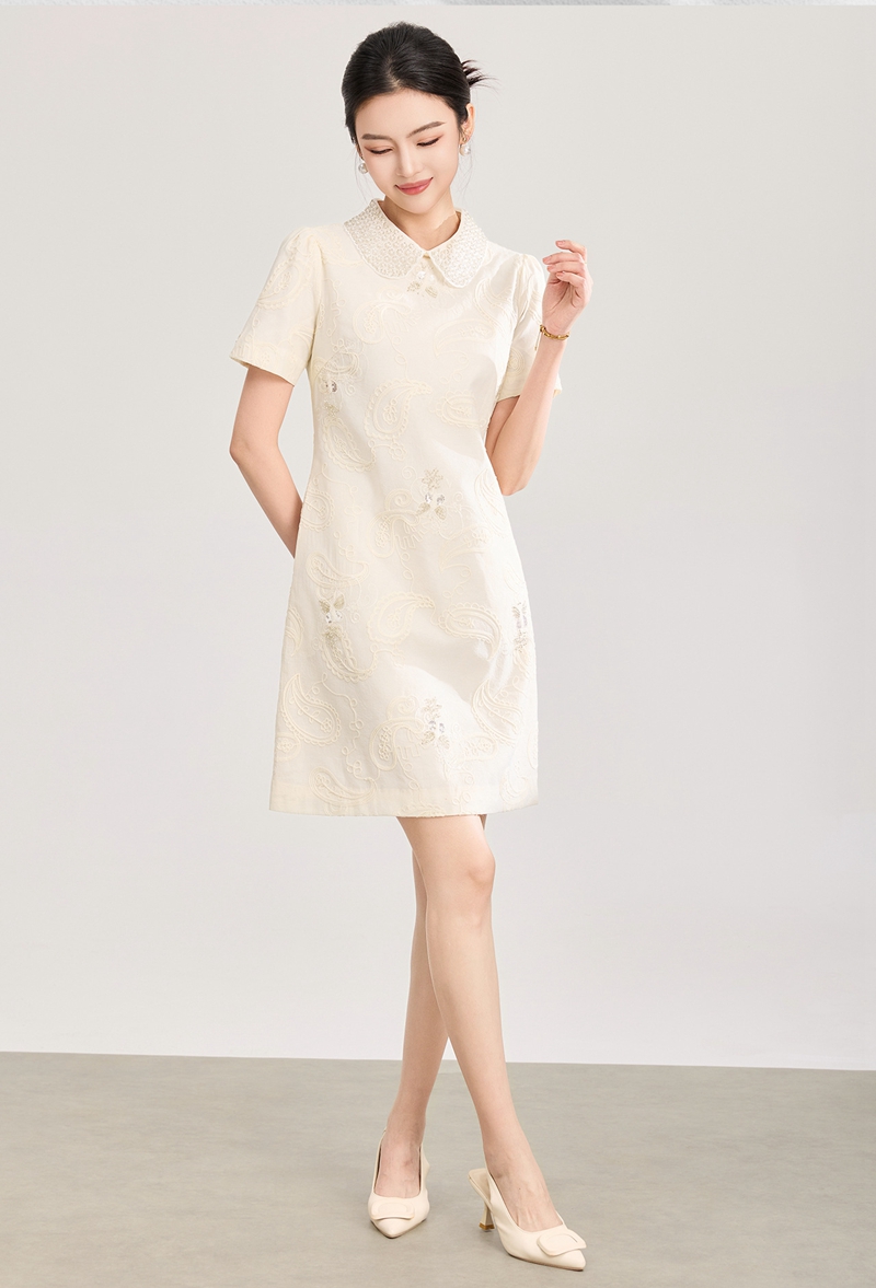 重工钉珠棉线刺绣娃娃领短袖收腰连衣裙