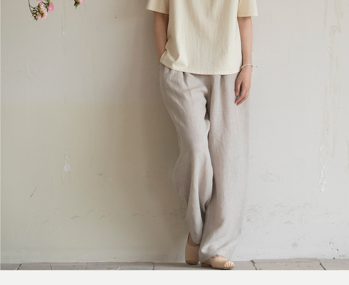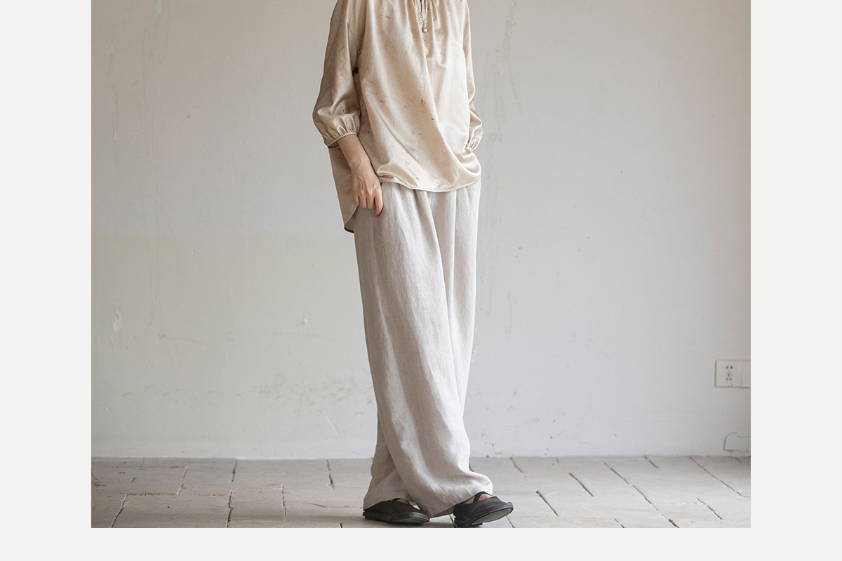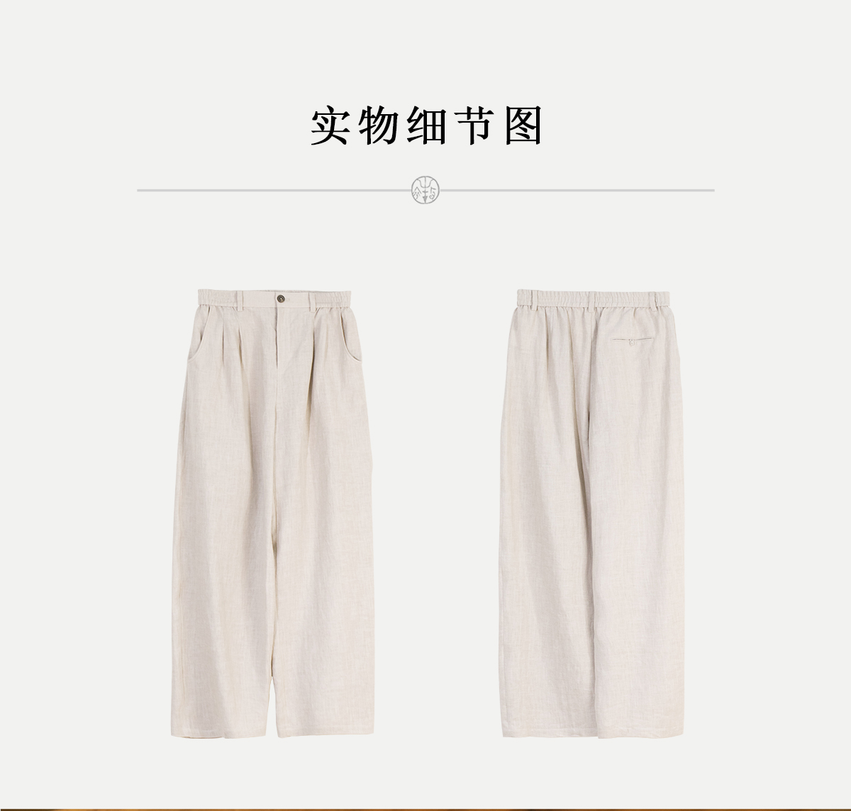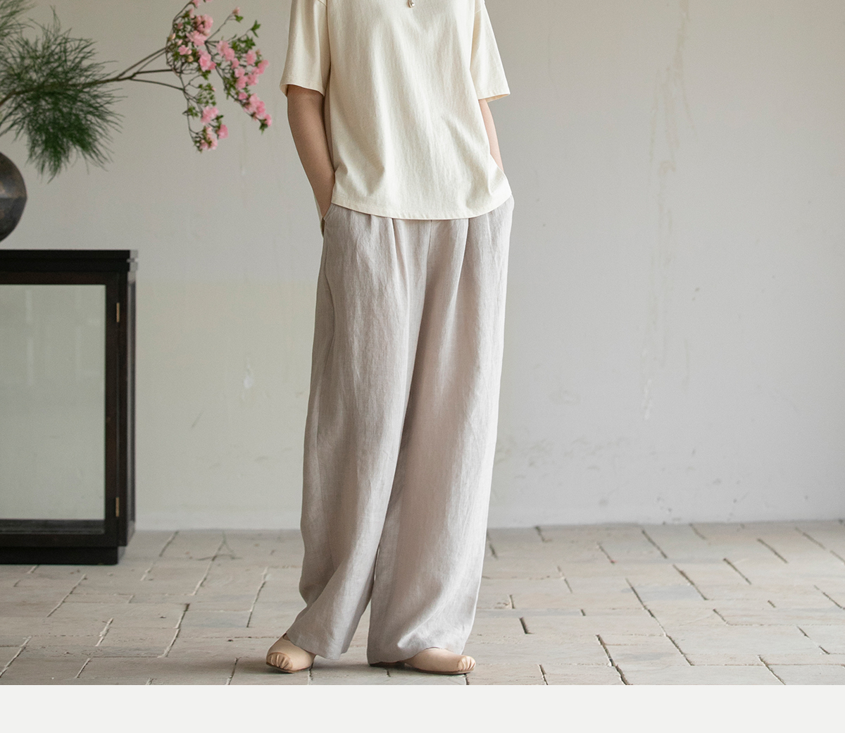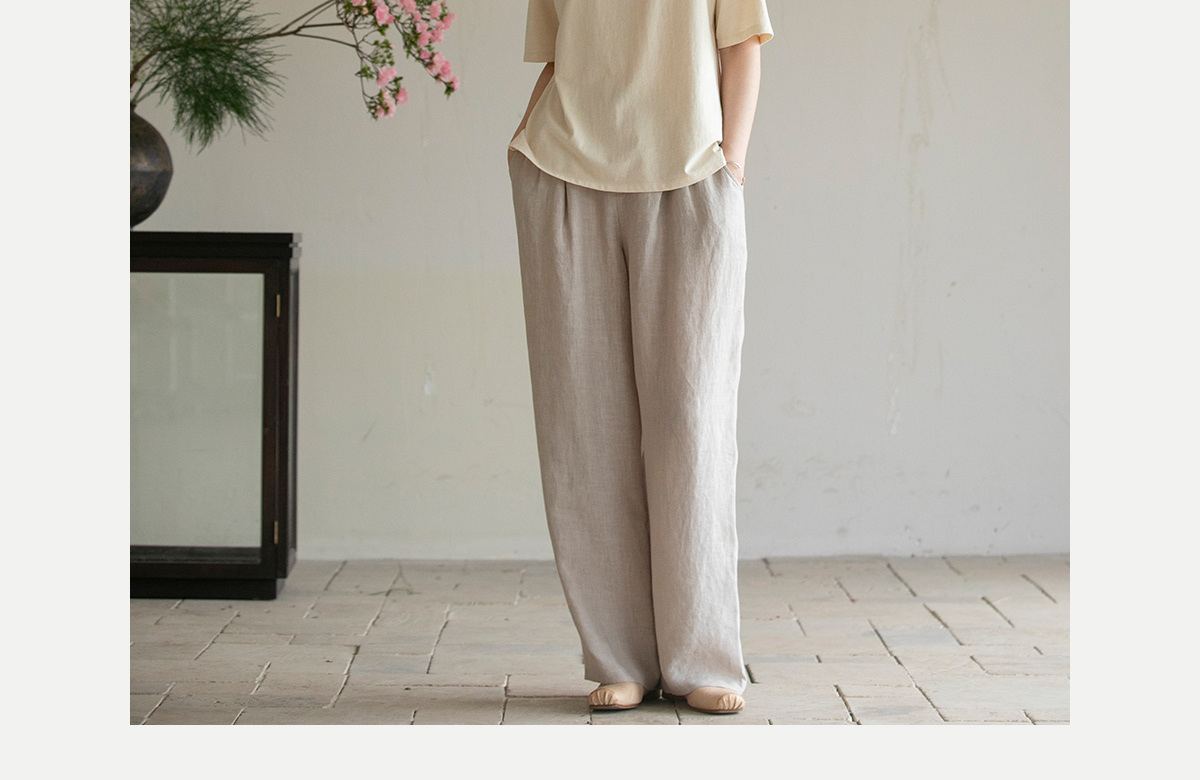 牧衣游原创 汉麻净色裤子轻薄显瘦清凉原生质朴宽松休闲裤 苏沫
