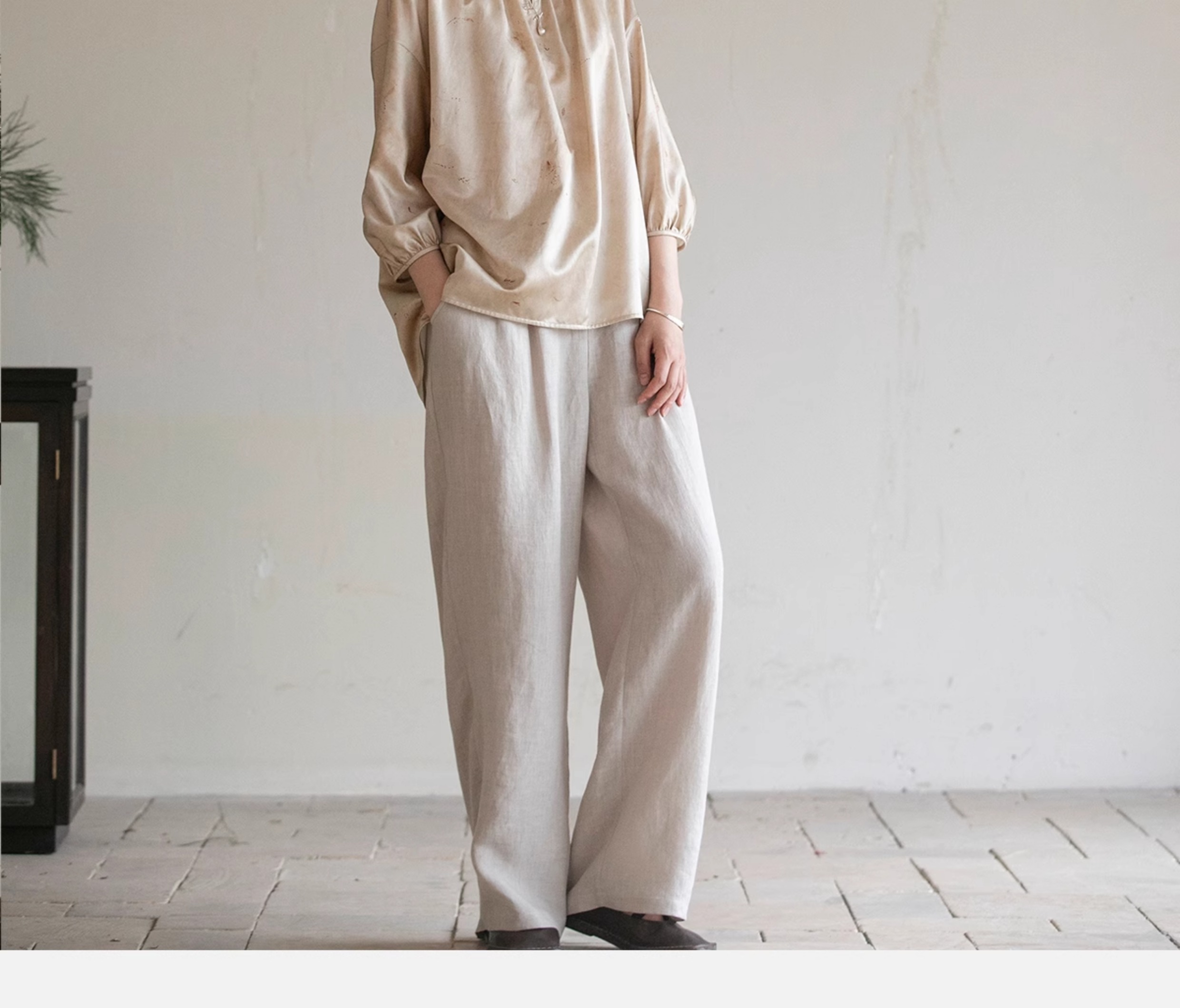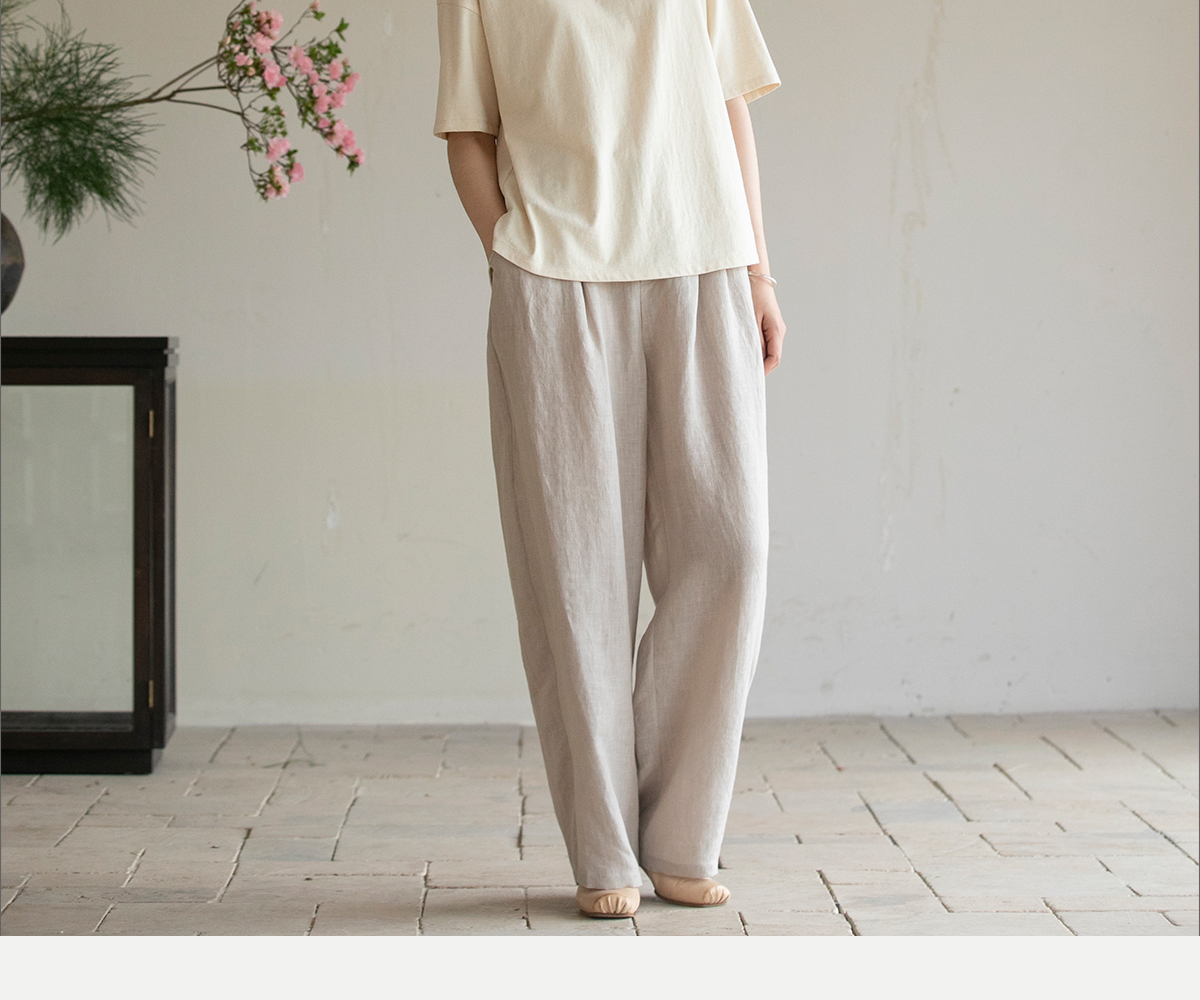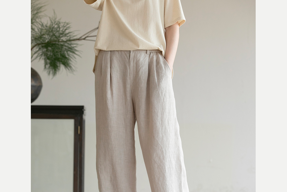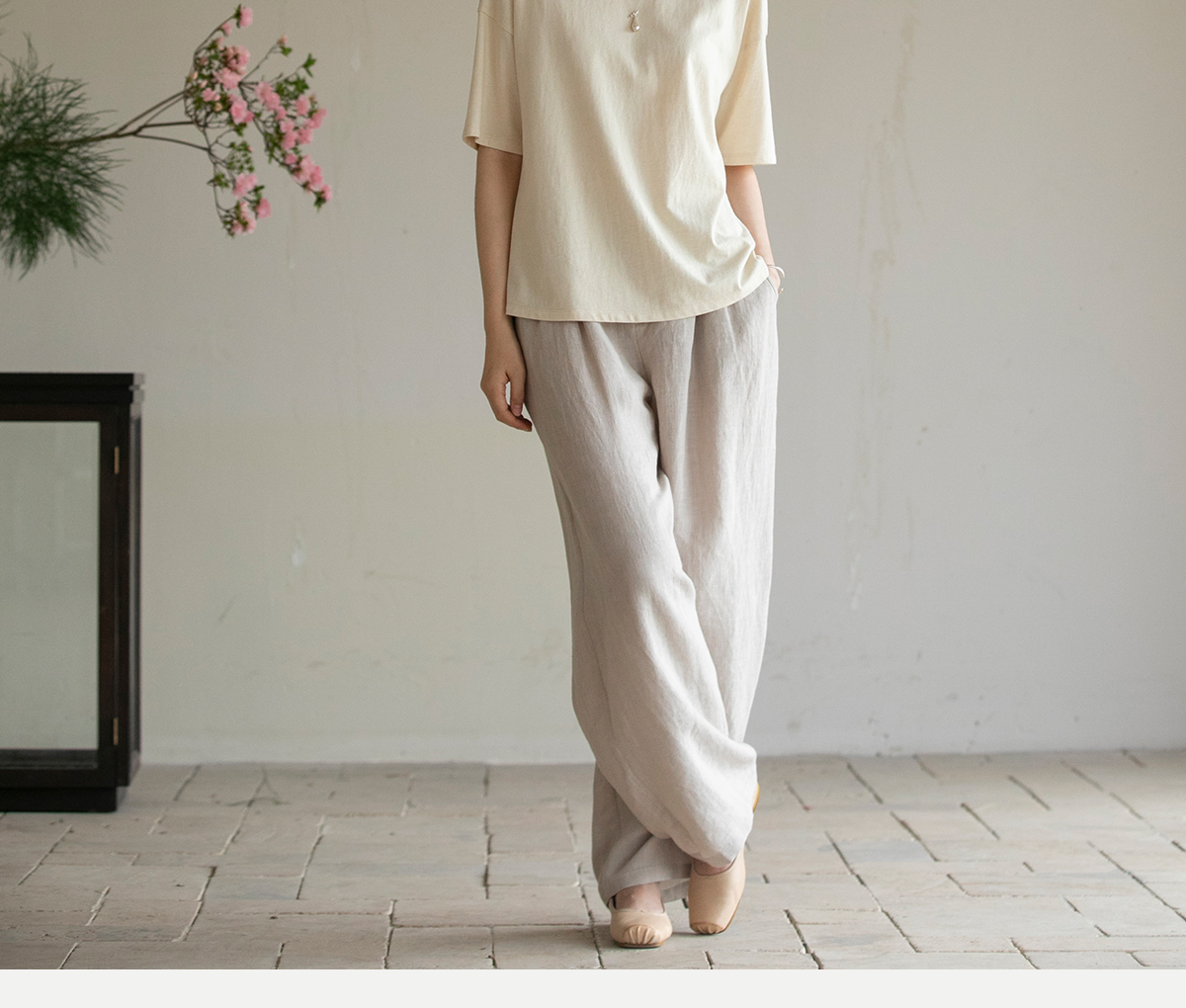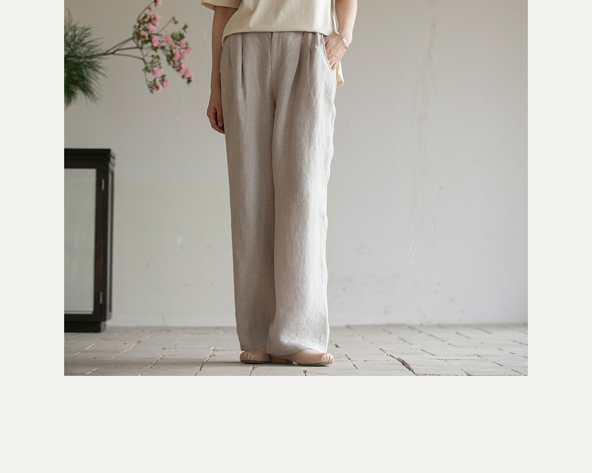 牧衣游原创 汉麻净色裤子轻薄显瘦清凉原生质朴宽松休闲裤 苏沫