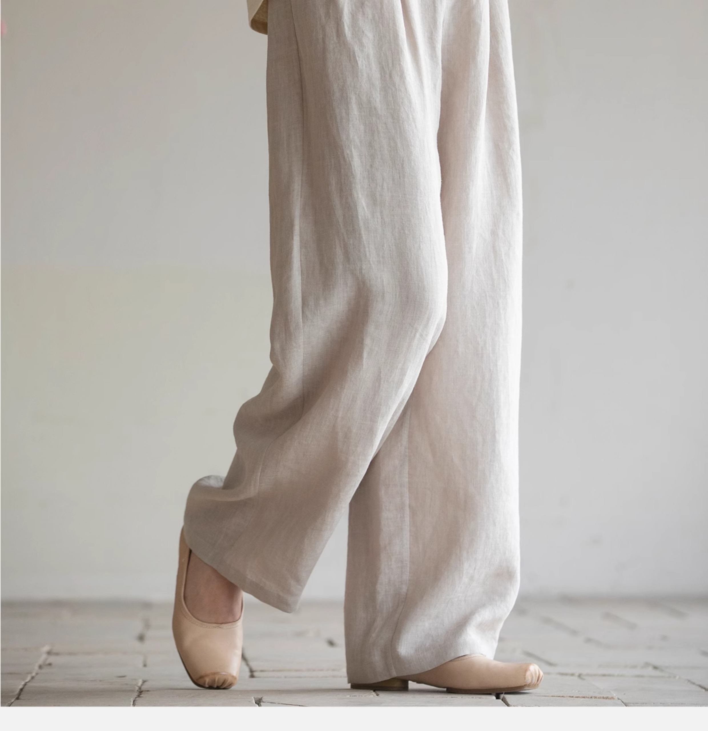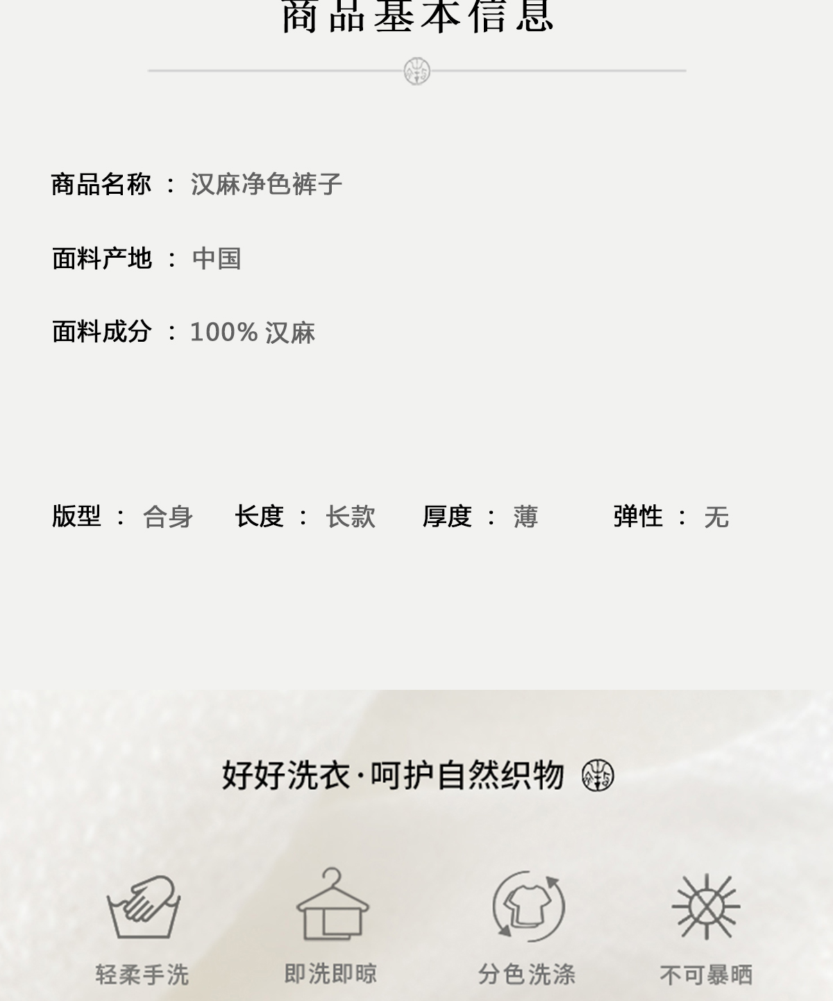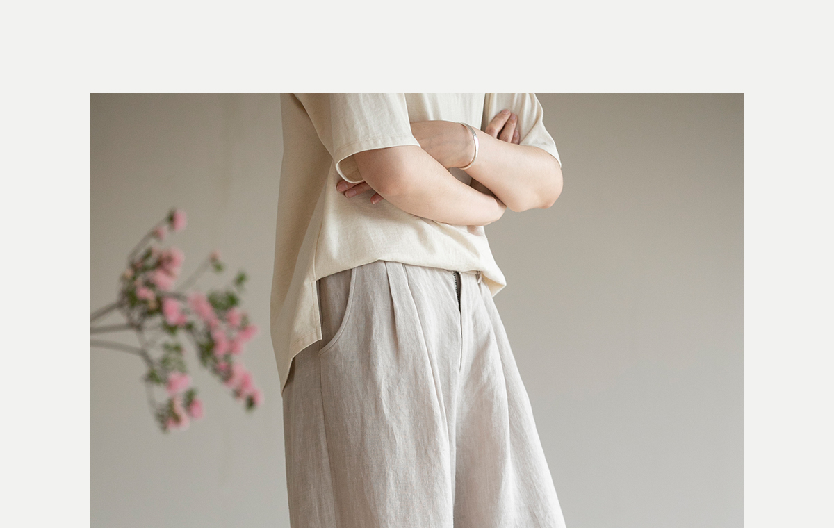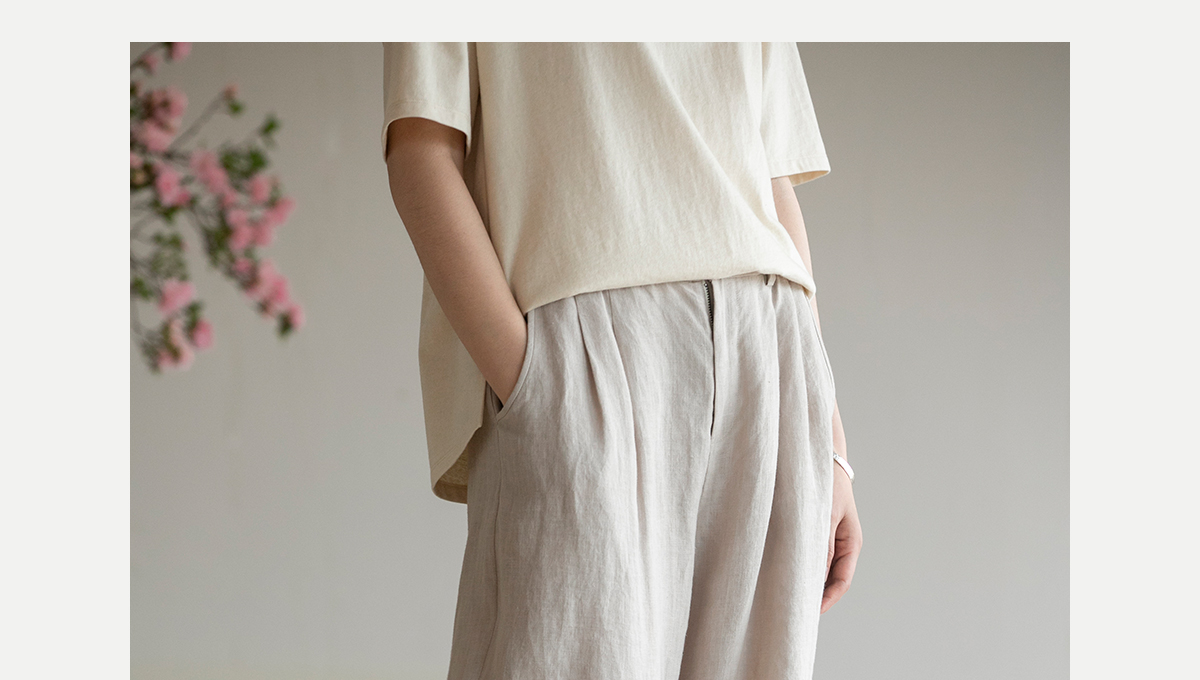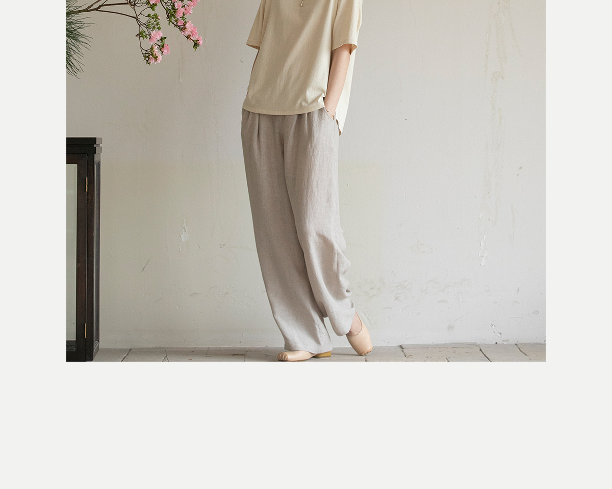 牧衣游原创 汉麻净色裤子轻薄显瘦清凉原生质朴宽松休闲裤 苏沫