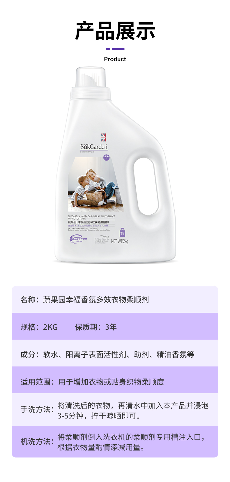 SukGarden蔬果园幸福香氛多效衣物柔顺剂 2KG