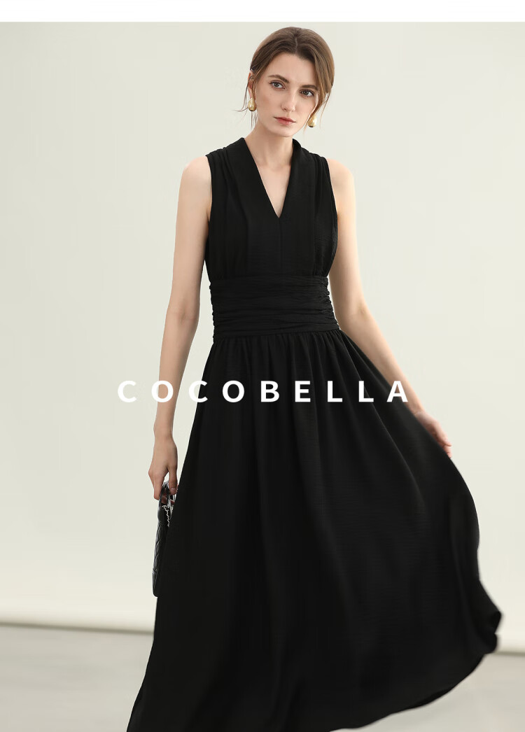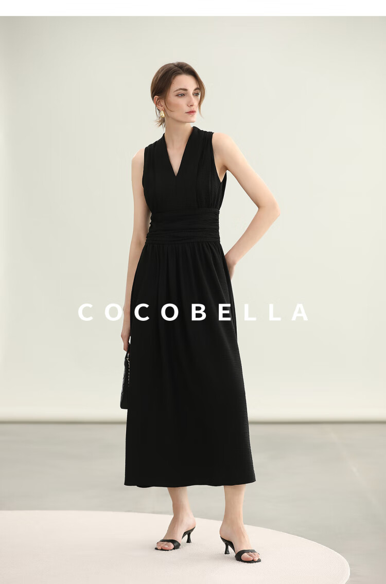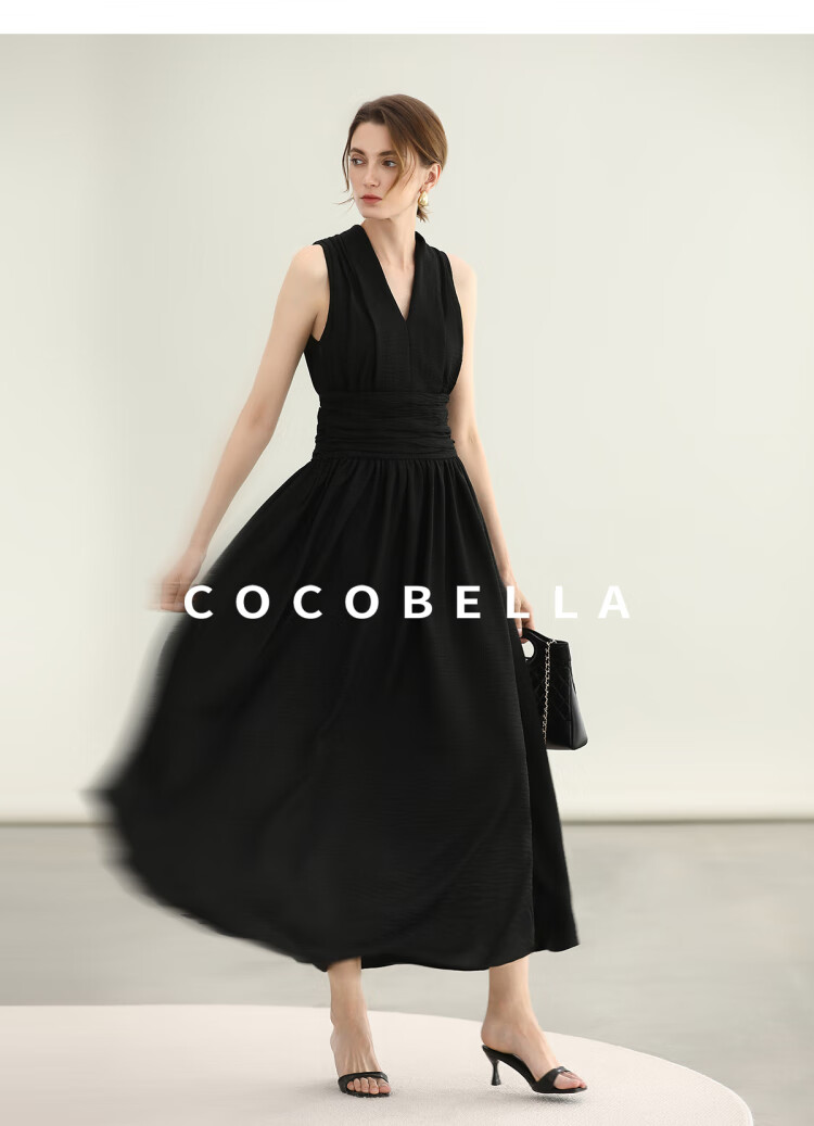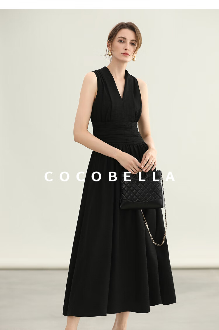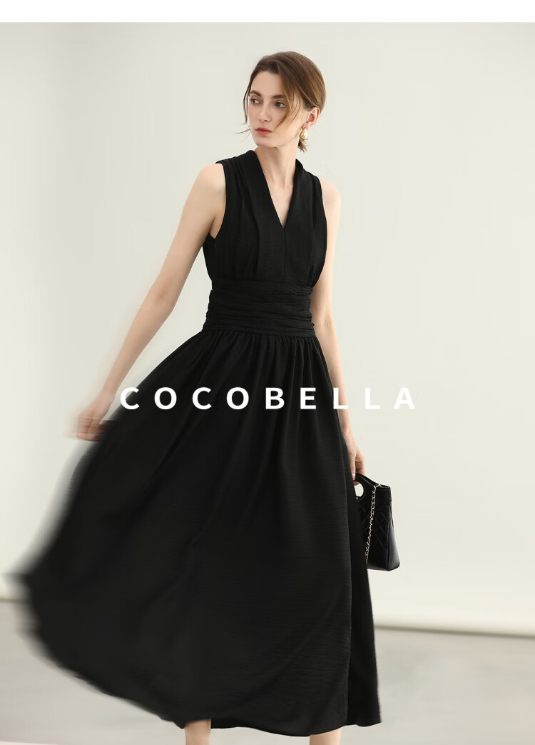 COCOBELLA赫本风法式女人味连衣裙夏仿棉麻大摆长裙FR0076-2
