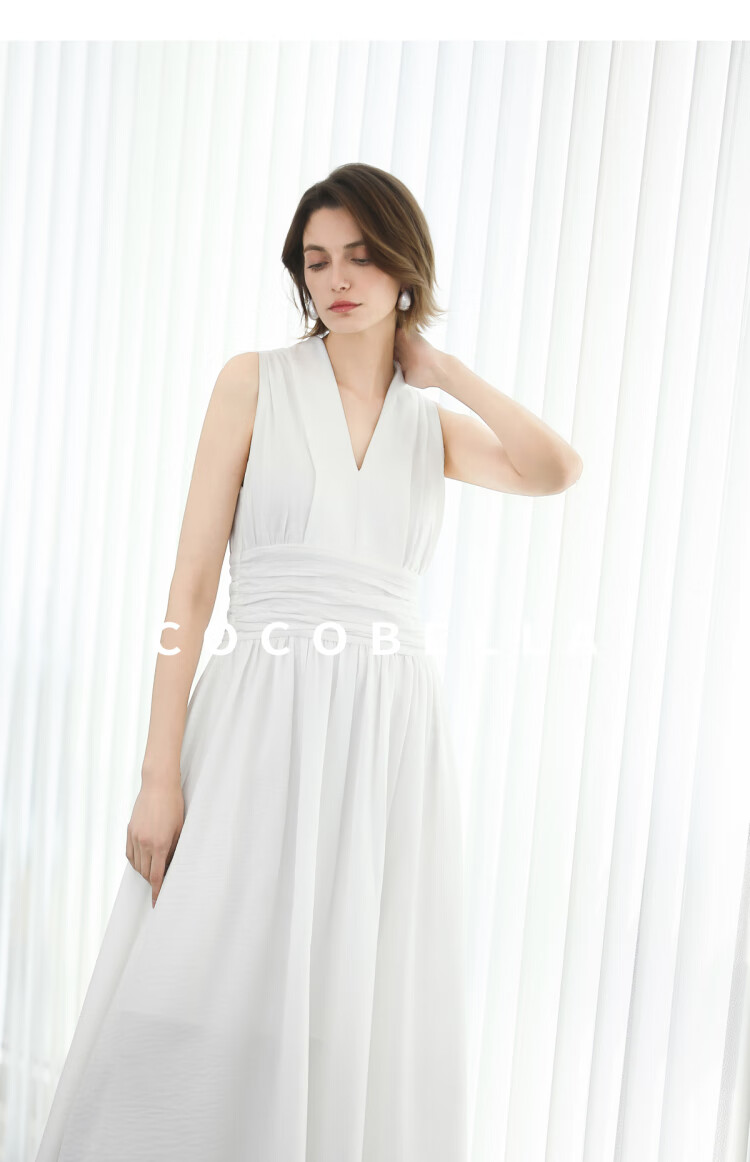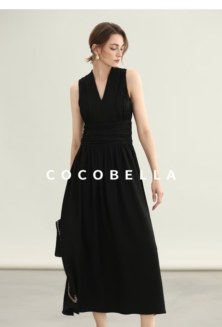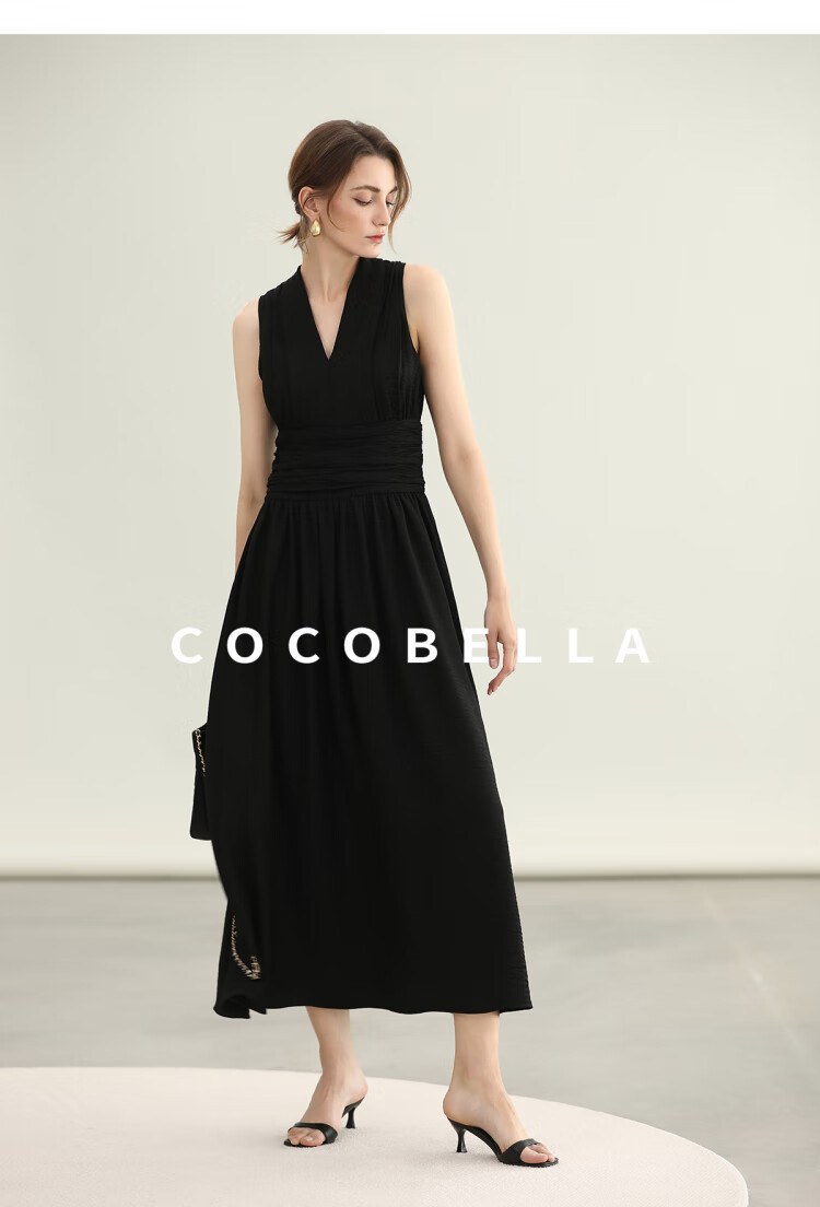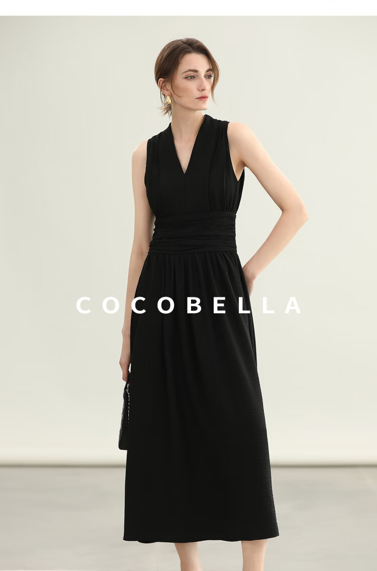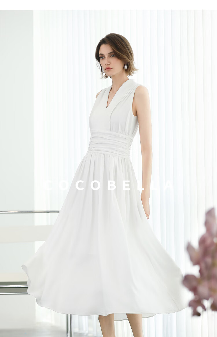 COCOBELLA赫本风法式女人味连衣裙夏仿棉麻大摆长裙FR0076-2