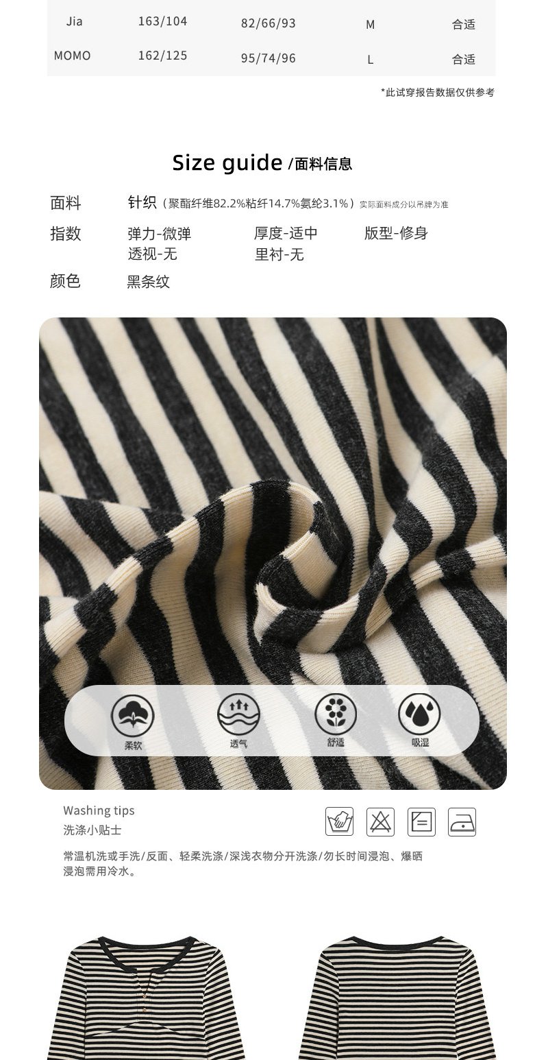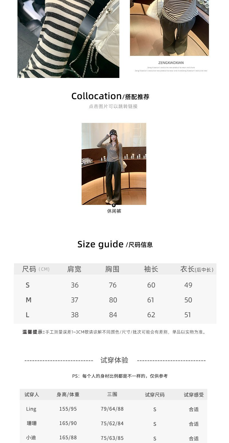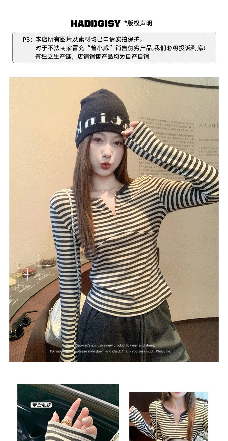 <曾小咸推荐>韩系设计感条纹长袖t恤上衣