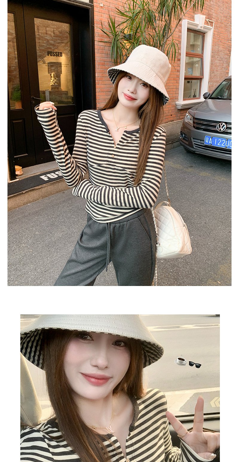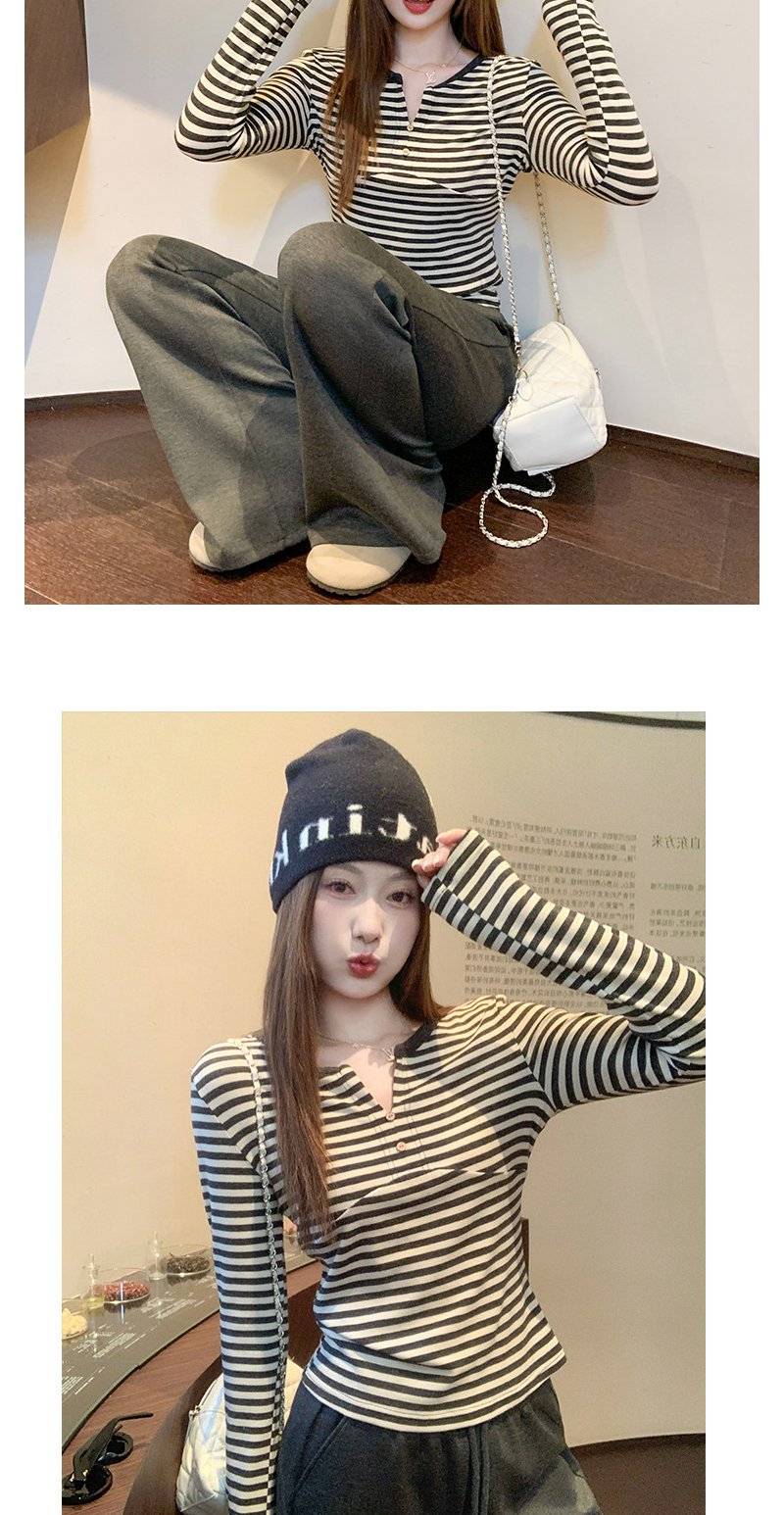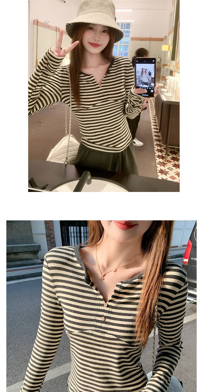 <曾小咸推荐>韩系设计感条纹长袖t恤上衣