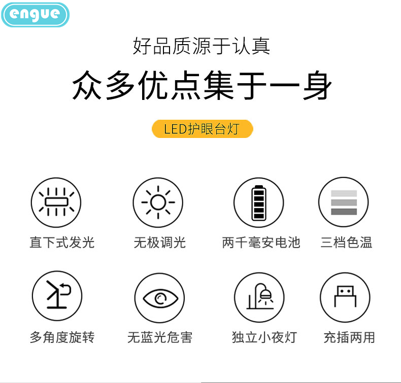 【自营】engue恩谷多功能皮纹万年历台灯学习态度 EG-598B 商品图10