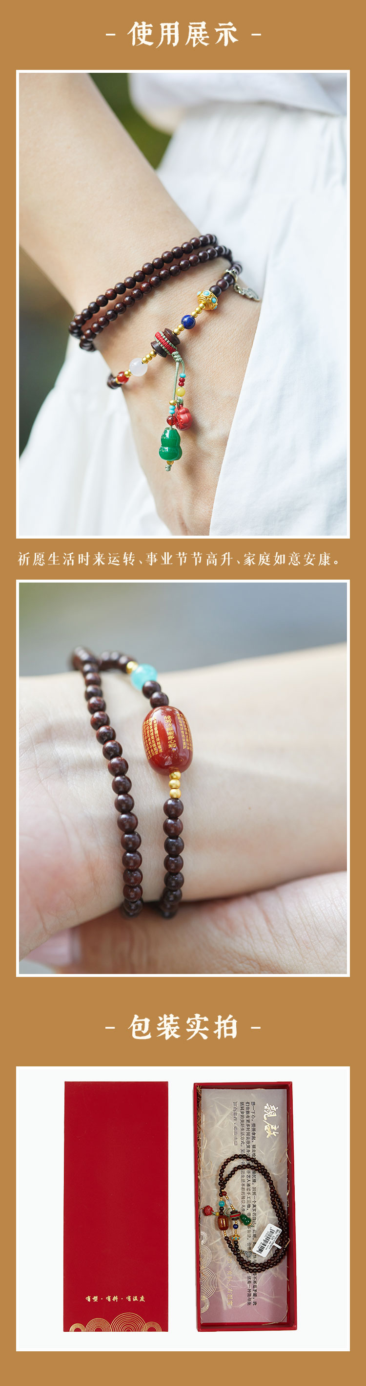牛首山文创印度小叶紫檀双圈手串送闺蜜朋友手饰国潮原创节日礼物