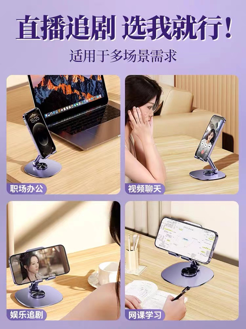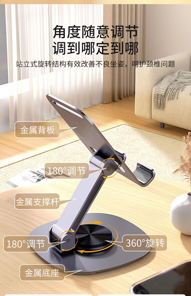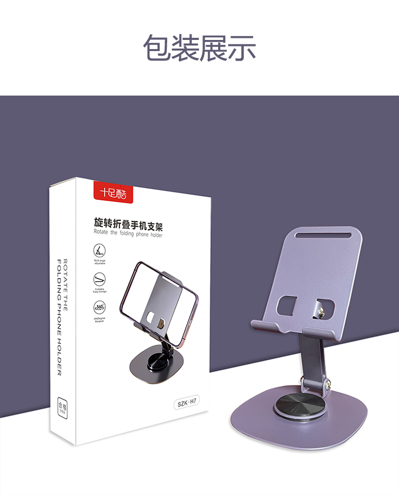 十足酷360度旋转全金属折叠桌面支架H7