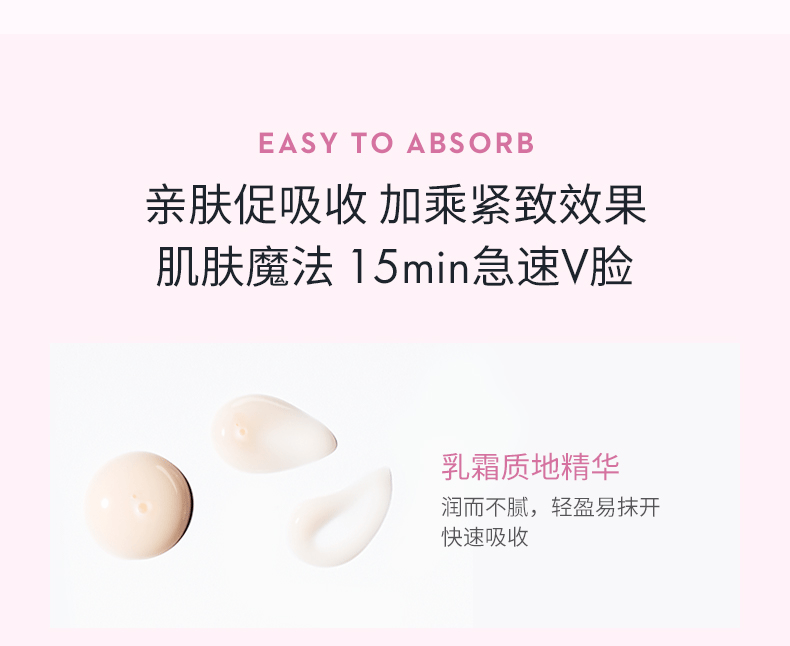 如果早晨起来,面部容易浮肿的朋友,可以入手这款V脸精华,可以有助于缓解浮肿,加上按摩的手法,主打15分钟收紧下颌线。