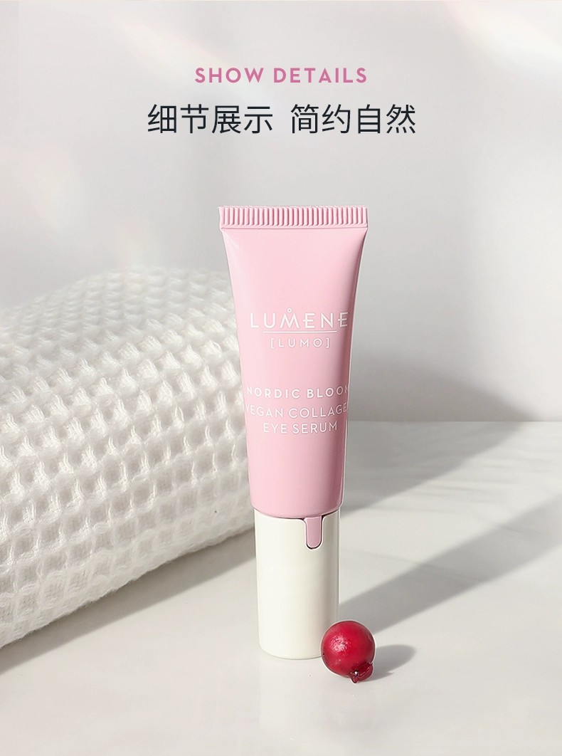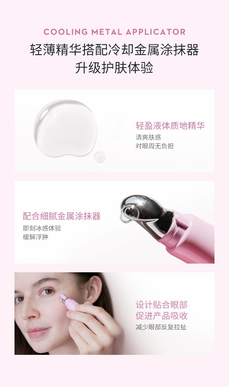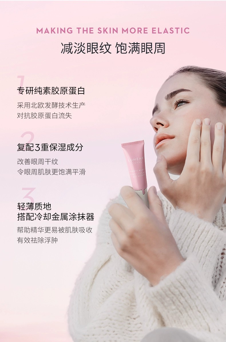 同时还配有LUMENE专属技术的冷感按摩头,冰冰凉凉的,涂抹在眼部的时候特别舒服,早晨涂抹可以帮助眼部祛肿,晚上入睡前涂抹可以帮助缓解一天的眼周疲劳,很贴心的设计。