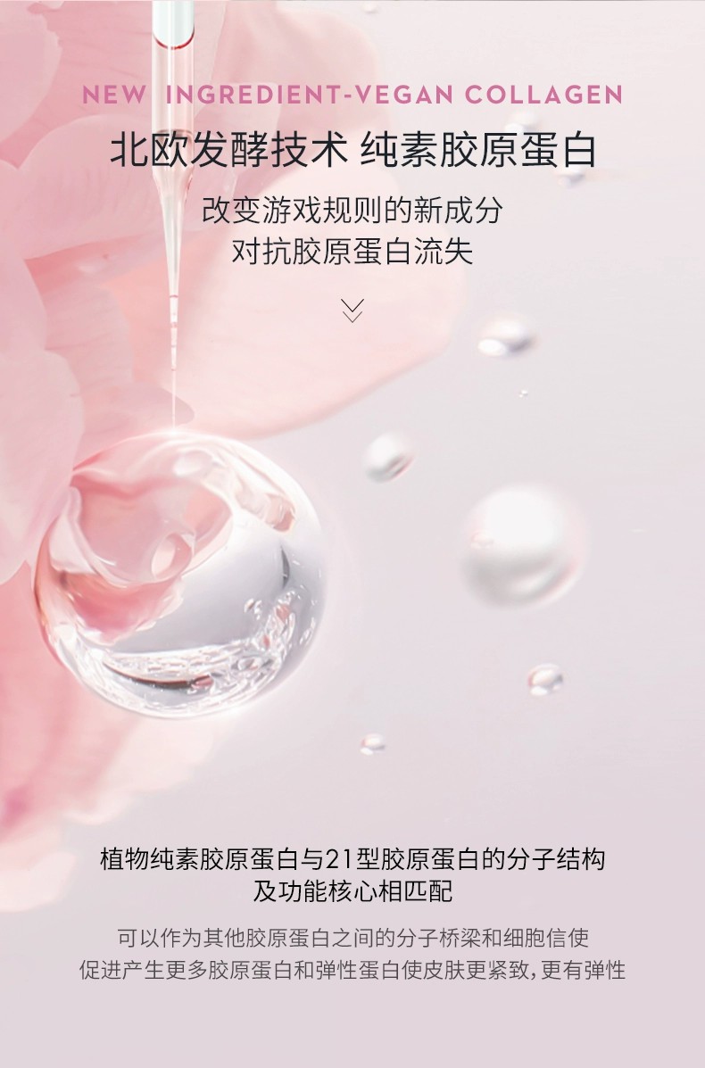 这款眼部精华,可以和上一款面部精华配搭使用,同样是纯素的胶原蛋白配方,但是质地不同,因为我们眼部的肌肤更加娇嫩,所以设计了无香料超轻薄的液体精华。