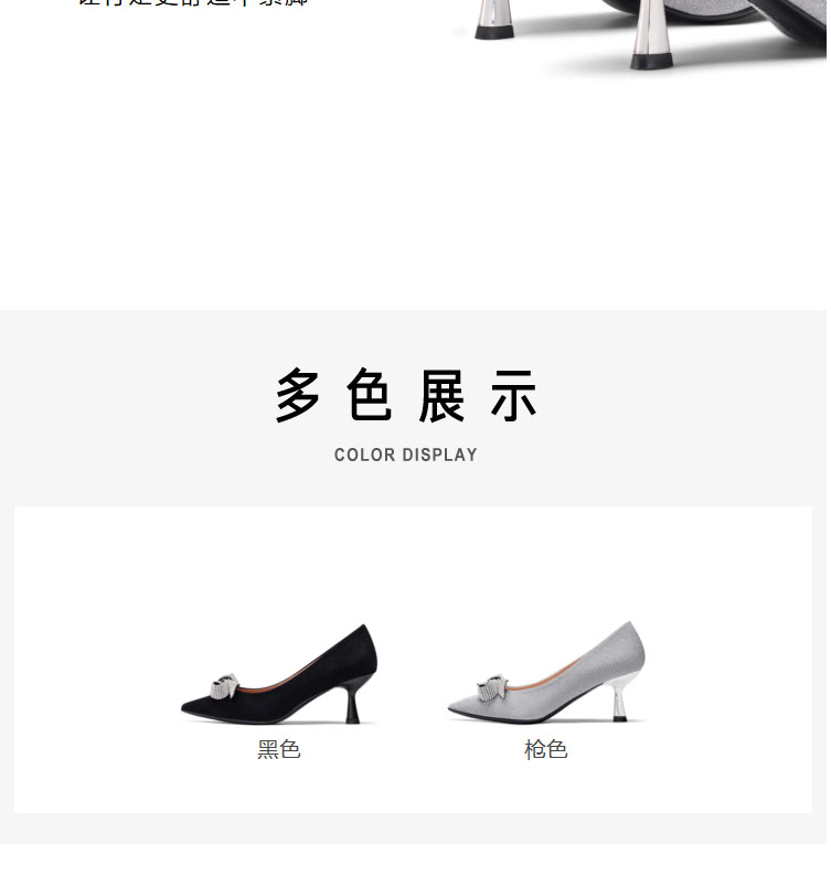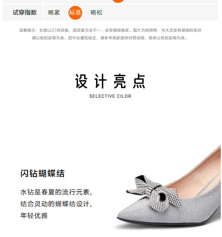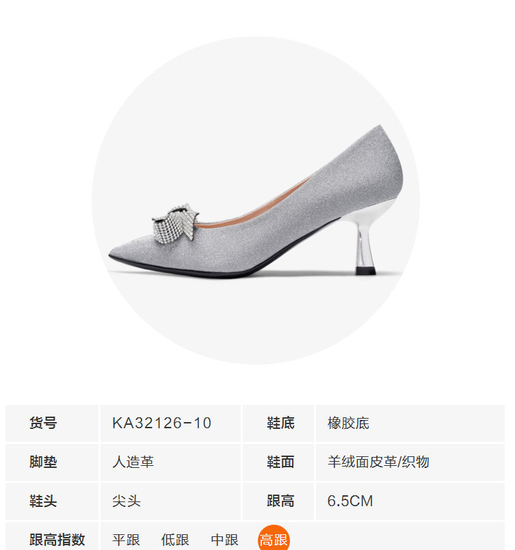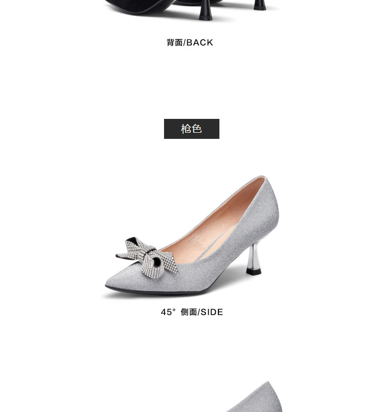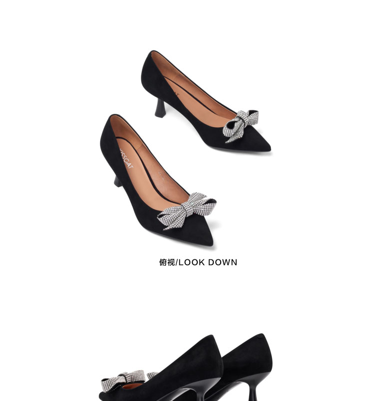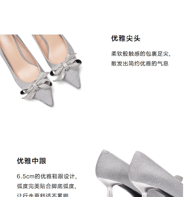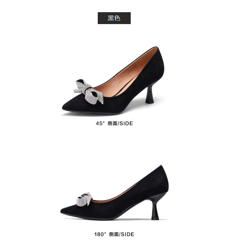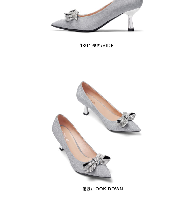 接吻猫2022春季新款闪钻蝴蝶结舒适婚鞋优雅尖头高跟鞋浅口单鞋女32126-10