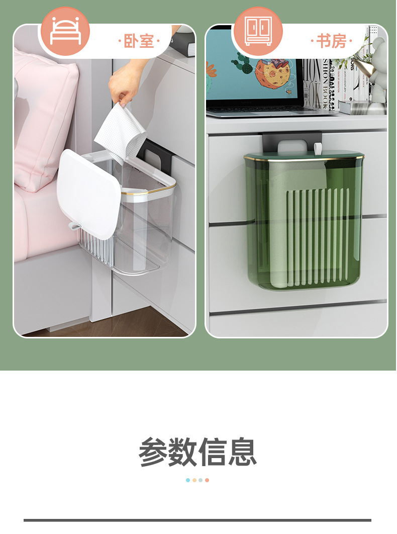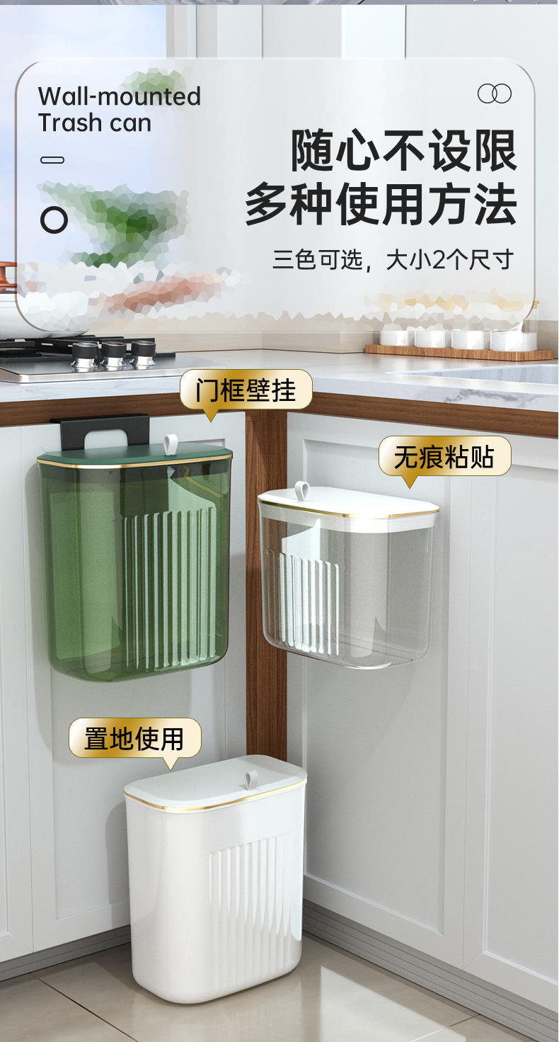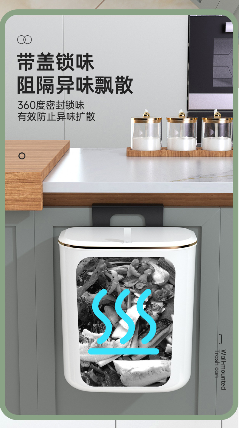 「大小两号!壁挂式」居家日用颜值厨房橱柜壁挂厨余垃圾桶带盖浴室悬挂垃圾筒垃圾筐纸篓用品
